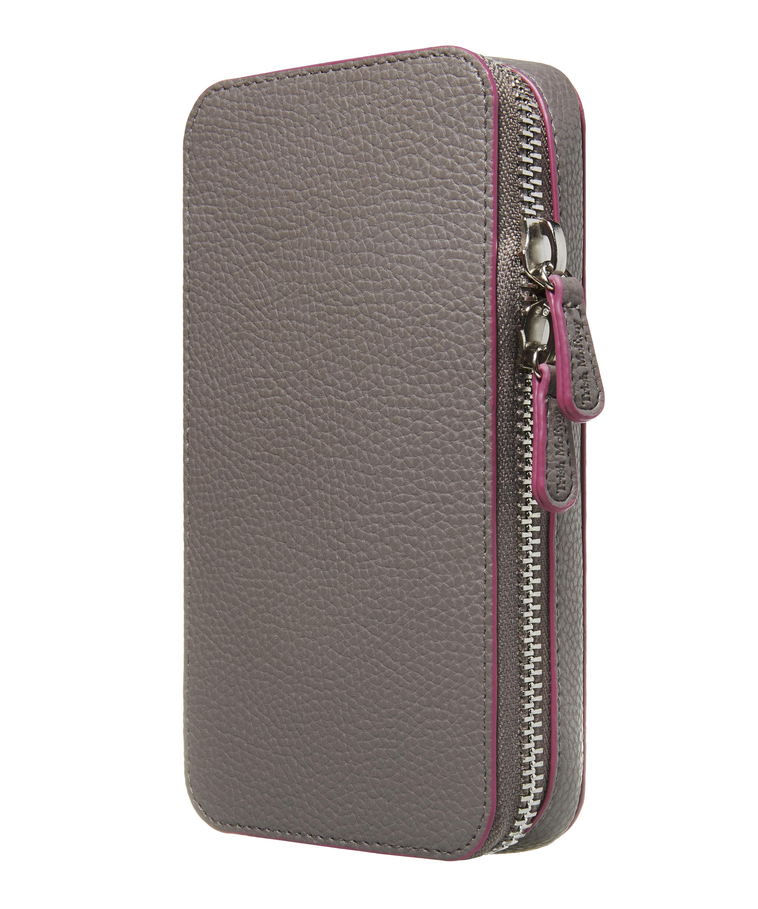 - Housed in a grey vegan pebbled leather case with silver-tone hardware and double-zip-around closure; three elasticated interior pockets