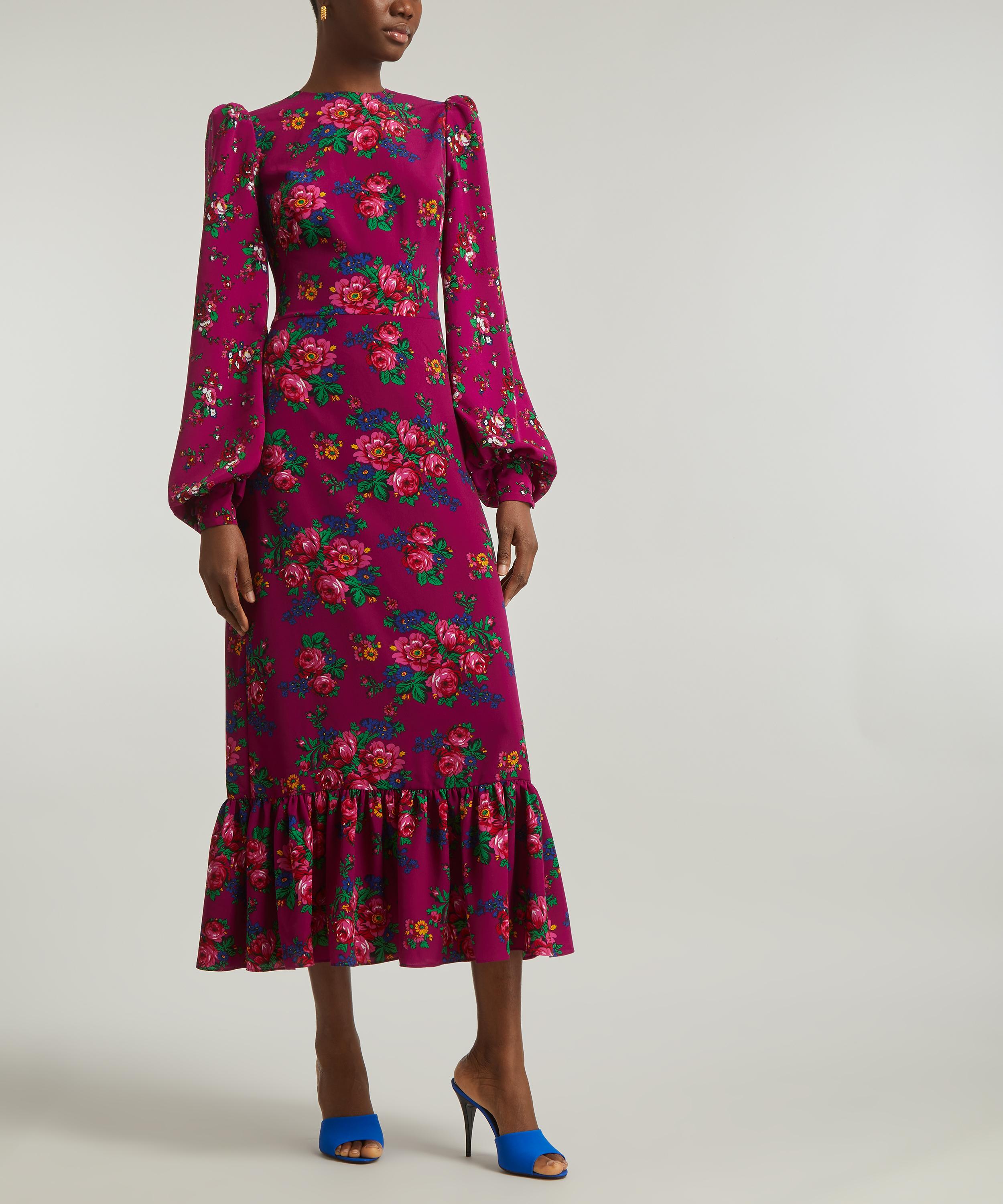 The Vampire’s Wife brings us The Villanelle dress - updating its iconic frill-hemmed silhouette with exaggerated bell-sleeves and pretty back bow. Named after Villanelle, the antagonist in the television drama Killing Eve, this dress is as full-blown, theatrical and glamorous as its namesake. With two contrasting, vibrant floral prints across its body and huge bell-sleeves, it is a true joy to wear.