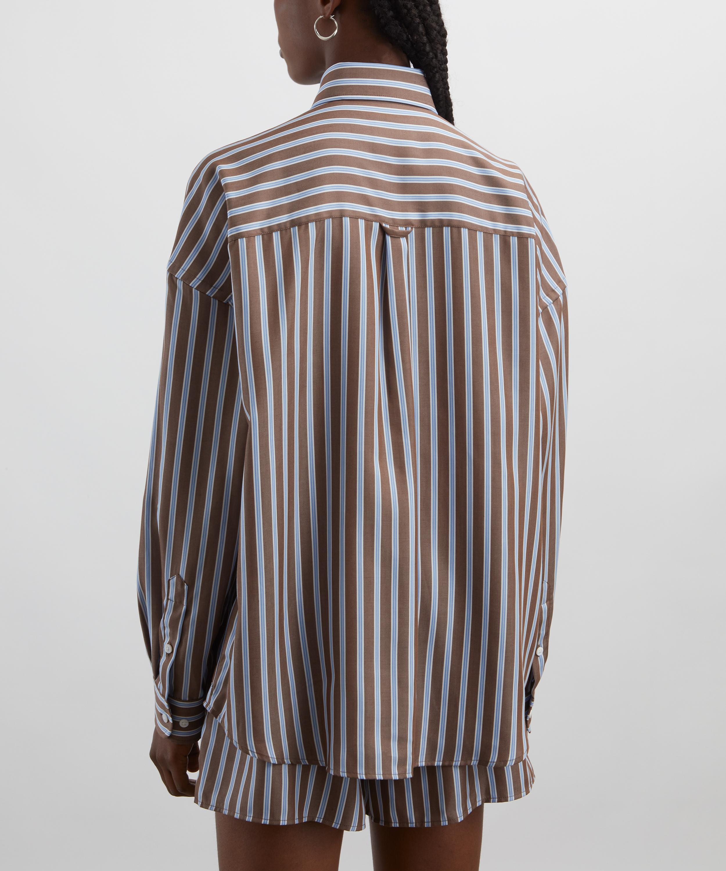 Boasting the perfect addition to your capsule wardrobe, London-based brand With Nothing Underneath presents The Weekend Mocha Multi-Stripe Shirt.