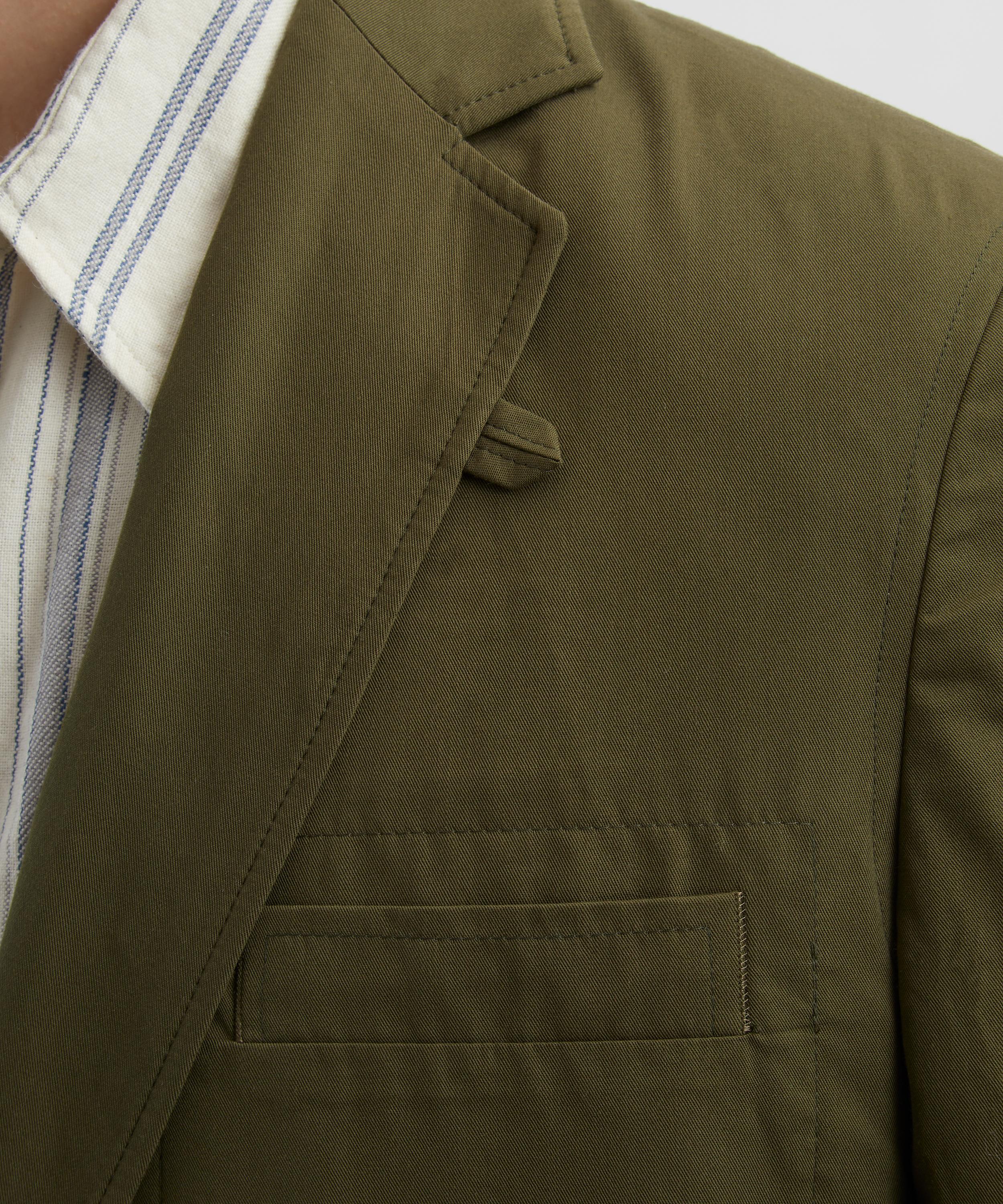 Expertly cut from a lightweight cotton twill and shaped with peak lapels, it’s fitted with a pair of patch pockets – creating a more low-key feel – and can be easily paired with tailored or smart-casual trousers.