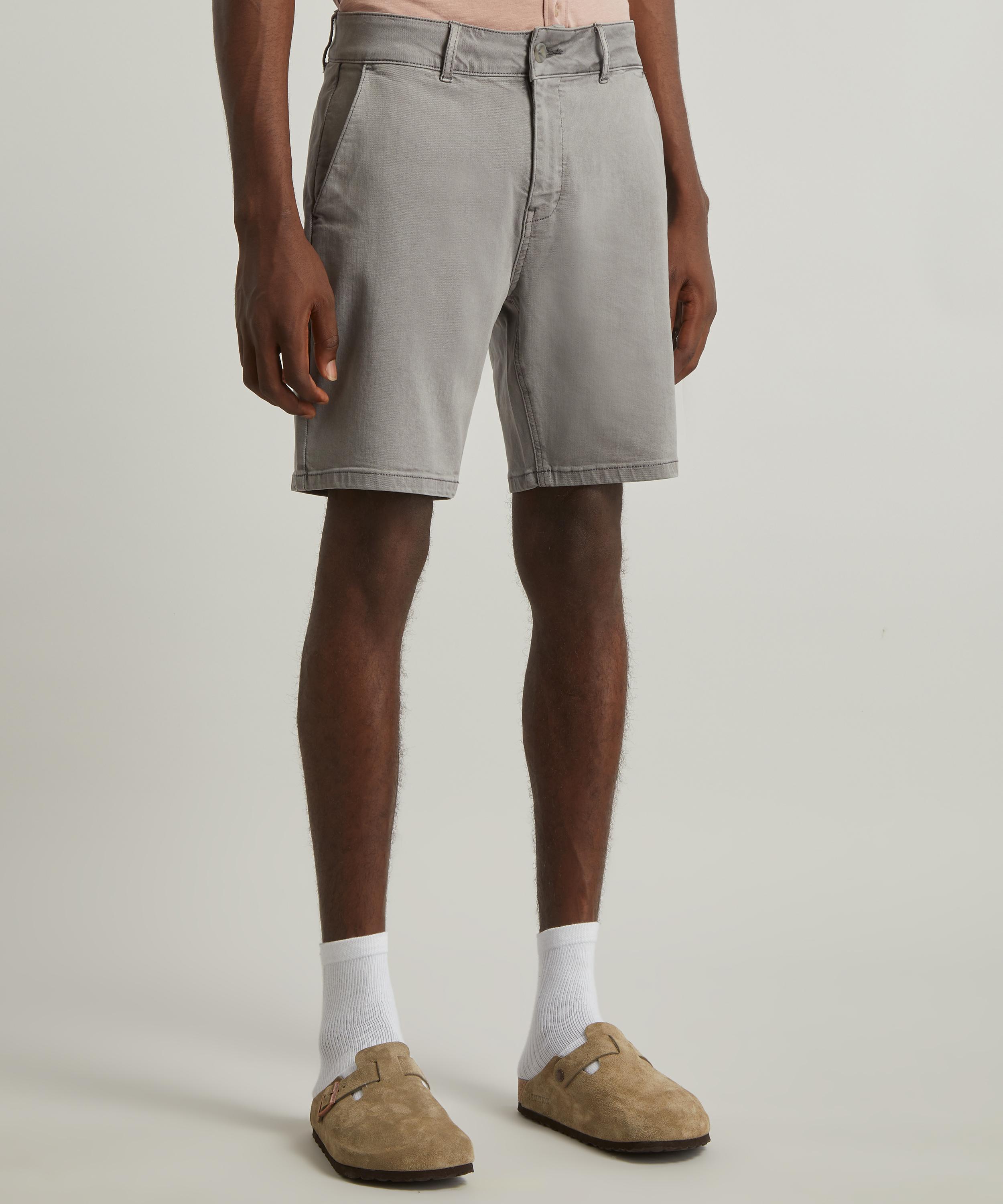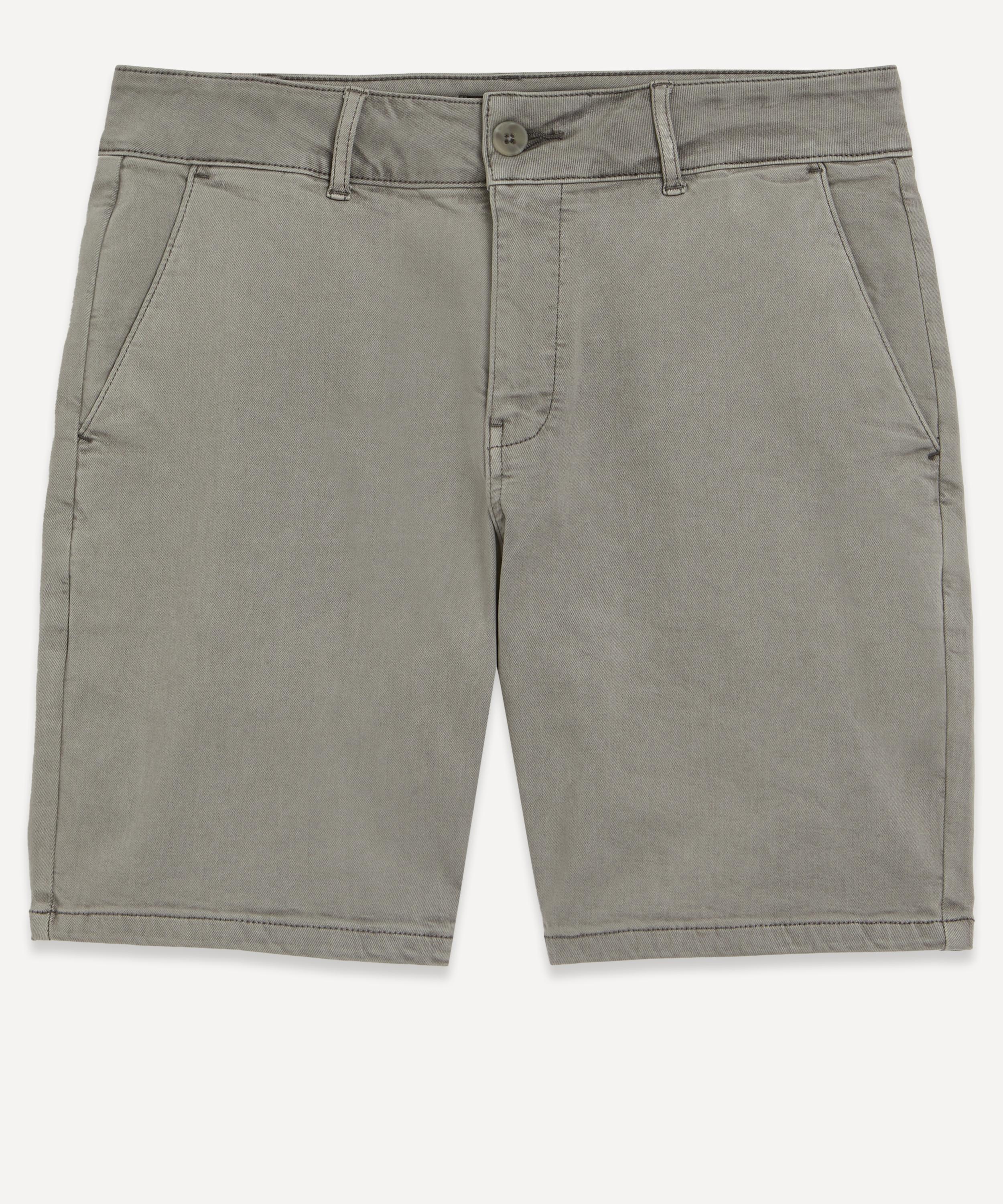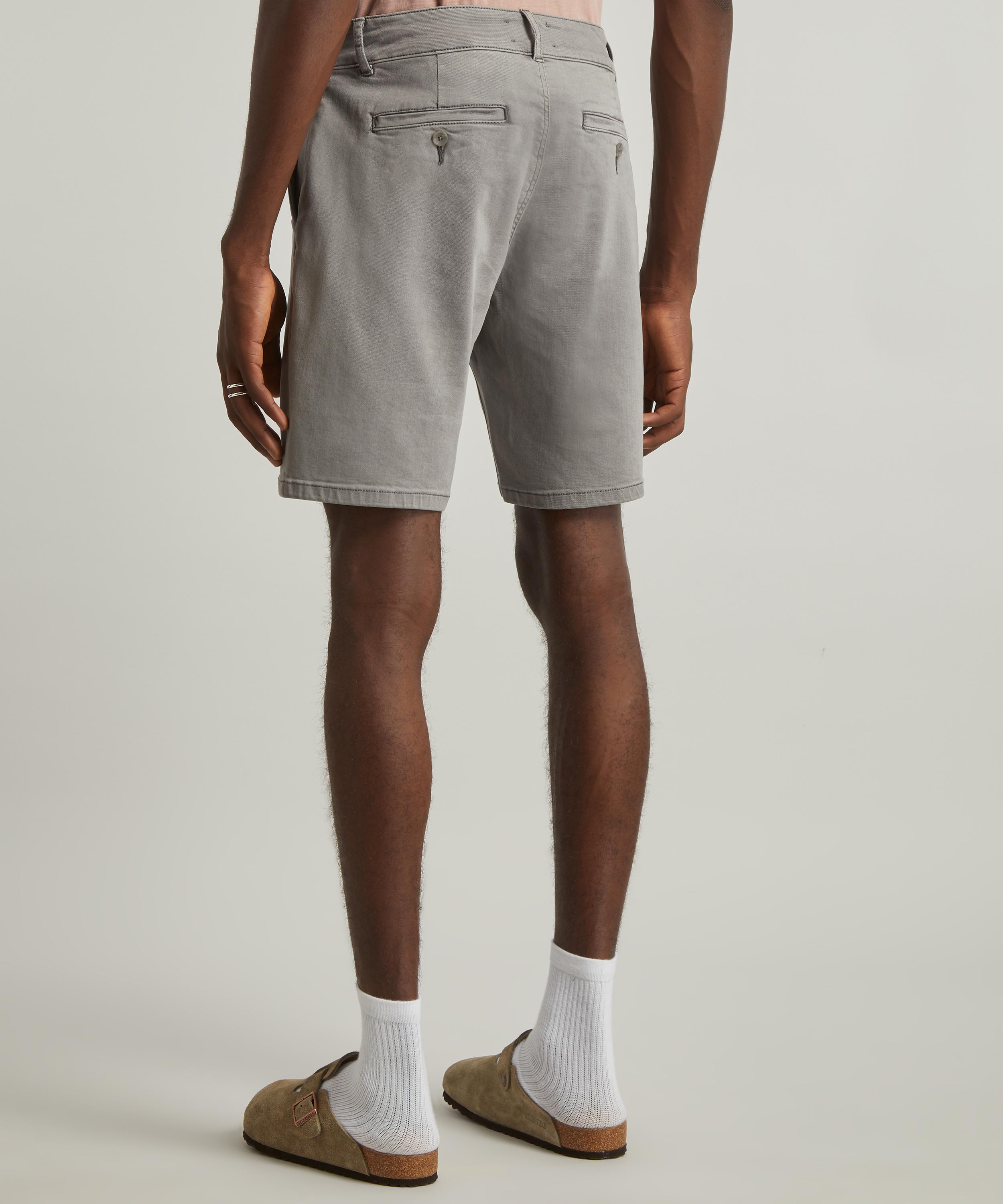 Crafted from super-soft brushed twill, these medium-grey short are designed for a wearable, ‘just-right’ knee length, and feature front pockets, back welt pockets and a button closure.