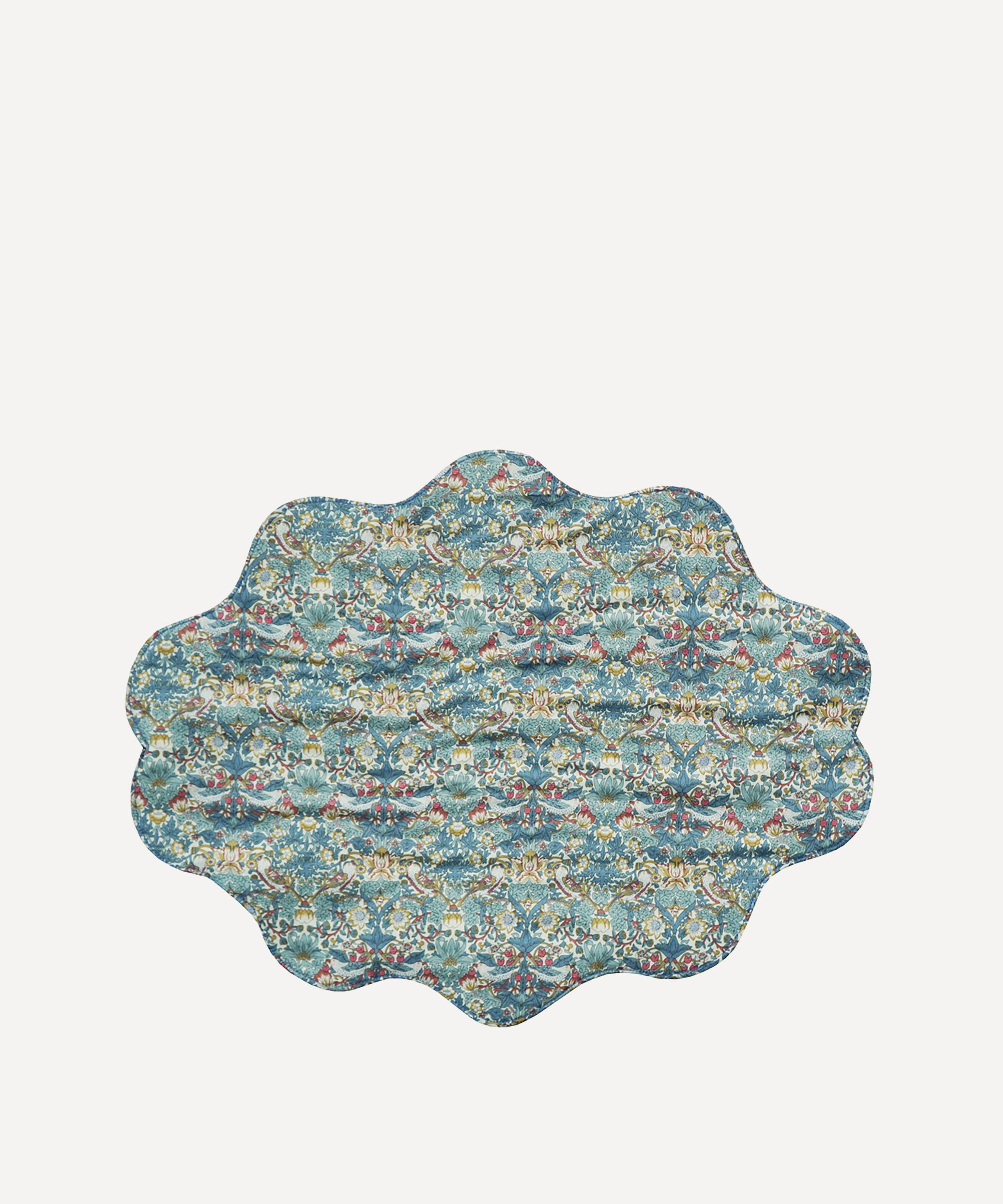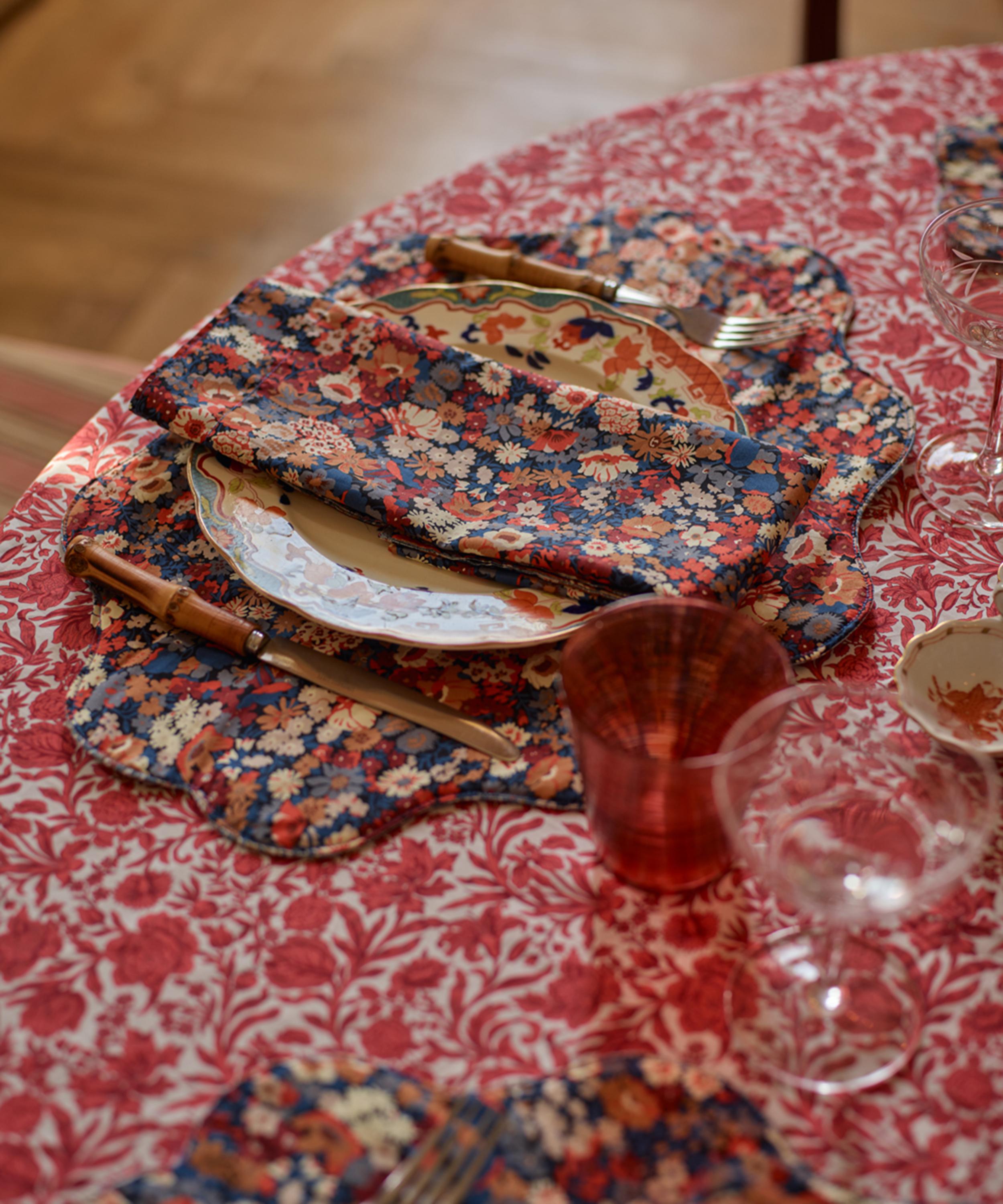Somerset-born bedding brand Coco & Wolf is renowned for its Liberty print table linen, crafted from our inimitable Tana Lawn™ cotton - a modern masterpiece of fabric production that Liberty has been perfecting for over 100 years. This double-sided placemat is trimmed with wavy edging, and dressed in Liberty Fabrics’ Thorpe Rust and Strawberry Thief prints. Buy multiples and pair with patterned table linen for enhanced print power.