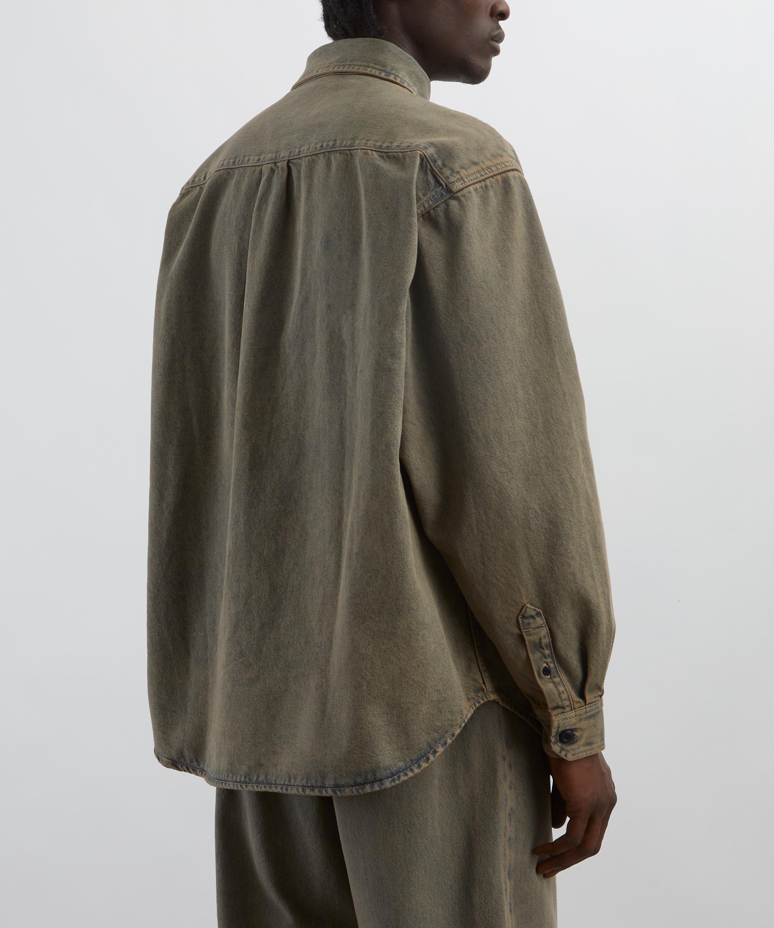 Crafted from heavyweight, unlined cotton denim that’s garment-dyed for a soft feel and mottled finish, this hybrid shirt jacket features two utilitarian chest pockets accented with a signature Square Label.