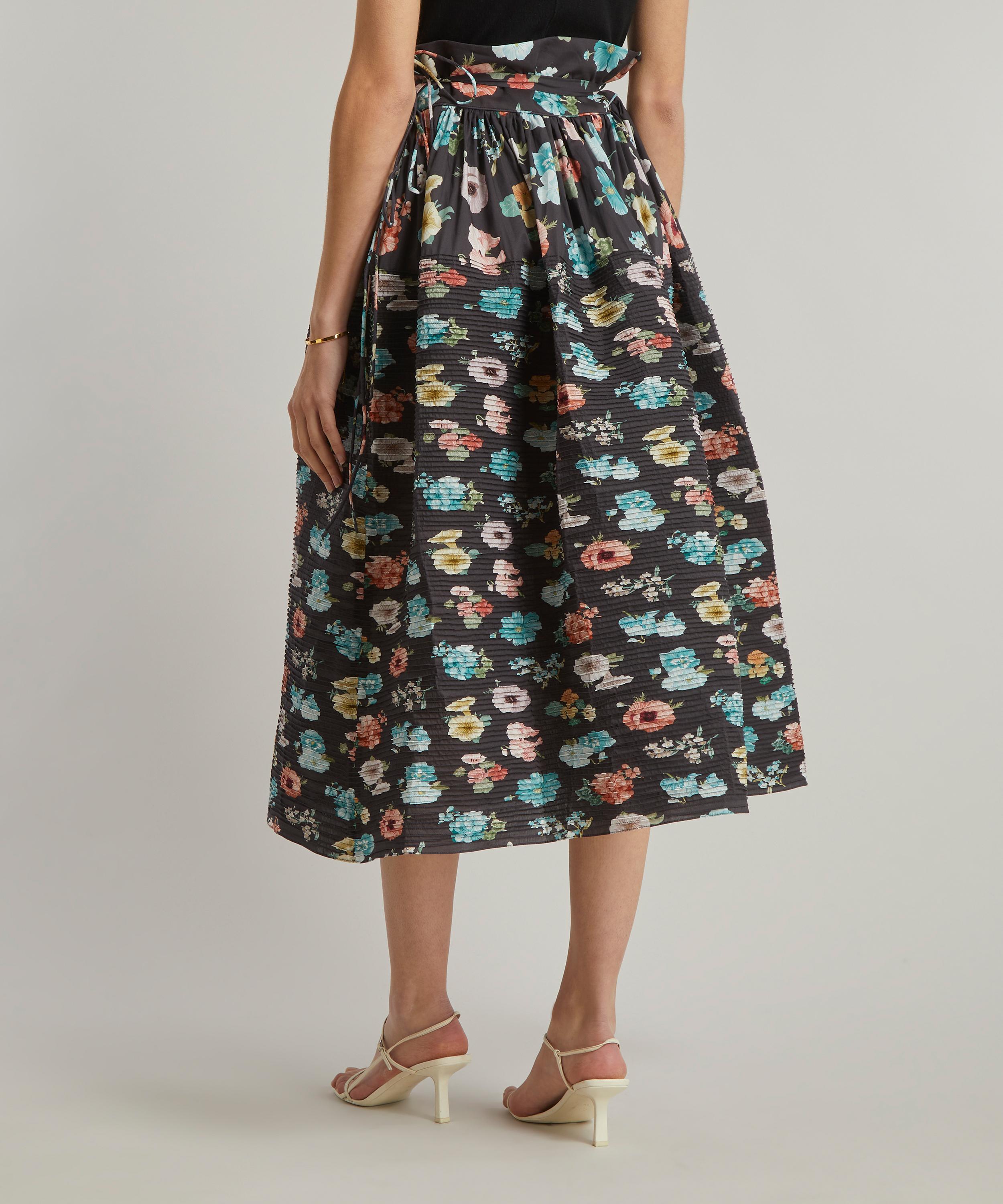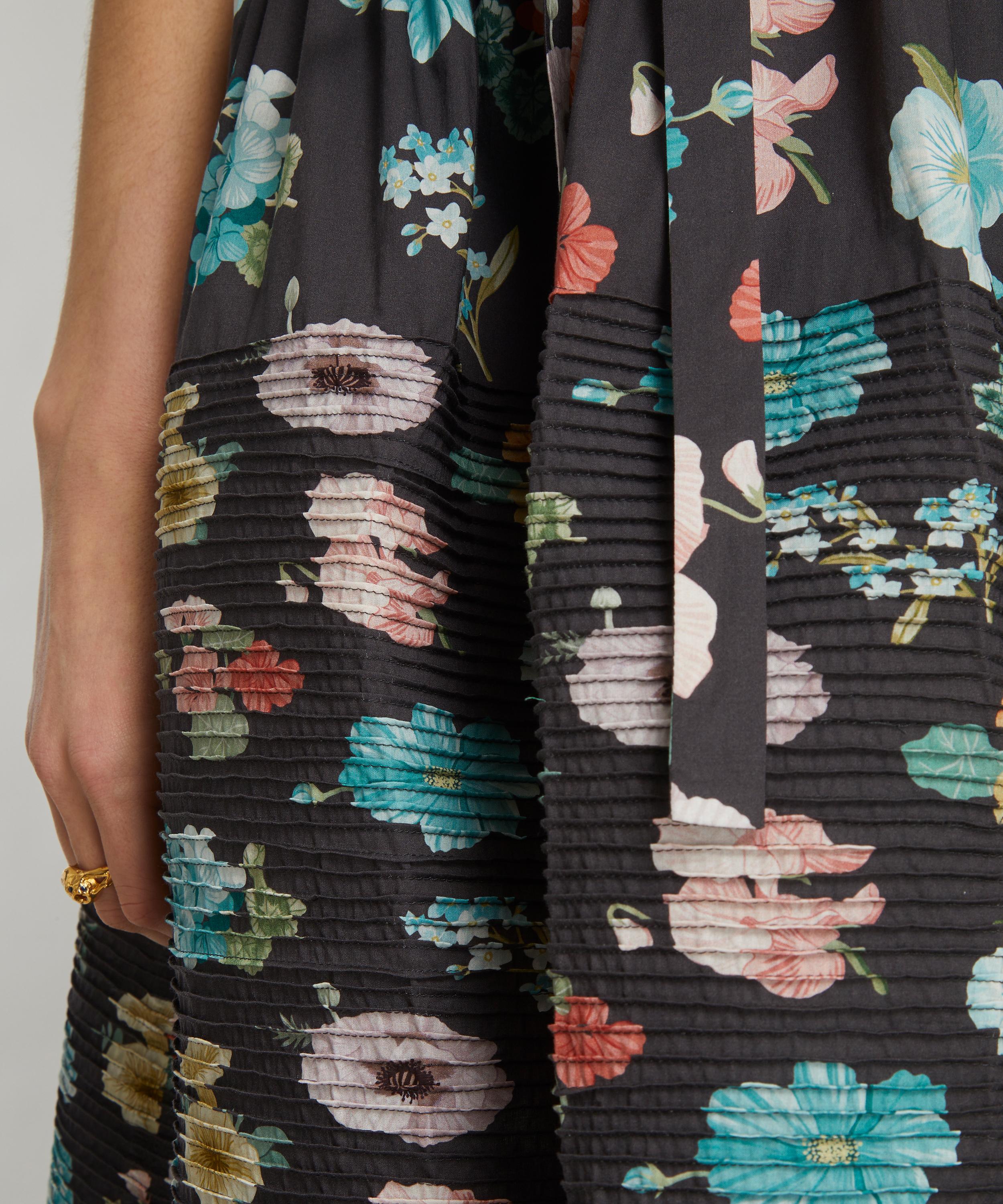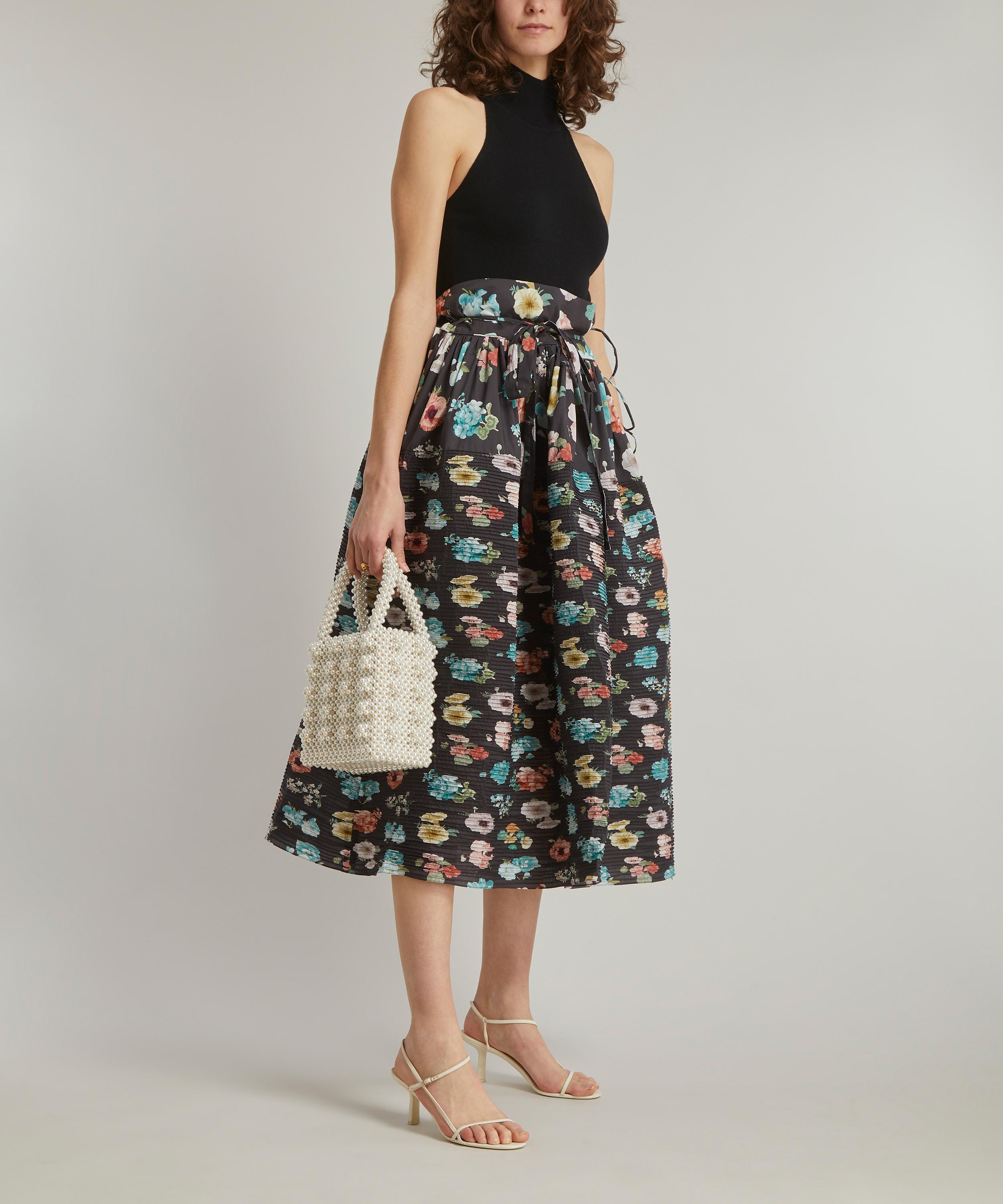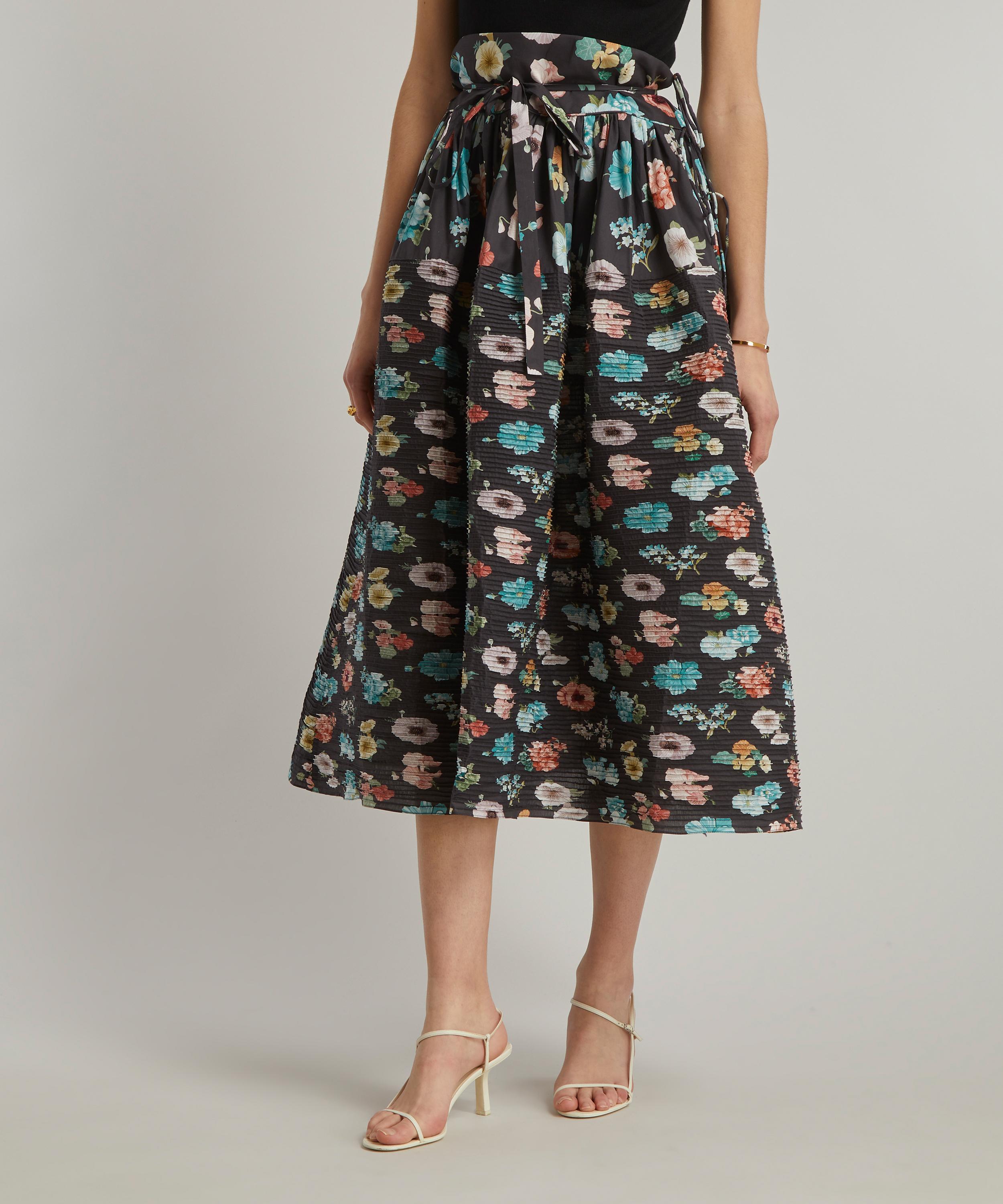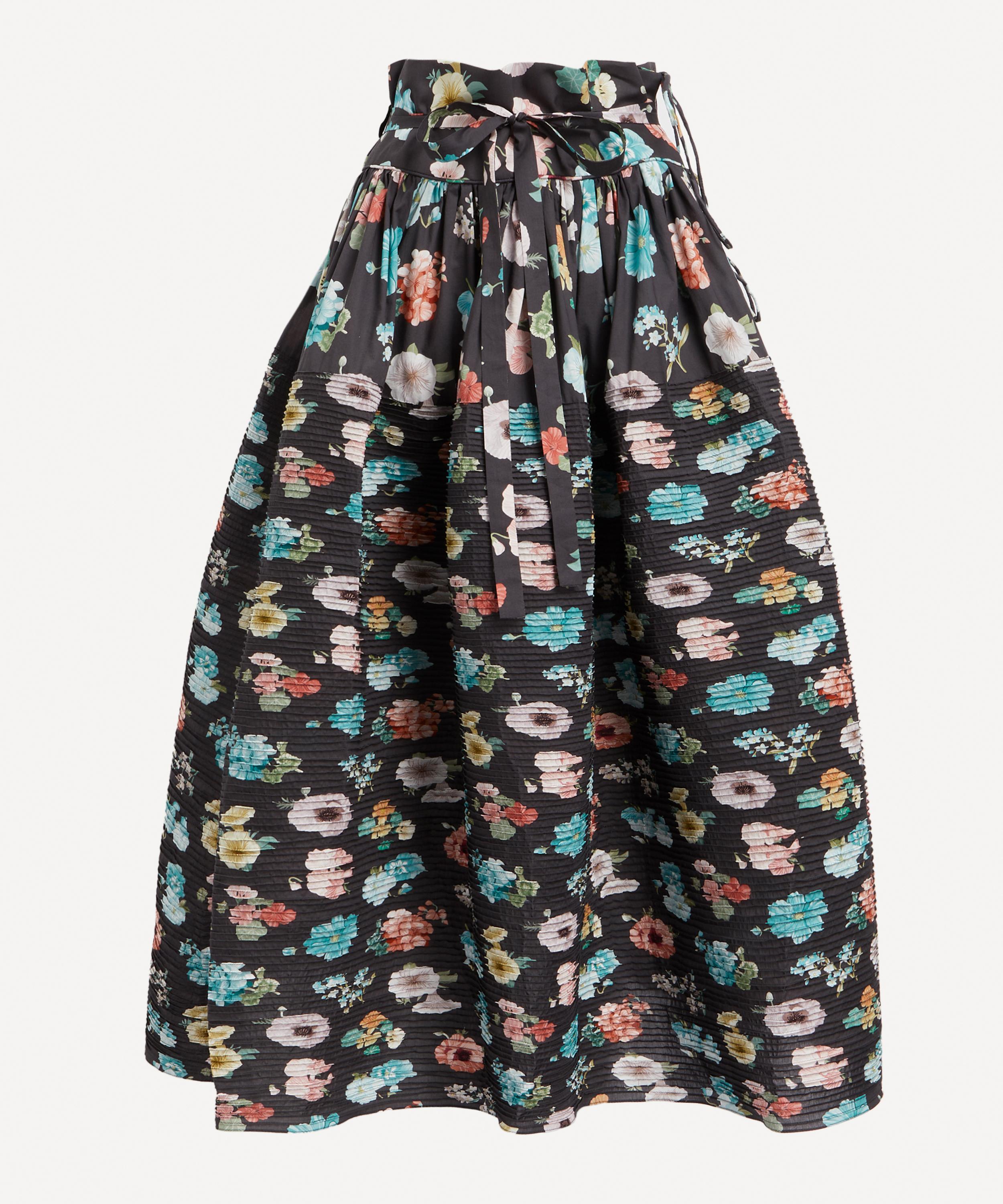 Fusing feminine frills with floral Liberty prints, Munich-based label Horror Vacui presents the Toga midi-skirt. Cut from Liberty’s classic Mrs Gardener Tana Lawn™ Cotton to a fitted and flared A-line silhouette featuring a tie-belt at the waist, it's finished with intricate hand-pleated pintuck detailing throughout.