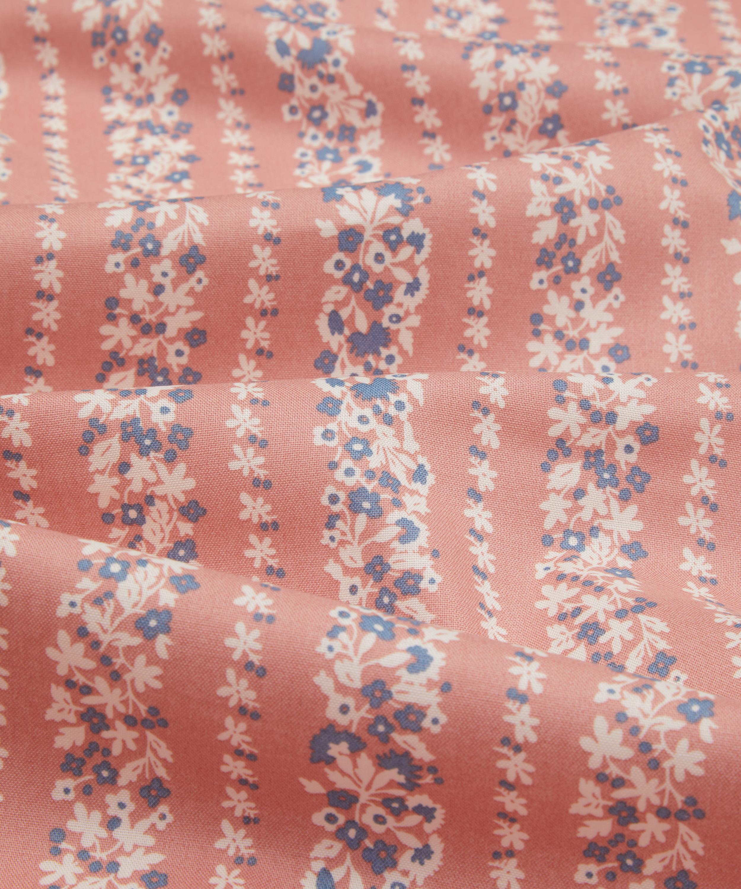 Based on an archival Liberty textile piece dating from 1939, Topiary Stripe is reminiscent of floral chains, garlands, and ribbons. Created in a series of tonal colourways, this charming stripe arrangement provides a strong sense of directionality, adding visual interest and contrast when used as a border or binding.
