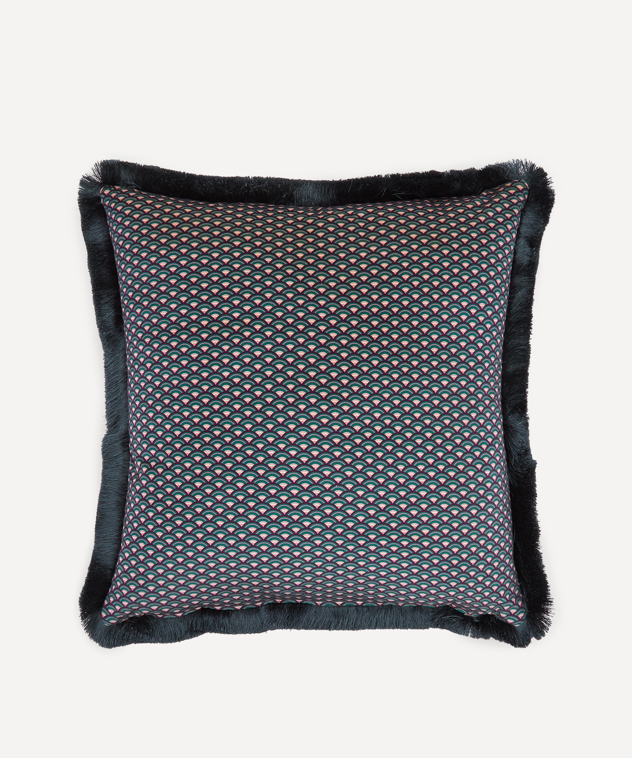 The Tree of Life is an ancient symbol of abundance – a classic Liberty scarf since 1976, the layout is reimagined here into a fresh placement print. This fringed cushion’s sumptuous velvet form is printed by experts in Italy with a vibrant archival design, and then plumped out with duck feathers for a soft and inviting finish. Throw it on a daybed or armchair, for a luxe archive-inflected approach to modern interiors.