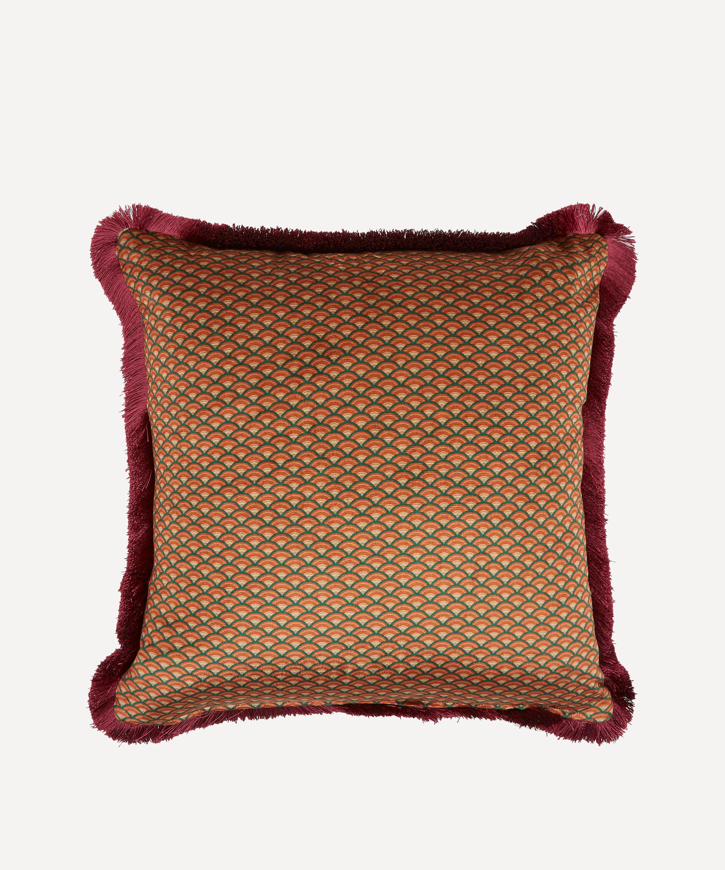 Liberty has always been dedicated to interiors – for our Pavilion Ball collection the in-house design team looked to Brighton’s magnificent Royal Pavilion, which Liberty was once commissioned to decorate for a visiting Maharaja back in the 19th century. The Tree of Life is an ancient symbol of fertility and abundance – a classic Liberty scarf since 1976, the layout is reimagined here into a fresh placement print. This fringed cushion’s sumptuous velvet form is expertly printed in Italy with a vibrant design, and then plumped out with duck feathers for a soft and inviting finish. Perch it on a bedspread or favourite reading armchair for a touch of palatial yet thoroughly modern decadence.