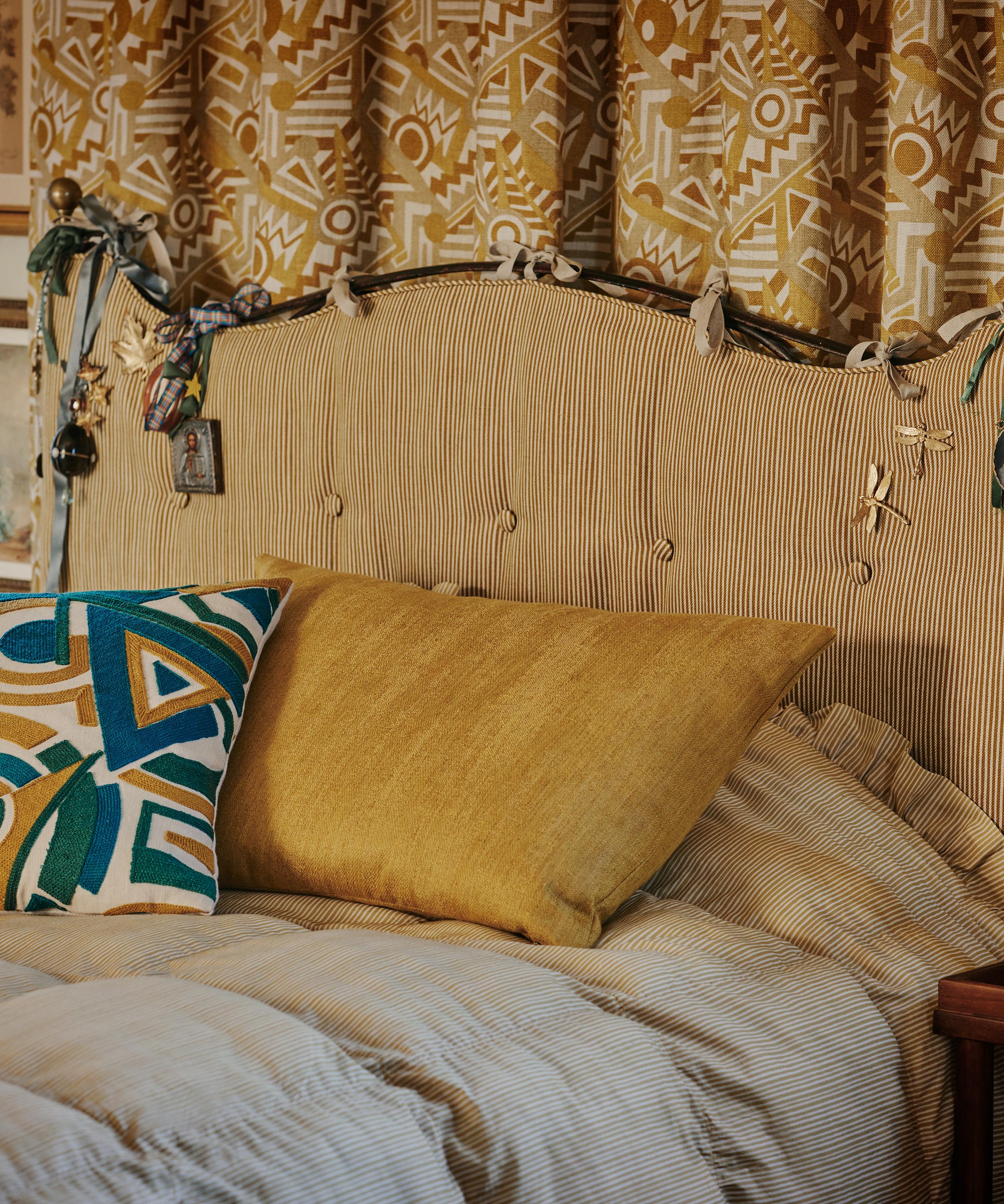 Trepak Embroidery was originally designed by Bernard Nevill for the 1965 Liberty Jazz collection. Now reimagined, it features a playful, three-dimensional decorative embroidery – ideal for drapery and decorative accessories such as cushions.