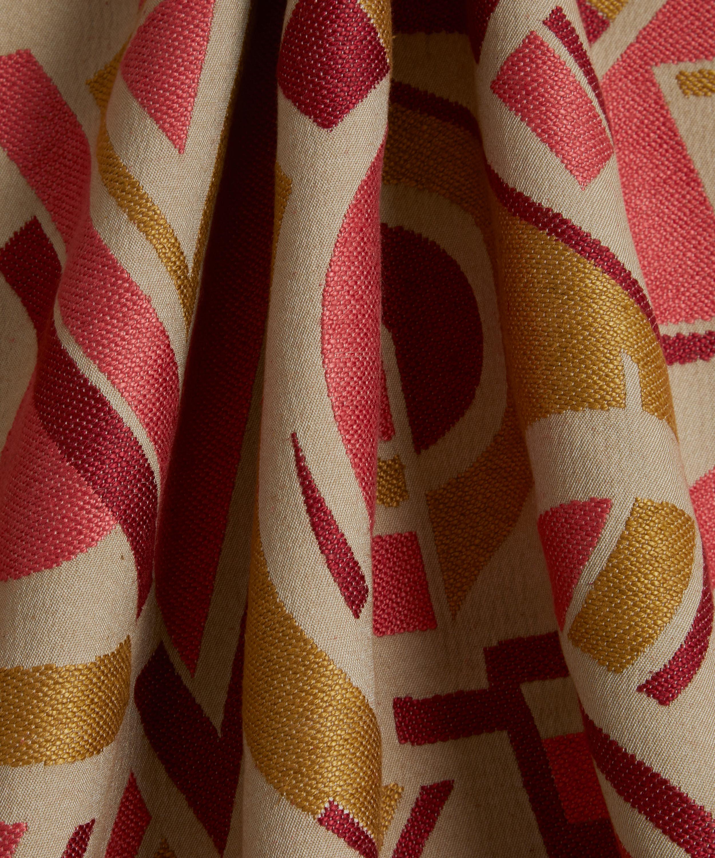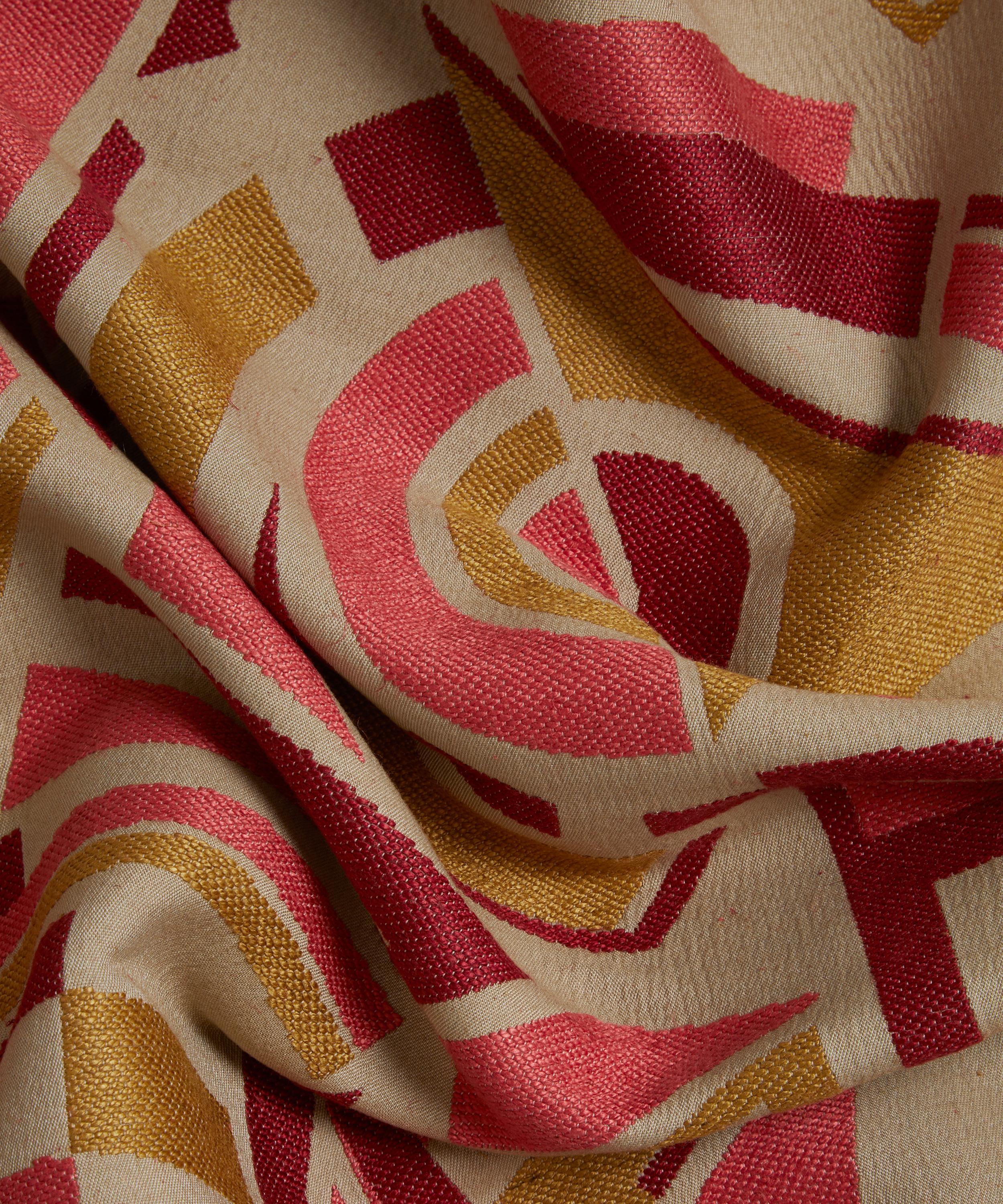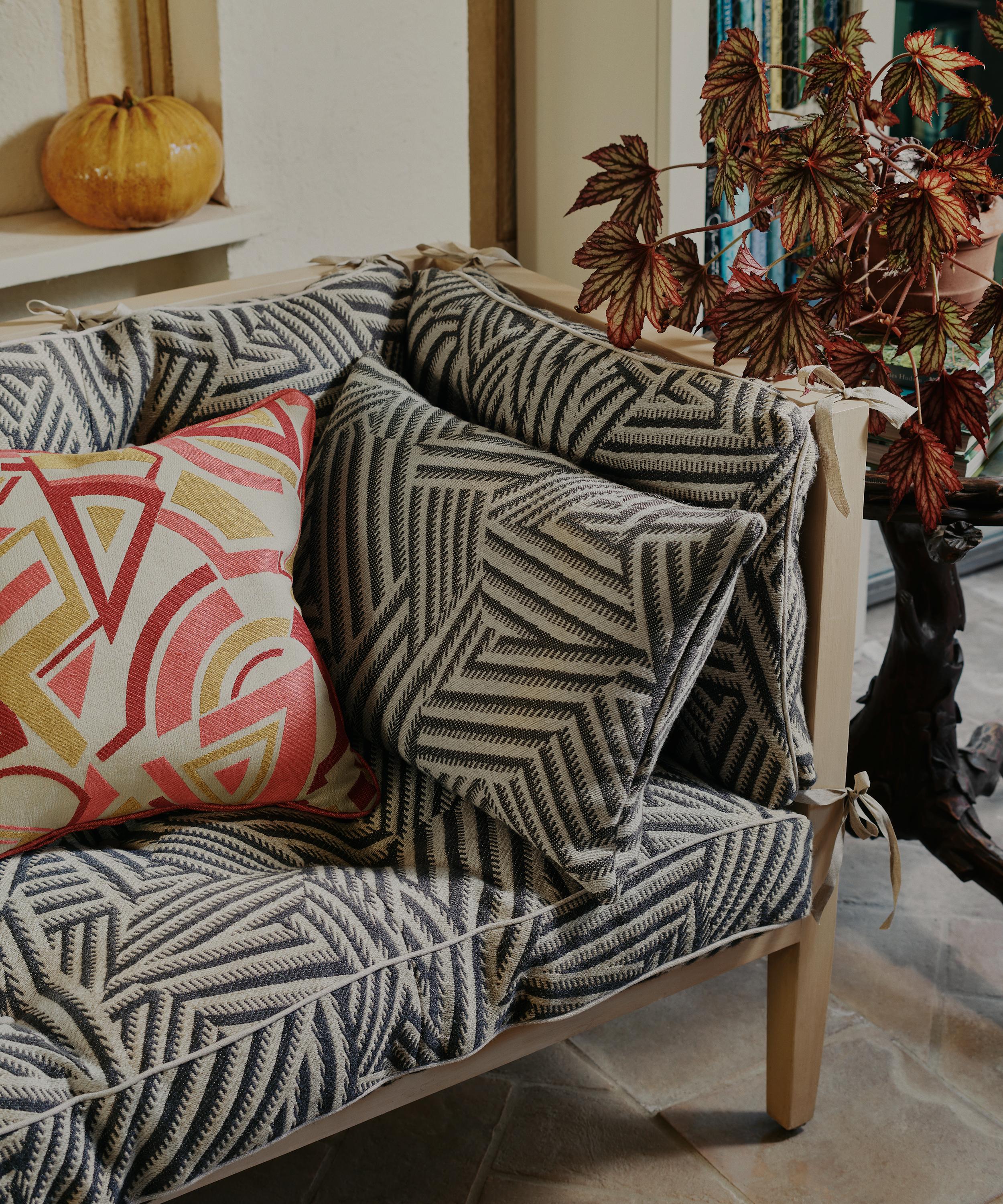 Trepak Weave was originally designed by Bernard Nevill for the 1965 Liberty Jazz collection. Now reimagined, it features a playful, three-dimensional decorative embroidery – ideal for drapery and decorative accessories such as cushions.