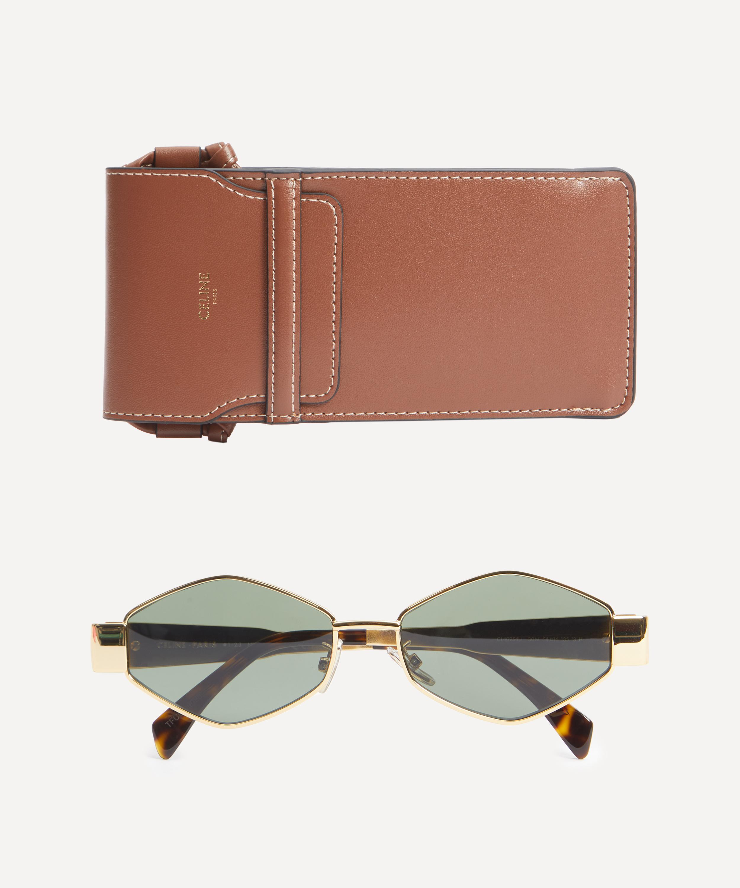 Edgy and ultra-wearable in equal measures, these geometric sunglasses from Celine will instantly invigorate any attire. Offering a hexagon-shaped frame, they have been expertly crafted from gold-tone metal for a sleek finish. Further characterised by tinted lenses and the brand’s emblem logo to the temples, slide them on for a sophisticated French finish to your everyday look.