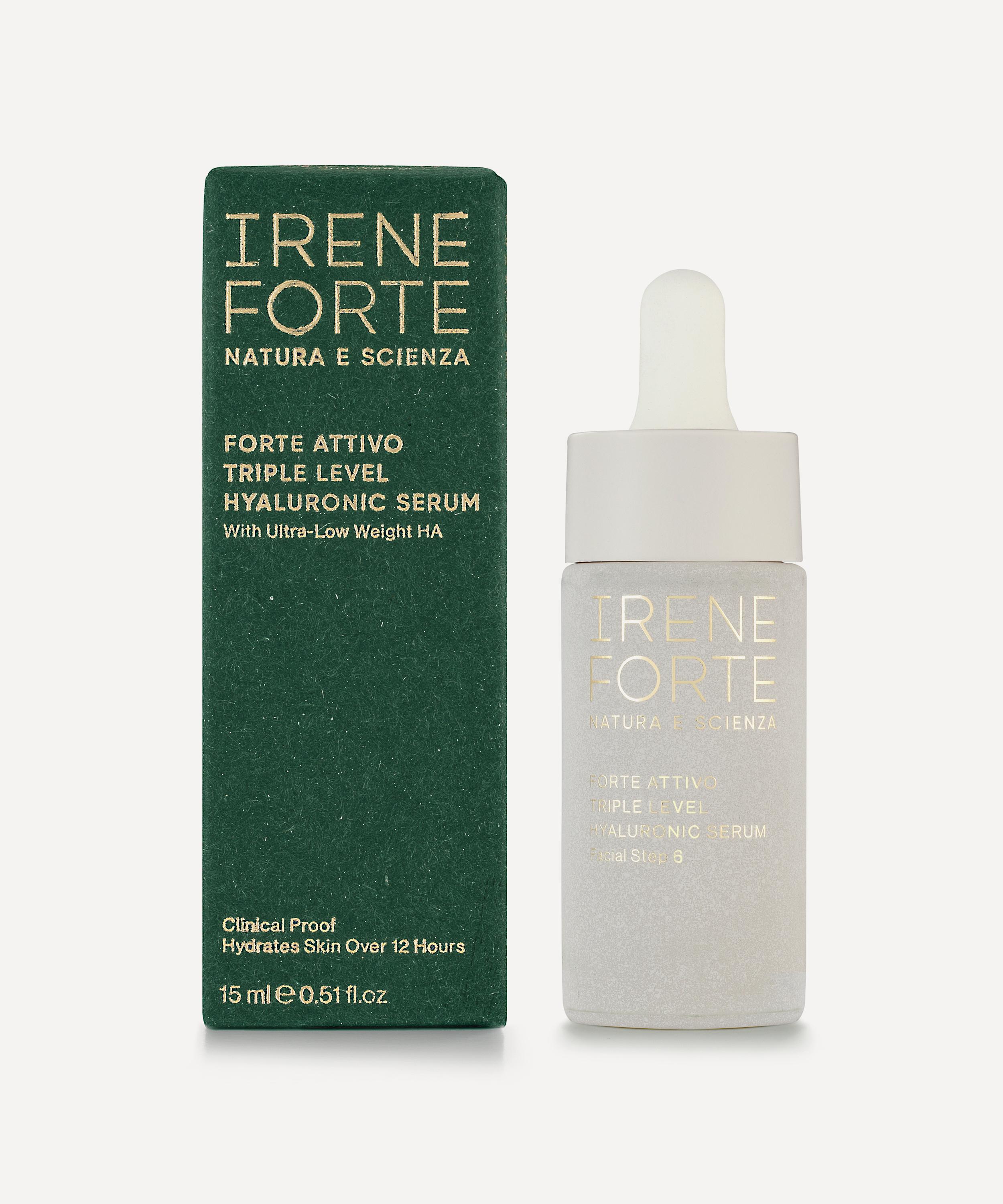 Triple Level Hyaluronic Serum with Ultra-Low Weight HA is Irene Forte's balancing solution for all skin types, formulated to plump, hydrate and smooth.