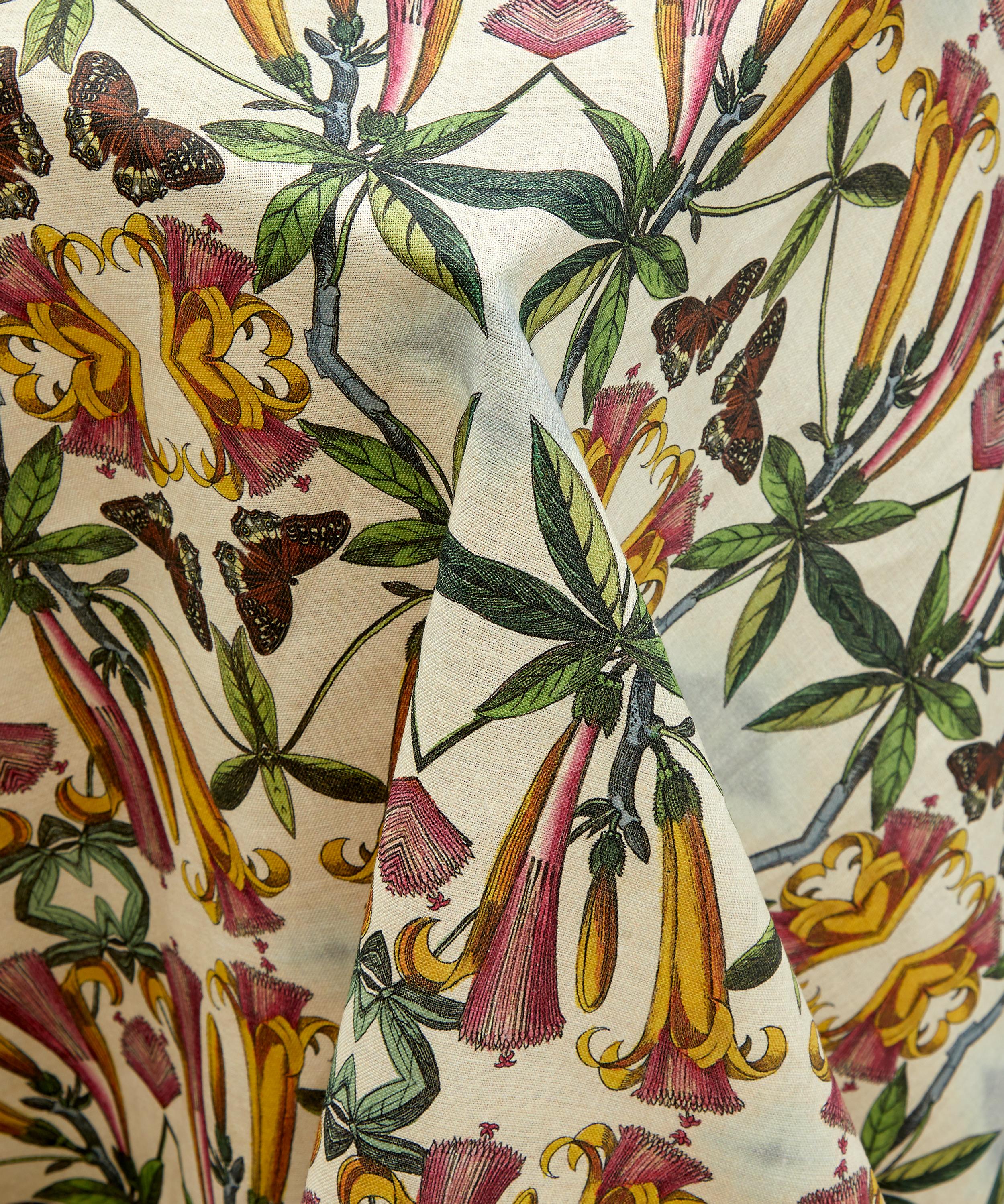 In the Flora Collection, Avenida Home collaborates with the design connoisseurs at PATCH NYC, transforming the wild configurations of the natural world into fascinating homewares. Bursting with life and evocative of a country house garden, the Trumpet Flower tablecloth exquisitely explores otherness and harnesses unique colour combinations for a hypnotising effect. Crafted from natural linen, drape over a wooden table to bring a bright and botanical aesthetic to your dinner setting.