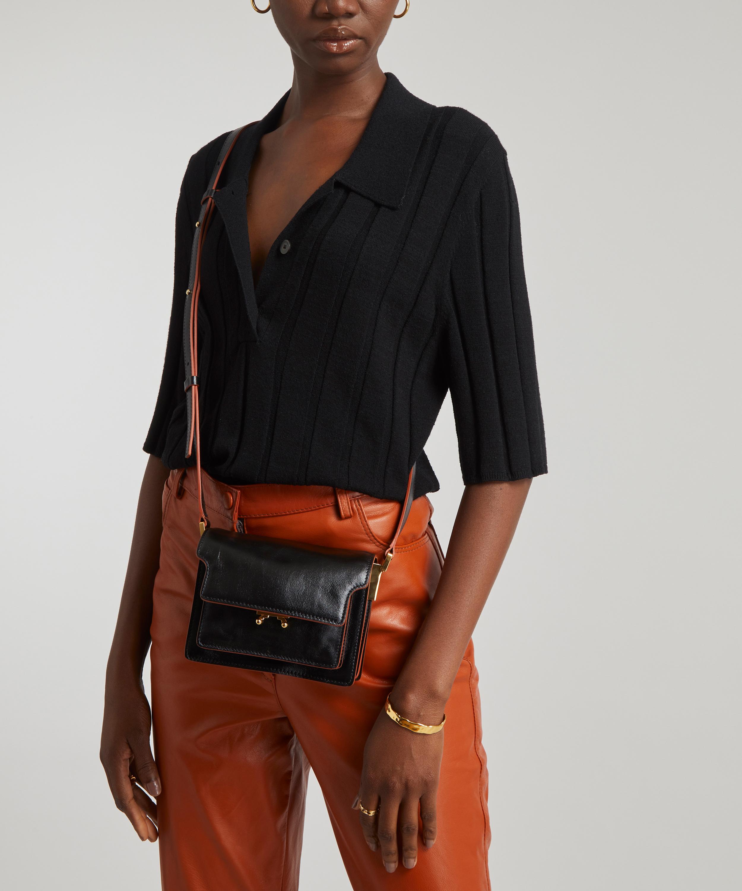 Marni draws on its '70s affiliations to bring us this chic, boxy cross-body bag. In rich black leather and trimmed with deep red - it brings the brand's canny take on retro colour palettes to your everyday wardrobe.