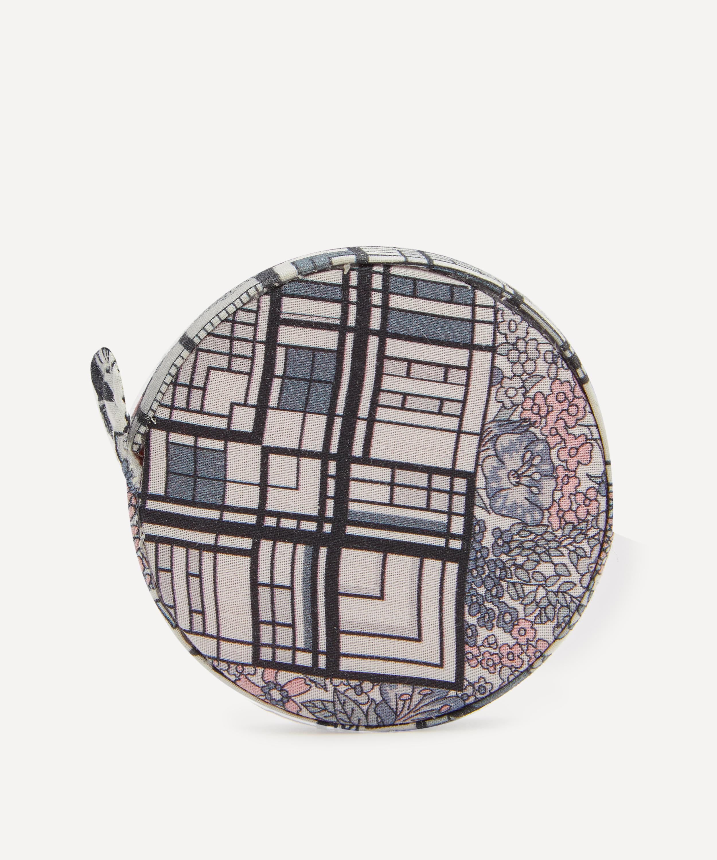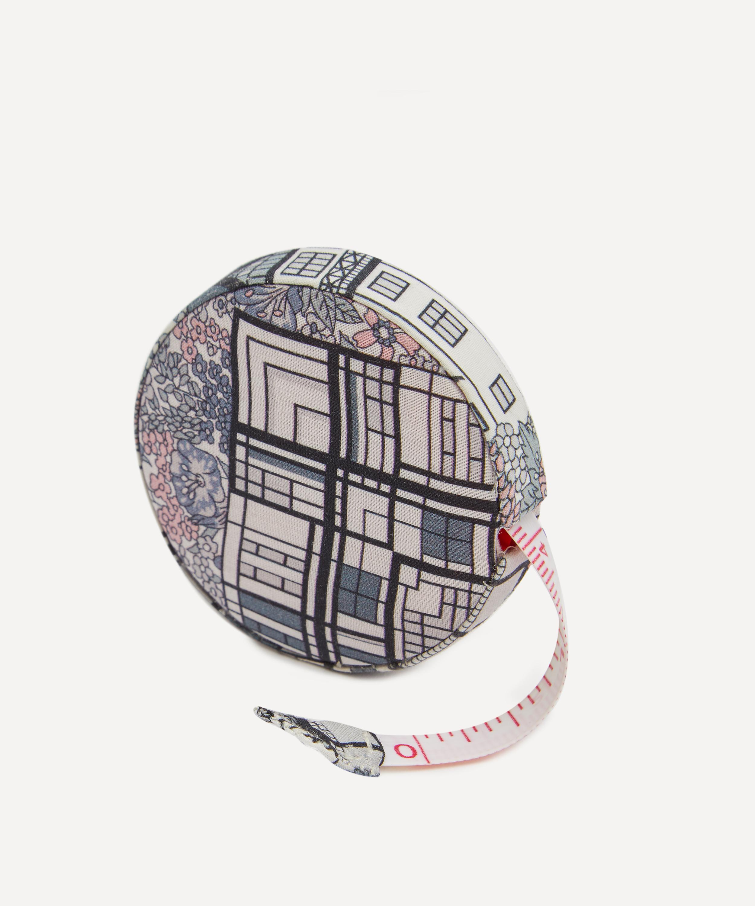 This measuring tape comes in a circular fabric case featuring a classic Liberty print.