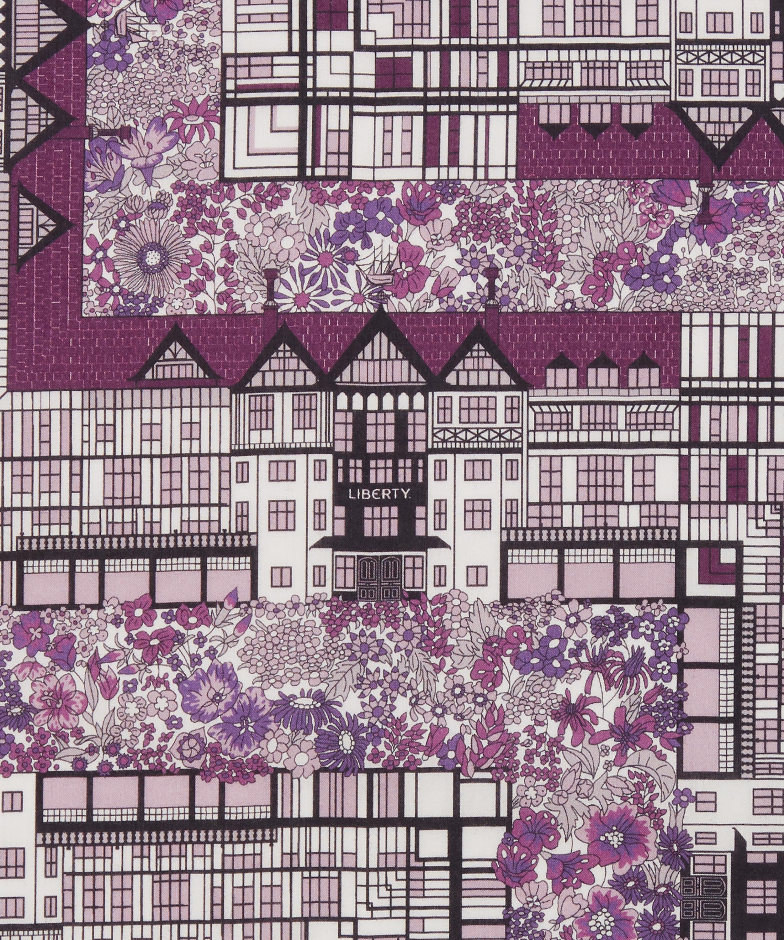 In a love letter to our iconic London flagship store, Tudor Belle showcases a combination of floral and architectural geometric elements – capturing the excitement of walking through Liberty’s big wooden doors, with a street featuring a redrawn version of our Margaret Annie print in homage to the famous Liberty flower shop. Look out for charming details on the building, such as the little windows under the eaves and the Mayflower ship weathervane on the roof.