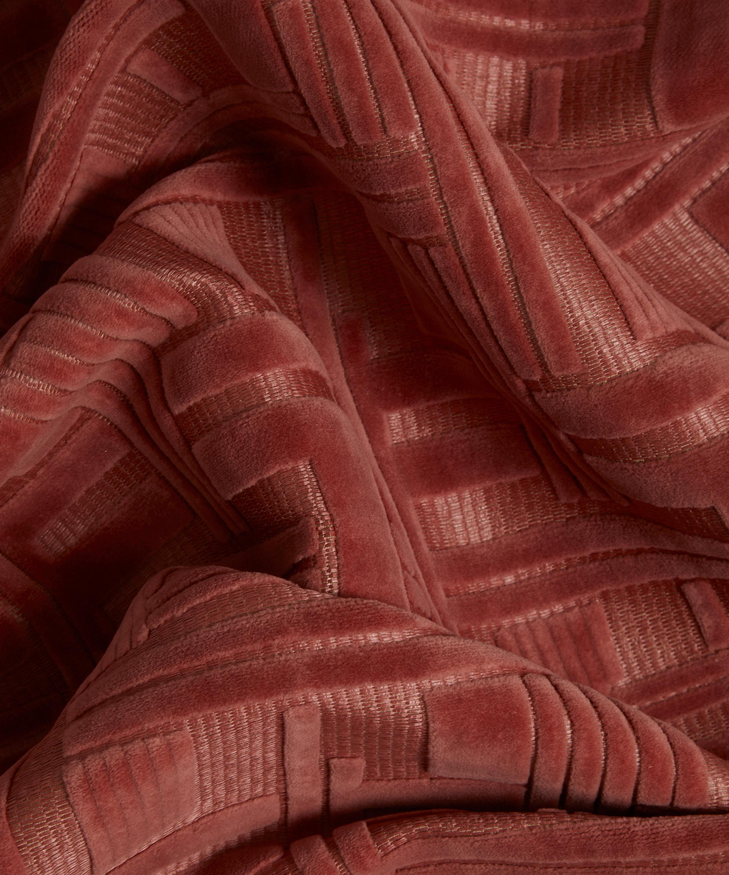 Inspired by a scarf design from the Liberty archives, Tudor Columns pays homage to the iconic Tudor Liberty flagship store – featuring a high-density jacquard velvet, juxtaposed with a raffia ground. This fabric is ideal for heavy domestic upholstery, drapery, and elegant throw cushions.
