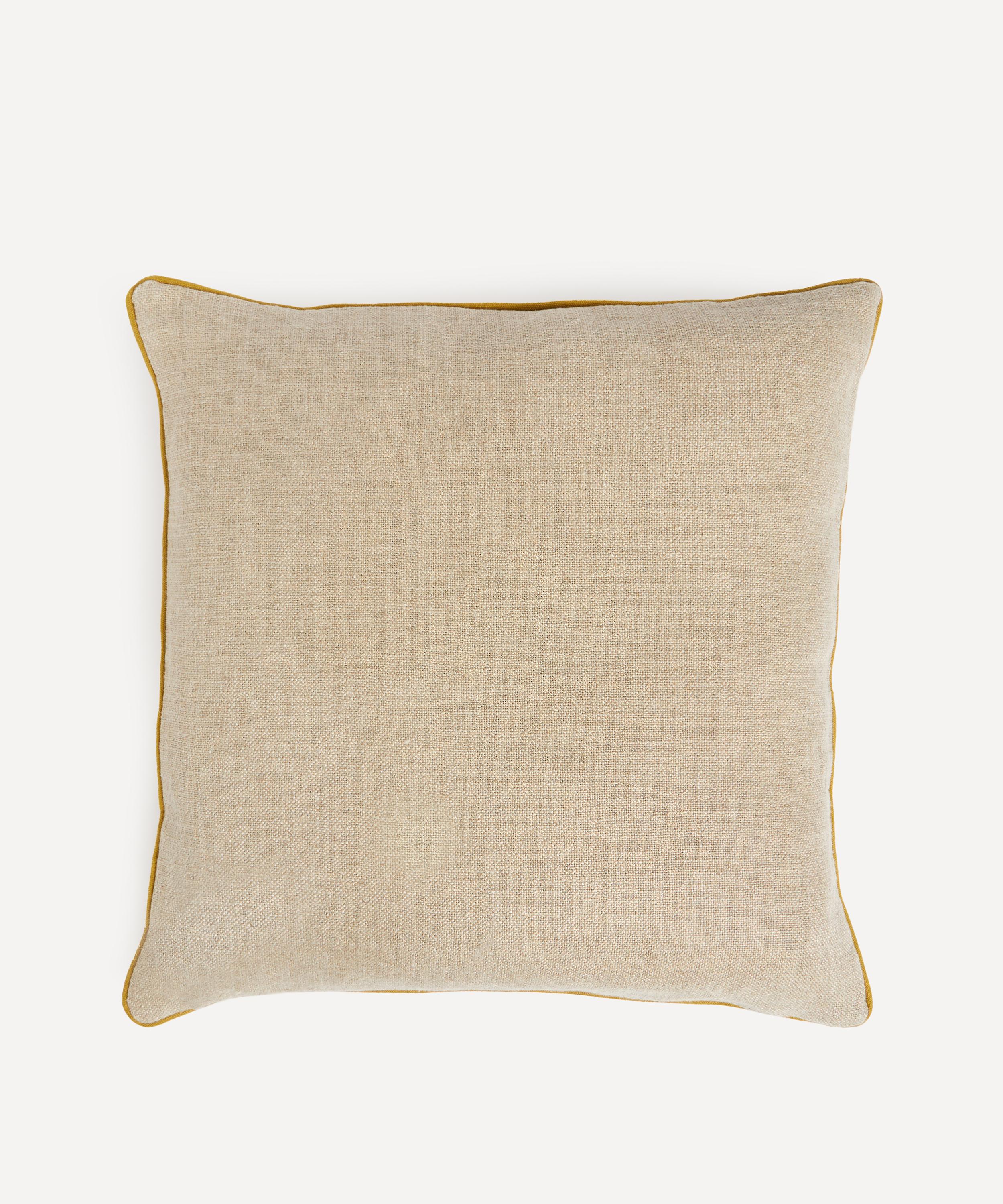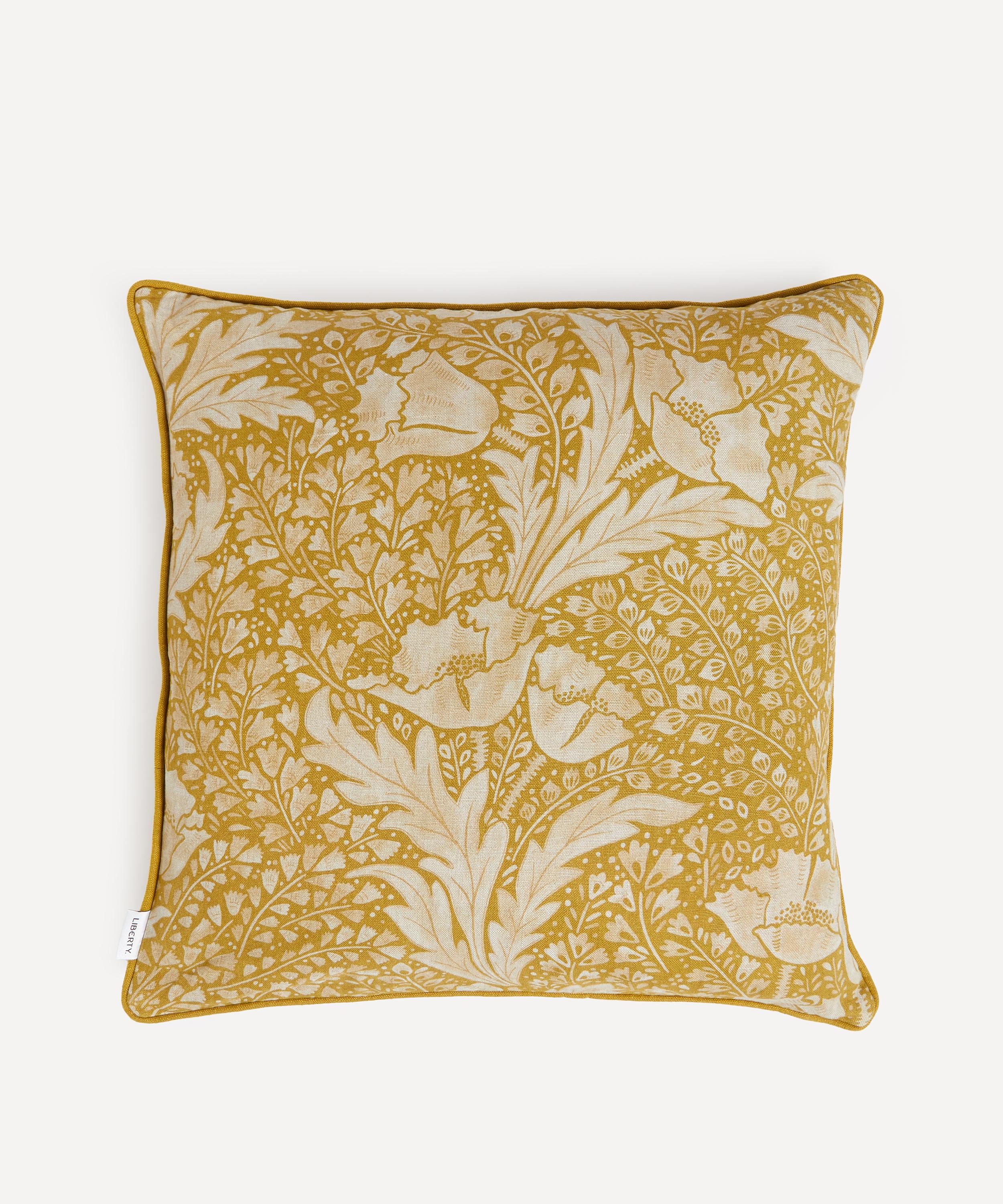 Liberty’s Tudor Poppy square cushion presents an expressive floral design with a plump duck feather filling.