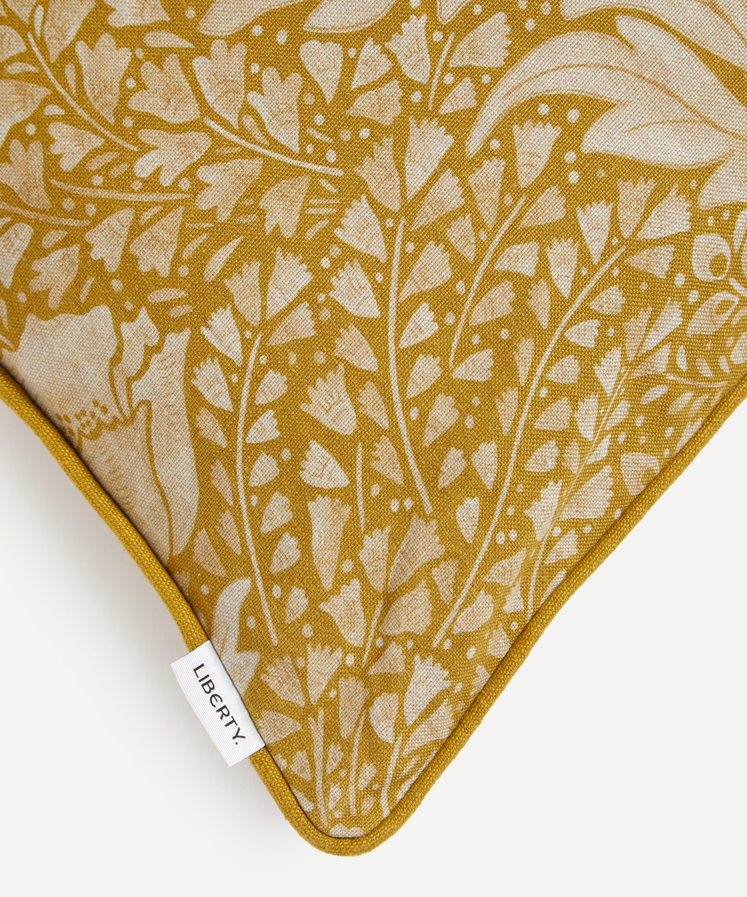 The Botanical Atlas collection celebrates Liberty’s historic lineage of craftsmanship and design through a cross-pollination of styles and visual narratives. Richly layered embroideries, opulent textured weaves, and contemporary printed velvets and linens are juxtaposed with a selection of elegant stripes and mesmerising geometrics - expertly crafted using traditional and cutting-edge techniques in Italy, Belgium, and India. Tudor Poppy was inspired by a small fragment of fabric discovered in the Liberty archive dating from 1895. Bold stylised poppies appear to flow in undulating synergy, within a setting of winding foliage and tiny flowering buds in this luxurious and poised botanical. Paying homage to Liberty’s long-standing association with the Arts & Crafts movement, Tudor Poppy was lovingly restored and carefully reconstructed with delicate shading and soft inky washes – throw this cushion on a daybed or armchair for a verdant accent to modern interiors.