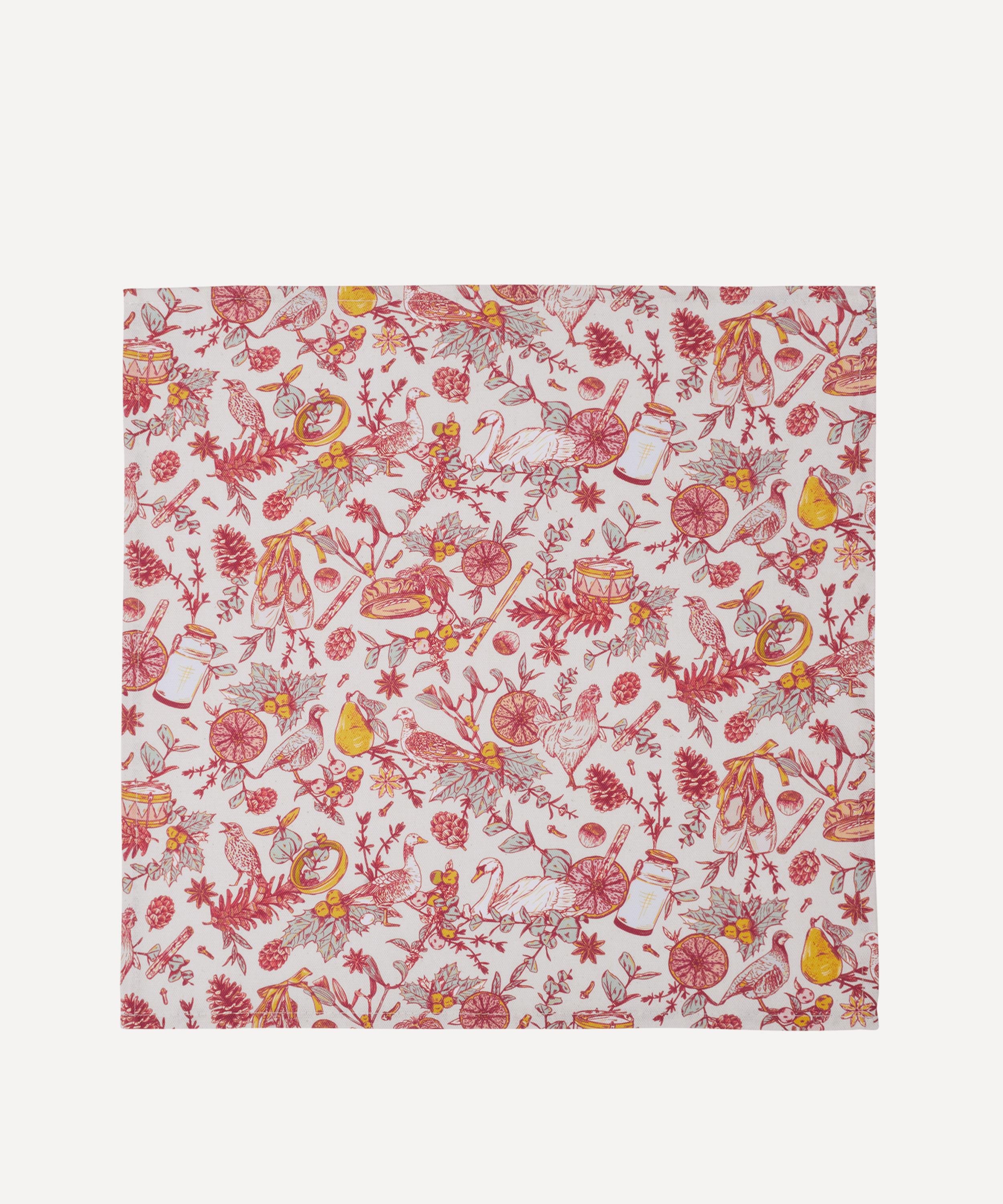 Meticulously handcrafted in the United Kingdom from soft cotton yarns, these napkins have been screen printed with a charming illustration inspired by the traditional Christmas carol The Twelve Days of Christmas, drawn by Victoria Eggs herself. Partner them with other napkins from the collection to add a festive touch to any dining setting.