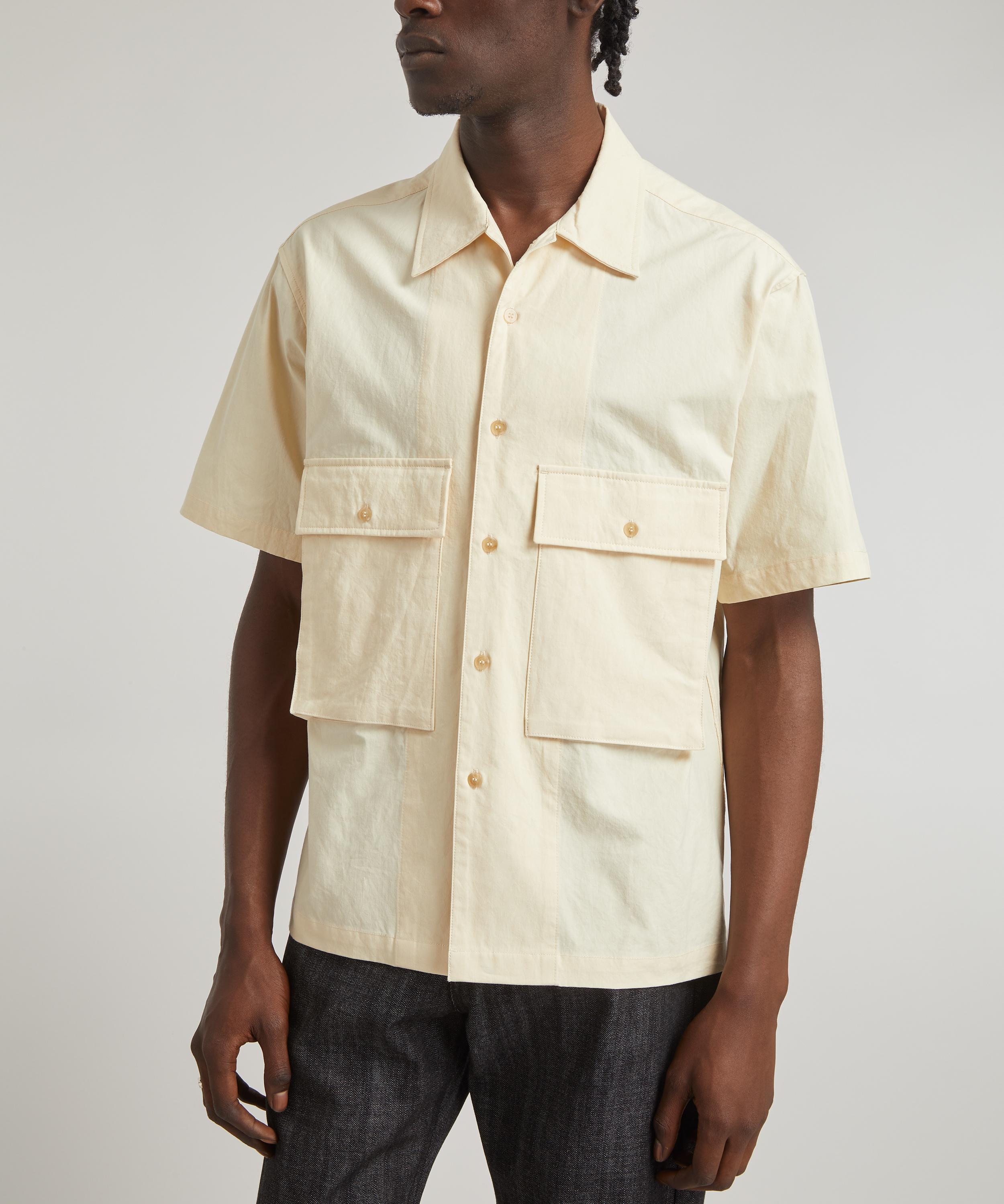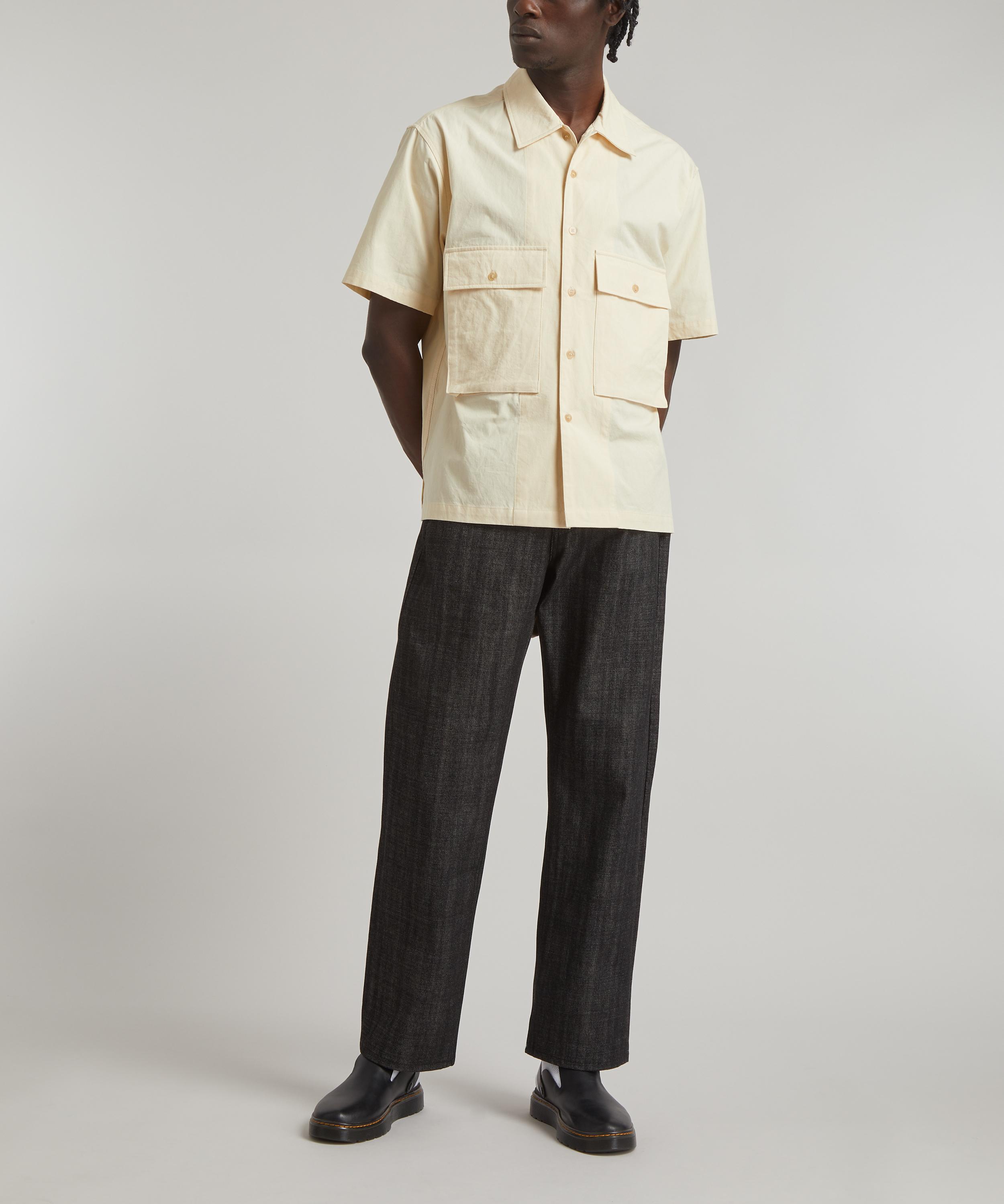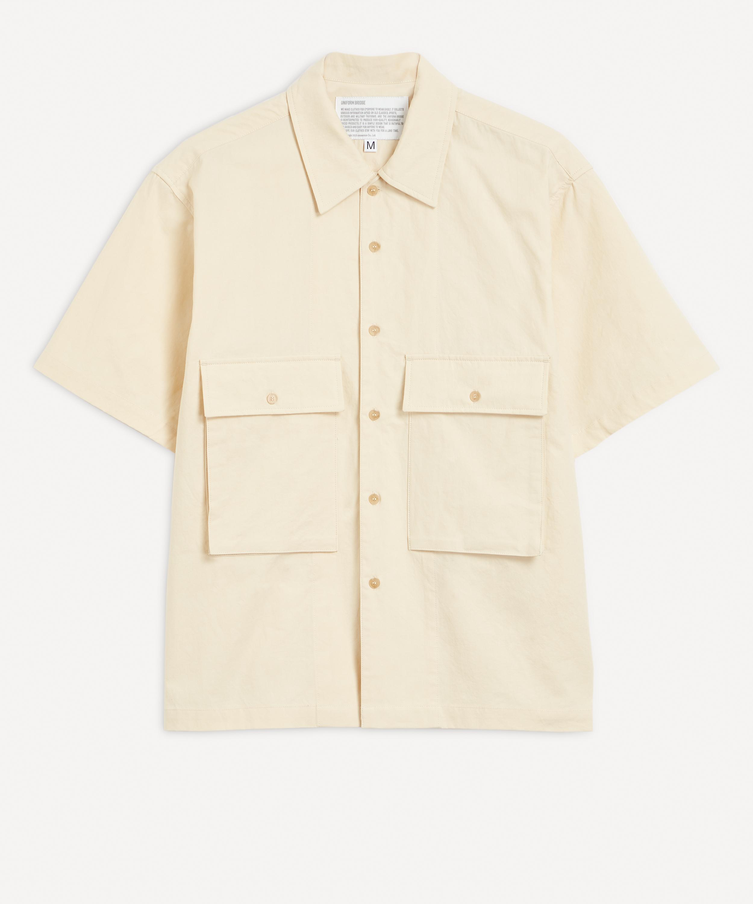 Balancing comfort and style, Uniform Bridge manufactures its short-sleeve shirt from a robust, high-density cotton and linen blend for ultimate comfort and functionality. A relaxed fit with a boxy silhouette, this short-sleeve shirt features a spread collar and a buttoned front closure, complete with two large front flap-pockets. Simply team it with black selvage jeans for ultimate urban style.