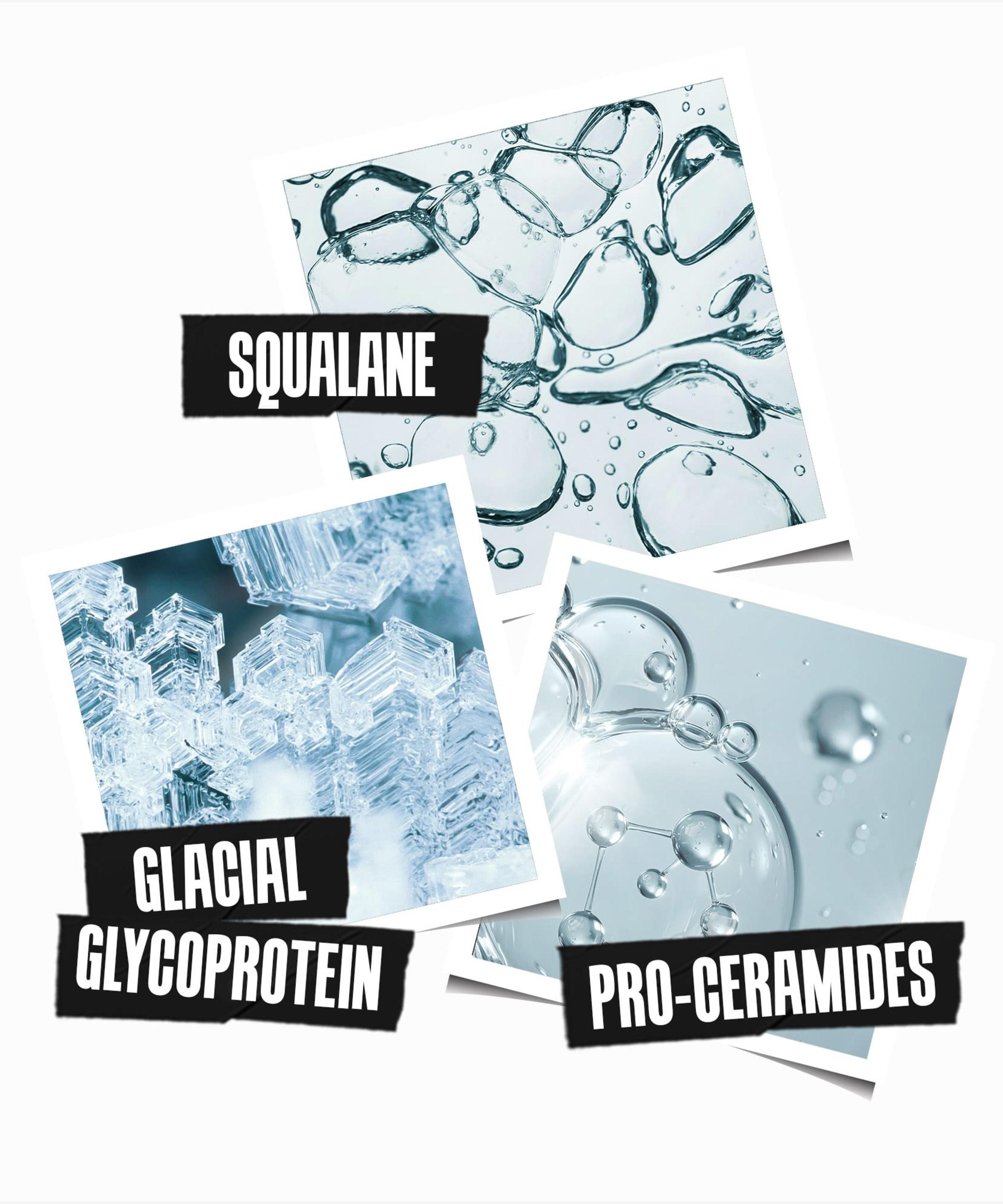 - Enriched with Actarcticine (Glacial Glycoprotein Extract), Imperata Cylindrica (Desert Plant Extract) and Squalane