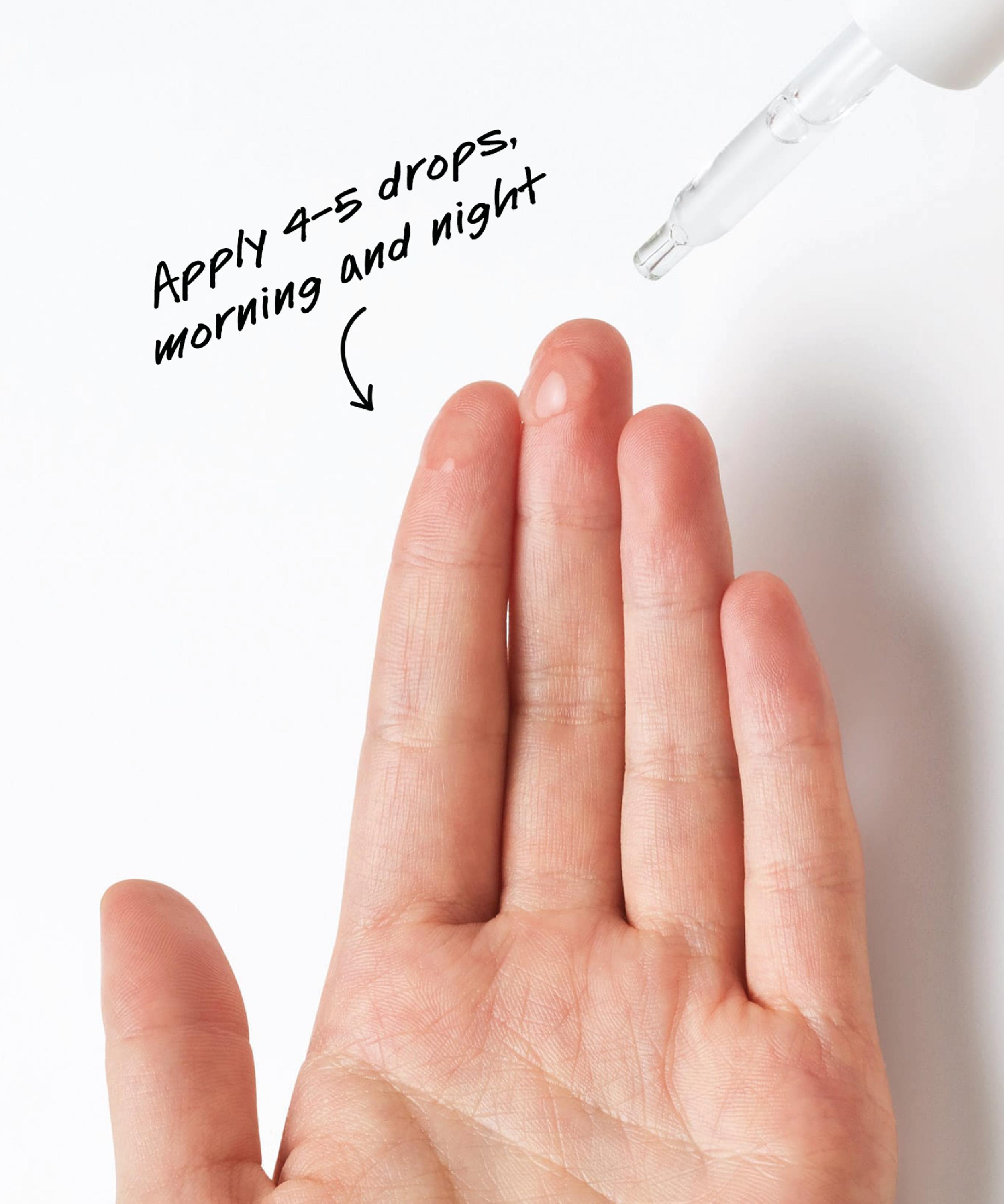 Apply 4–5 drops to clean, dry skin in the morning and evening and layer with other serums as needed.