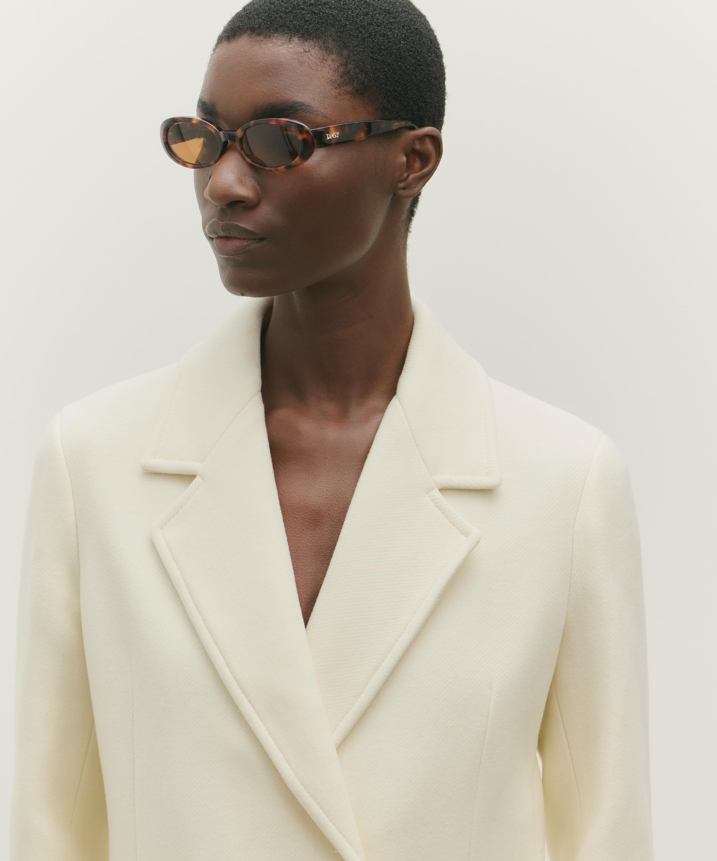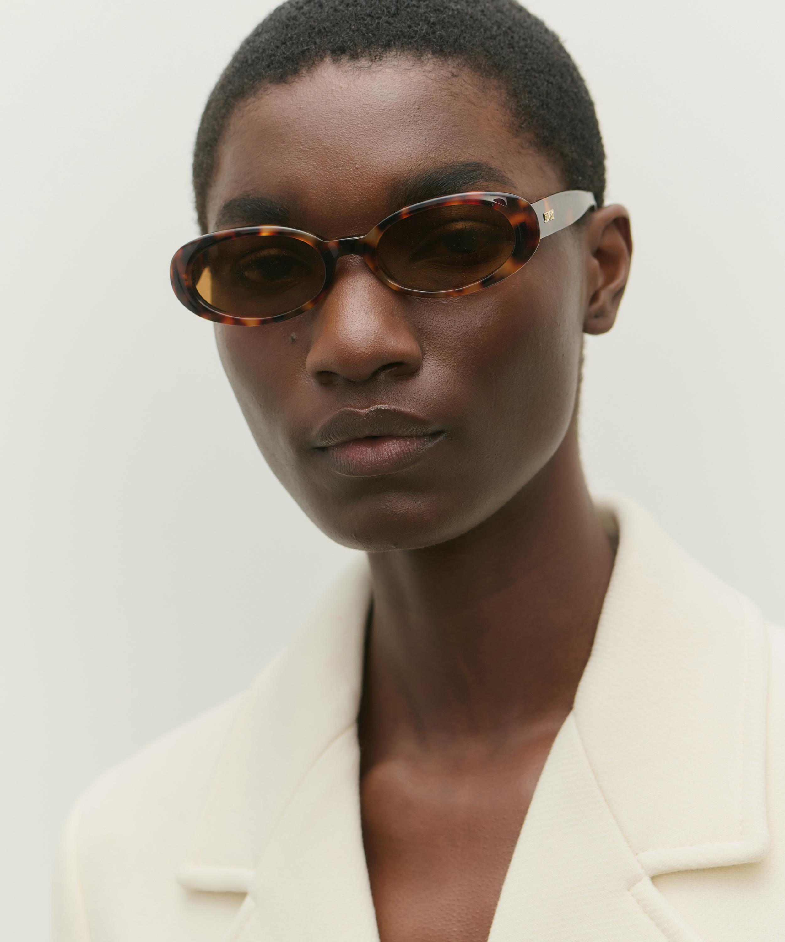 The Valentina sunglasses from independent British eyewear brand DMY Studios boast a playful, slightly narrowed oval silhouette.