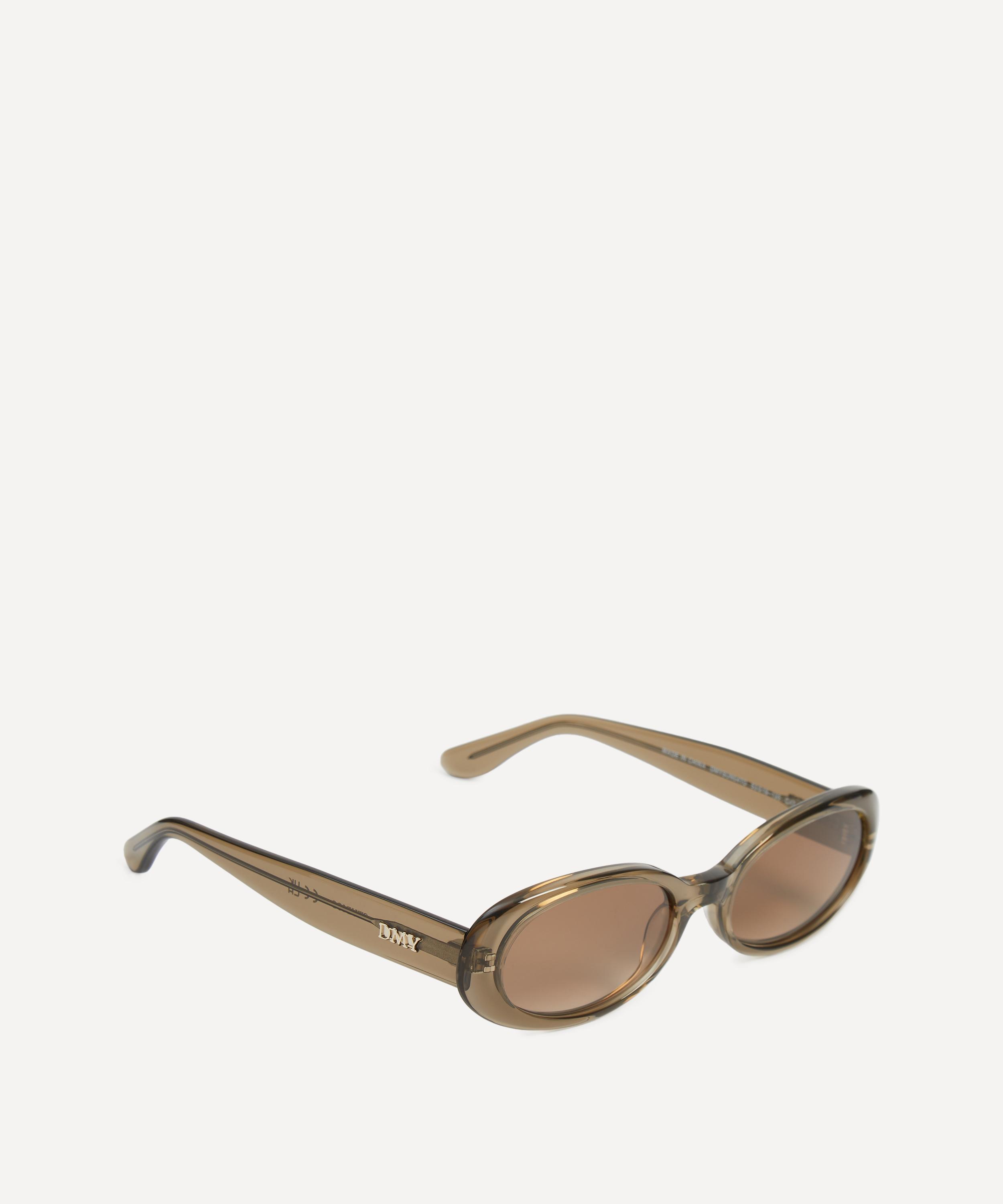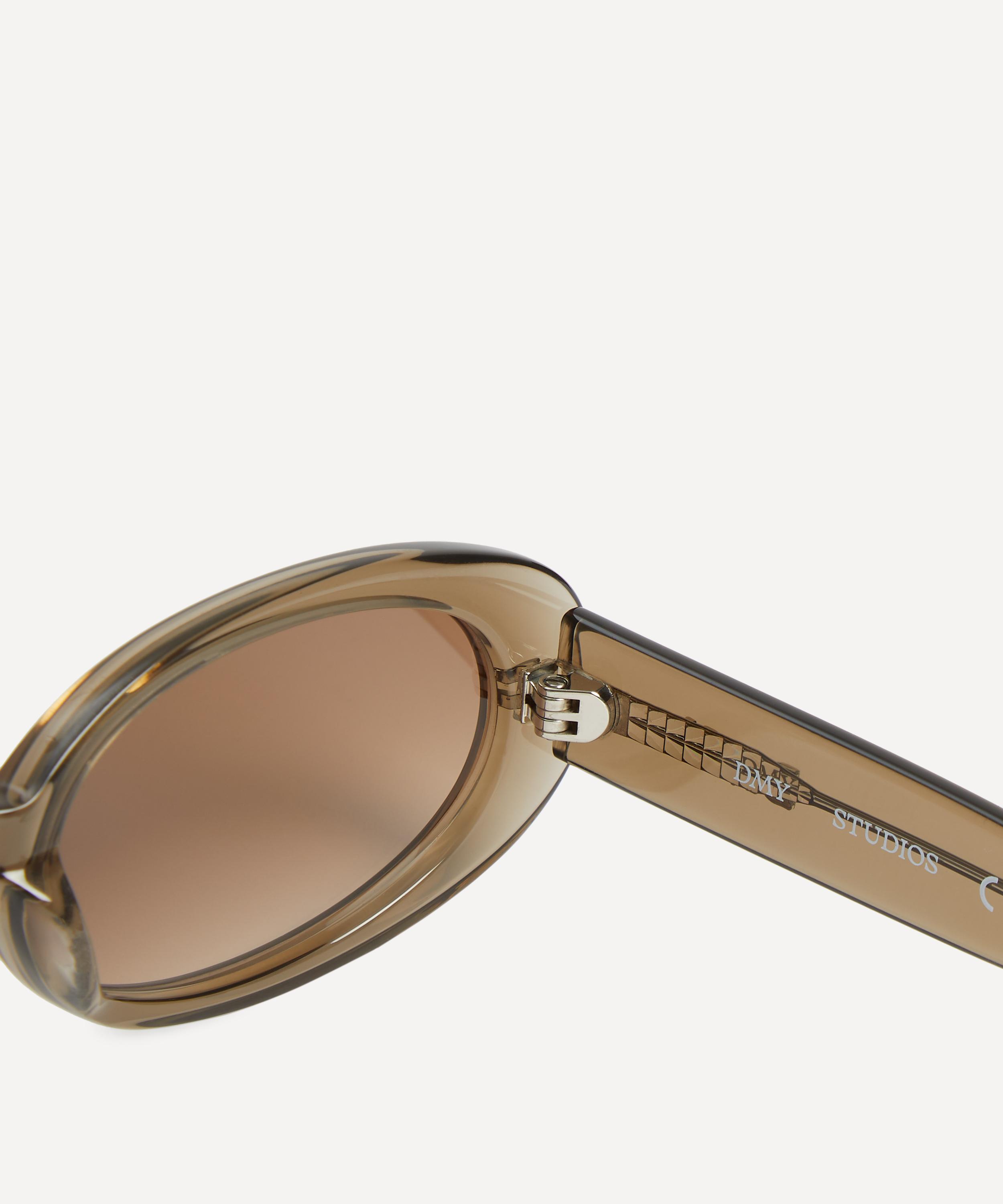 The Valentina sunglasses from independent British eyewear brand DMY Studios are a pair of slightly narrowed oval frames - presented here in a transparent green colourway.