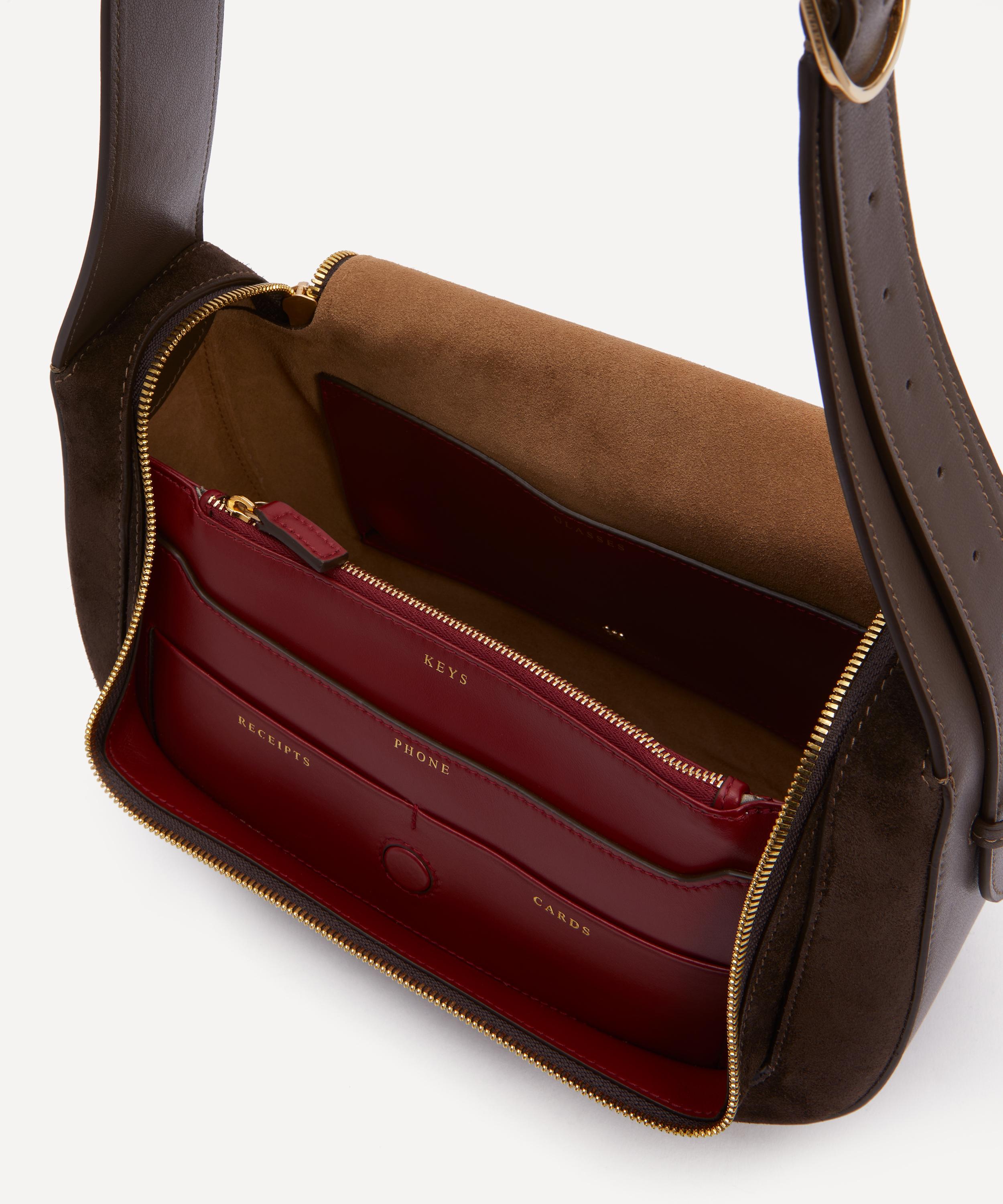 Anya Hindmarch’s bestselling Vere shoulder bag leans into the label’s celebrated love of order and organisation. Crafted from buttery suede with polished gold-tone hardware, it’s reimagined with a stud-embellished strap and opens to reveal labelled compartments designated for your phone, glasses, earphones, keys, receipts and cards, as well as further room for your make-up and other daily essentials – capturing Anya Hindmarch’s meticulous eye for detail.