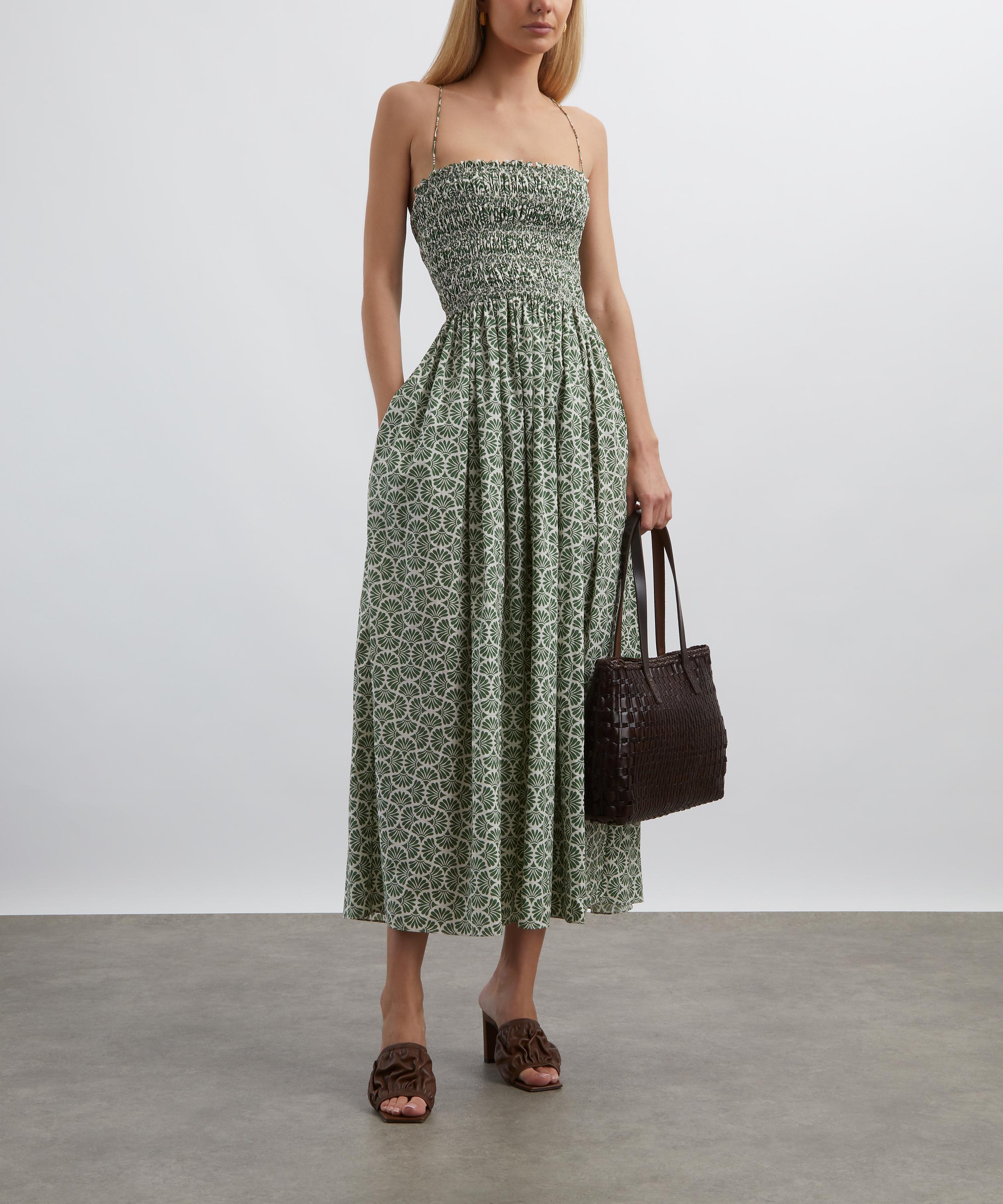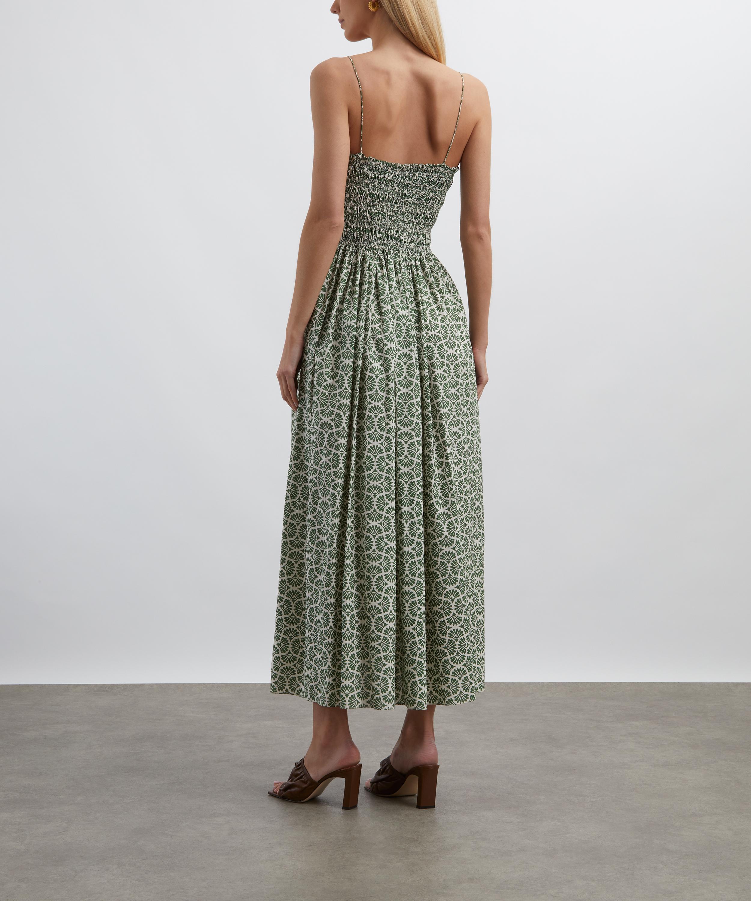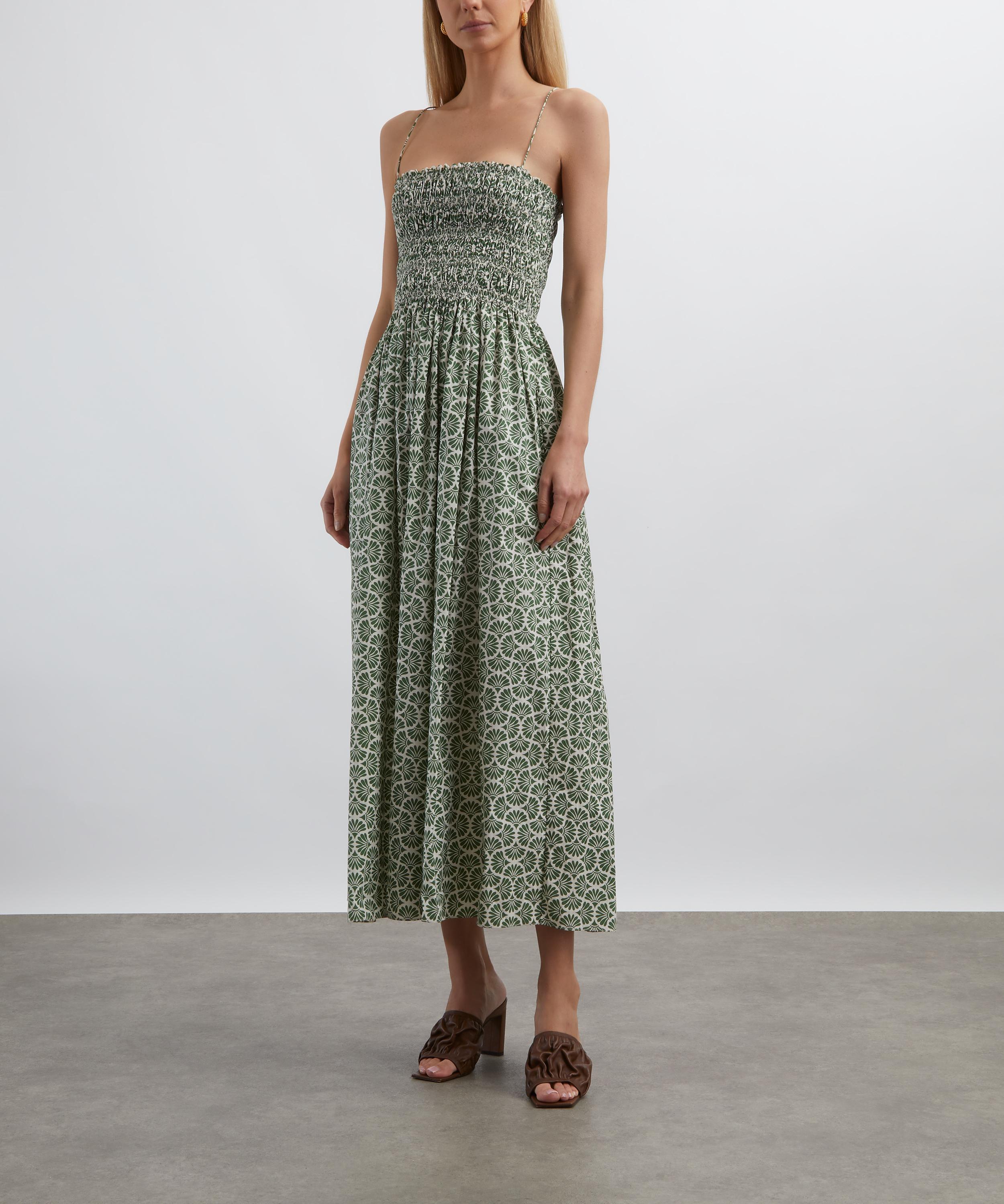Simple and considered, the Vetiver Shirred Bodice Dress from Matteau delivers the perfect blend of relaxed elegance.
