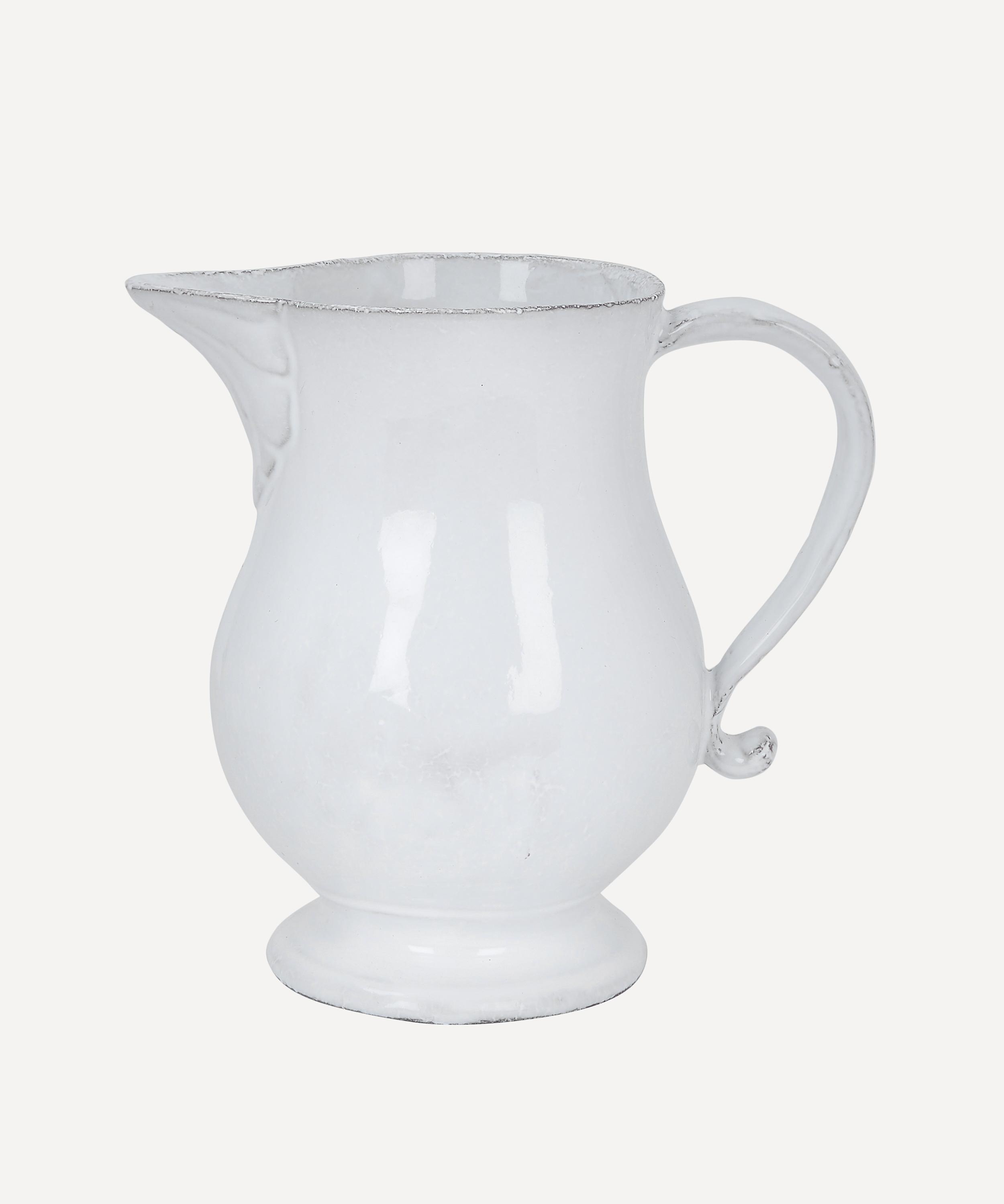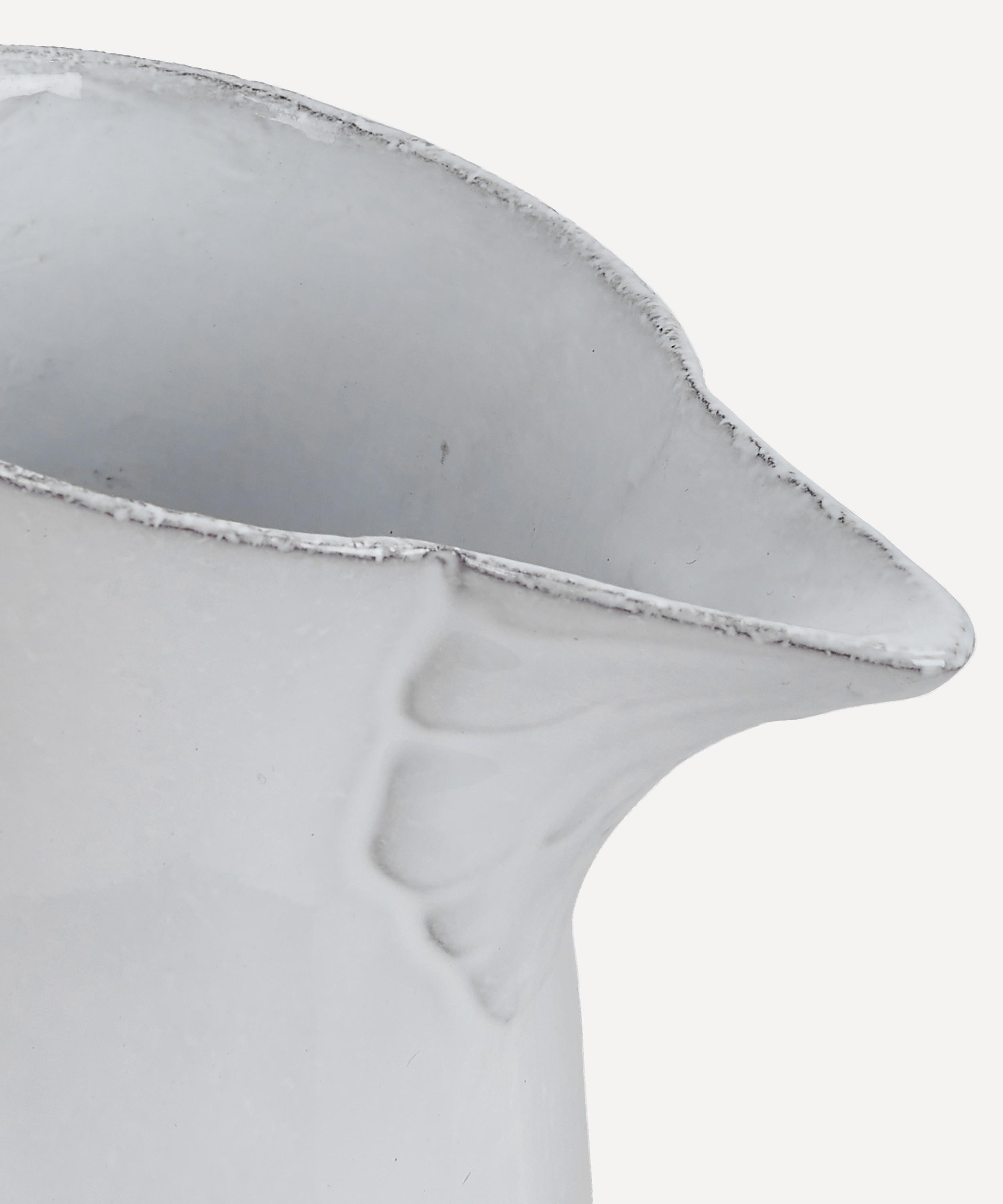 Votary of pre-industrial fabrication, Astier de Villatte is celebrated for being the one and only studio in Paris to hold and harbour the traditions of artisanal ceramic production. Restoring the ancestral systems of moulding and stamping, the Victor pitcher is made using techniques from the Middle Ages which involve moulding a sheet of handmade clay, double firing the ‘biscuit’ piece and glazing the product in white enamel – a lengthy process that requires a drying time of up to one month. Characterised by its well-rounded form, the jug is engraved with the brand’s signature crest - depicting an interlacing A & V - alongside the initials of one of the 40 master artisans who created it. Each handmade piece tells a beautiful story, it romances and imparts a sense of nostalgia into its owner. Arrange with other serveware in the collection to breathe an air of authenticity into your dining collection.