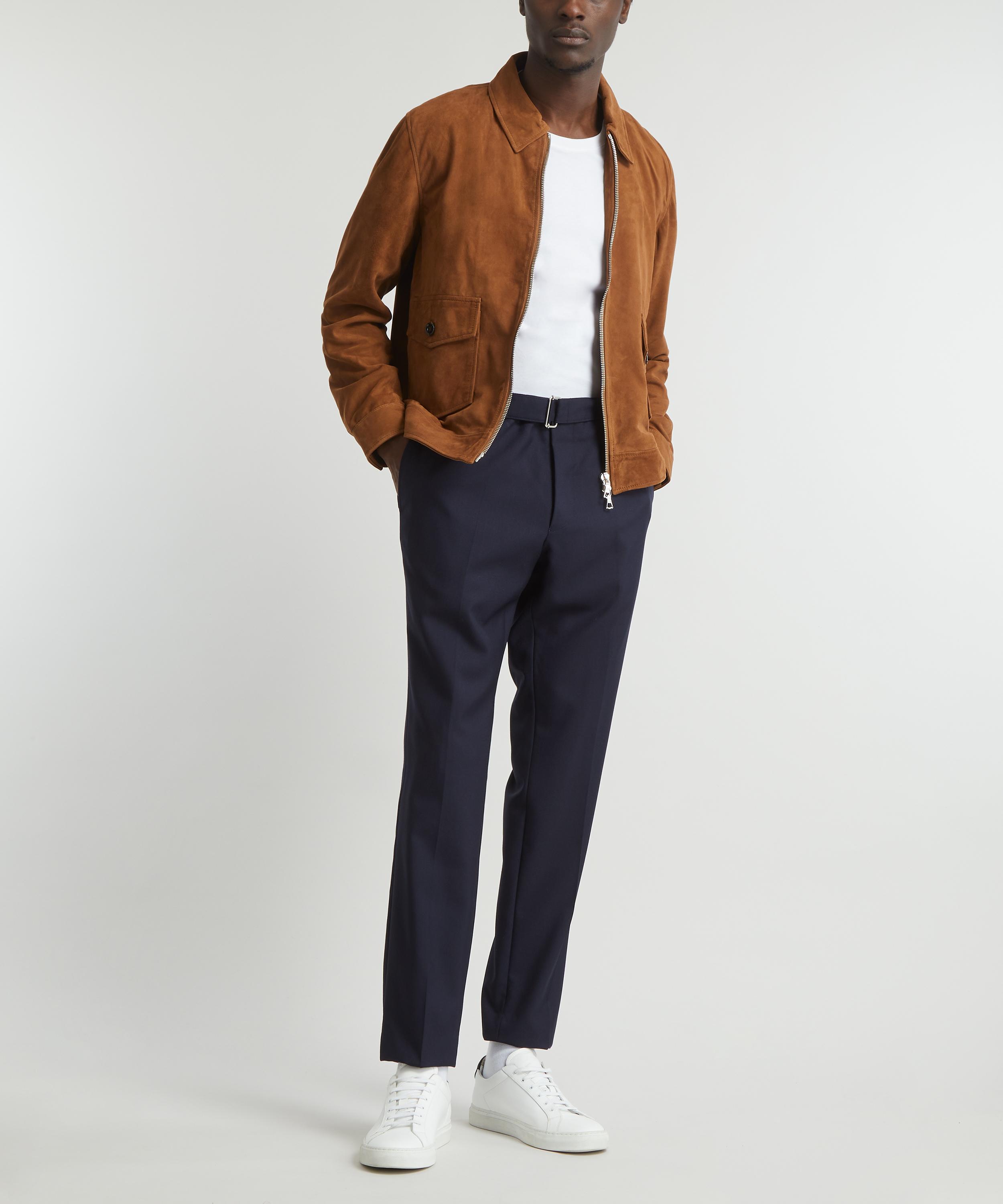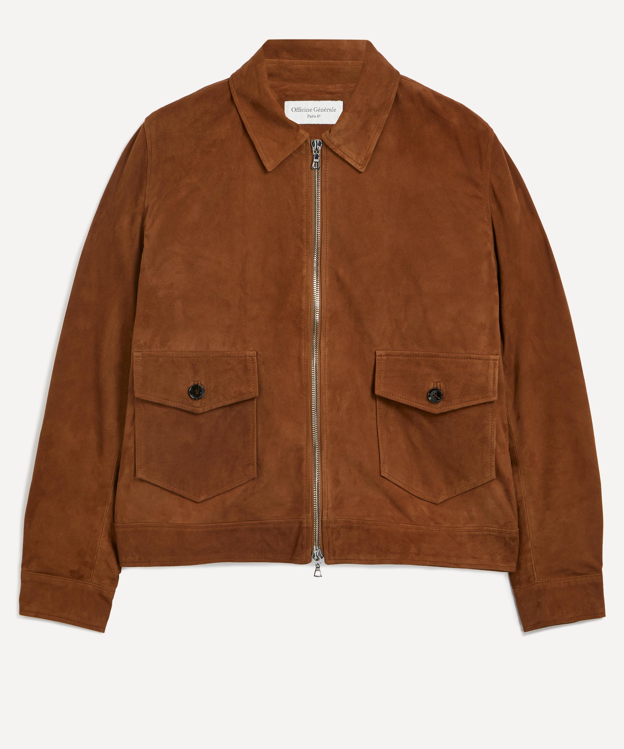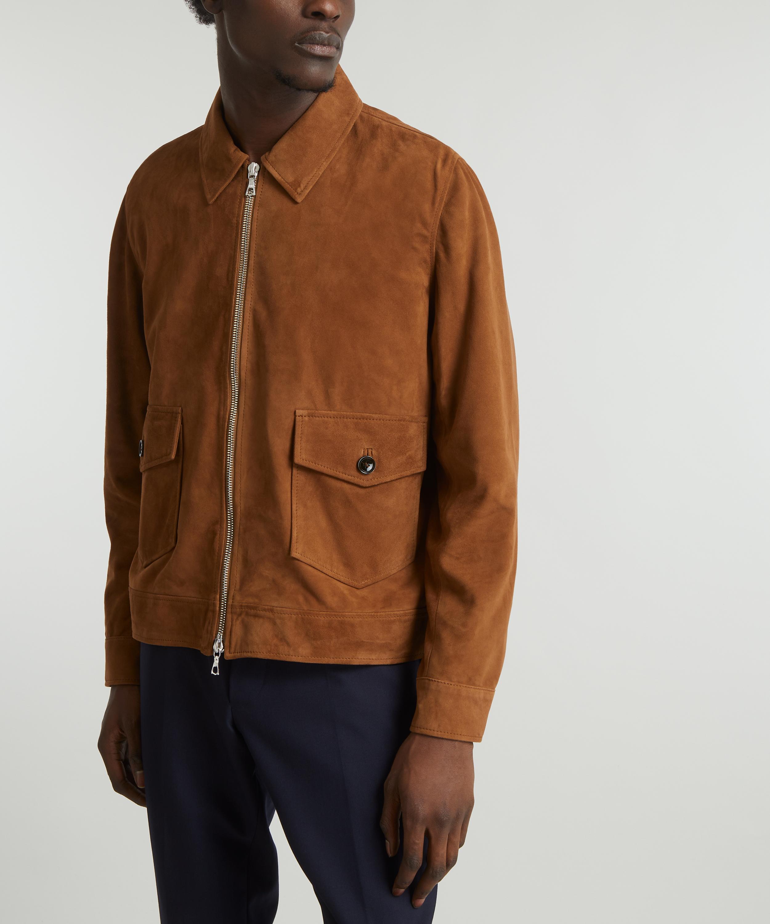 Cut from a premium, Italian goat suede leather, this sophisticated jacket has been crafted to a classic fit and features a spread collar, zipped front closure and two patch pockets with button fastenings for a practical and polished finish.