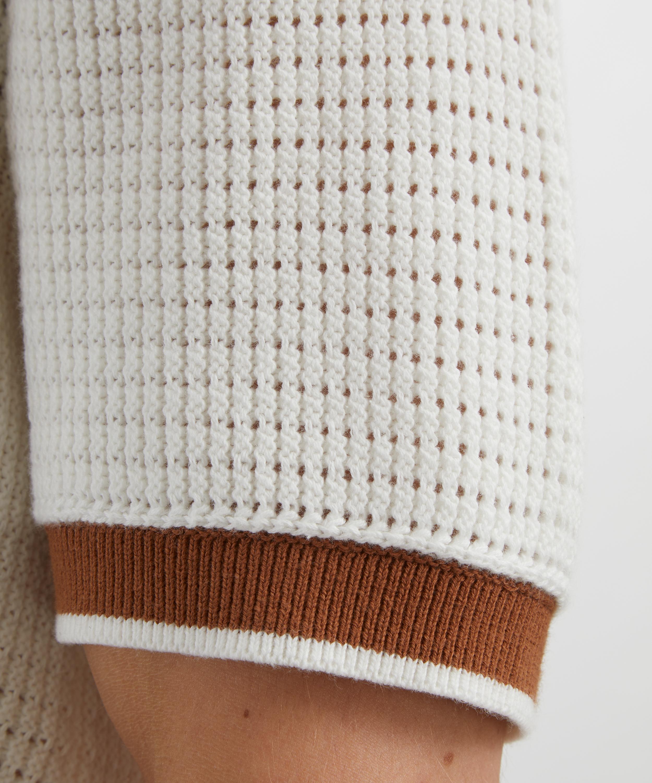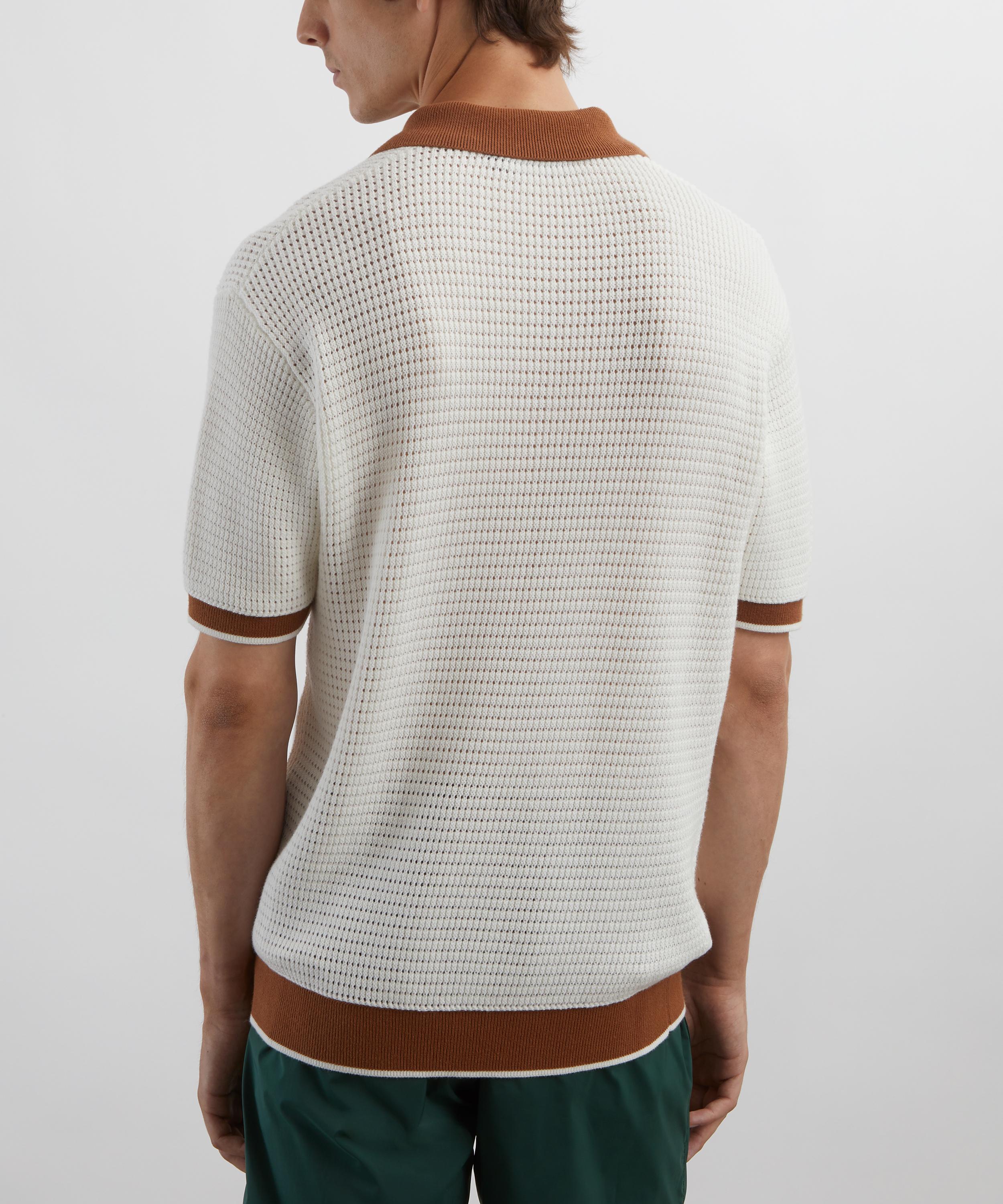 Crafted from cotton in a delicate pointelle knit, this crochet-inspired polo features a relaxed fit with short sleeves, finished with a contrasting collar and hems for a modern twist on a classic silhouette.
