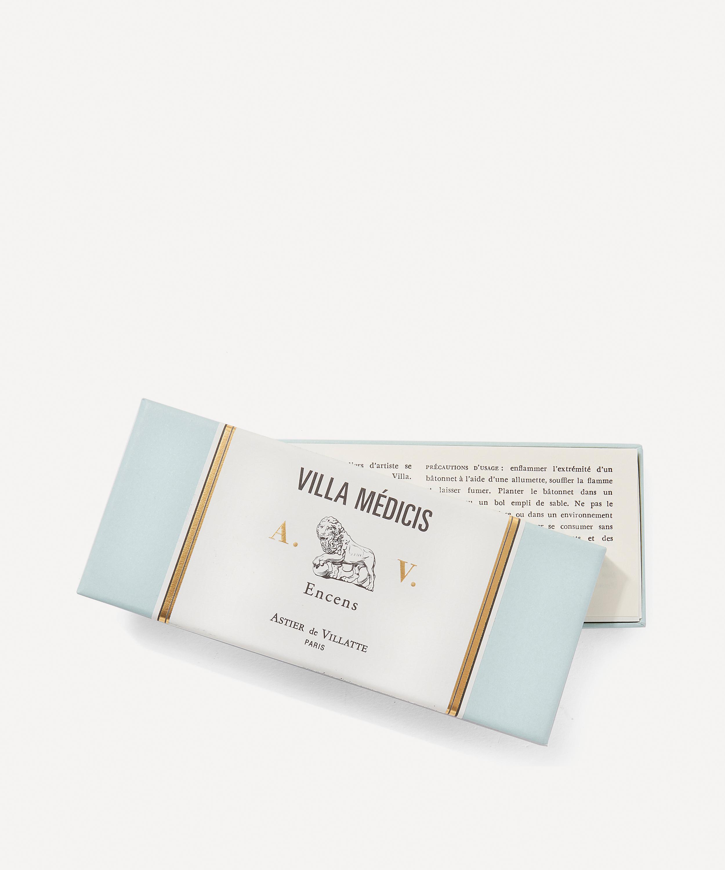 The unique spirit and character of the Mediterranean’s Villa Médicis provides the sensory inspiration for these incense sticks – made using ancestral techniques, their smoke exudes a sweet fragrance of lemon tree leaves, lavender and oregano flowers. The Villa’s gardens are edged by artists’ workshops, and the air drifting over the rooftops of Rome carries a scent of woody cedar, warmed by the ancient sun-baked stones.