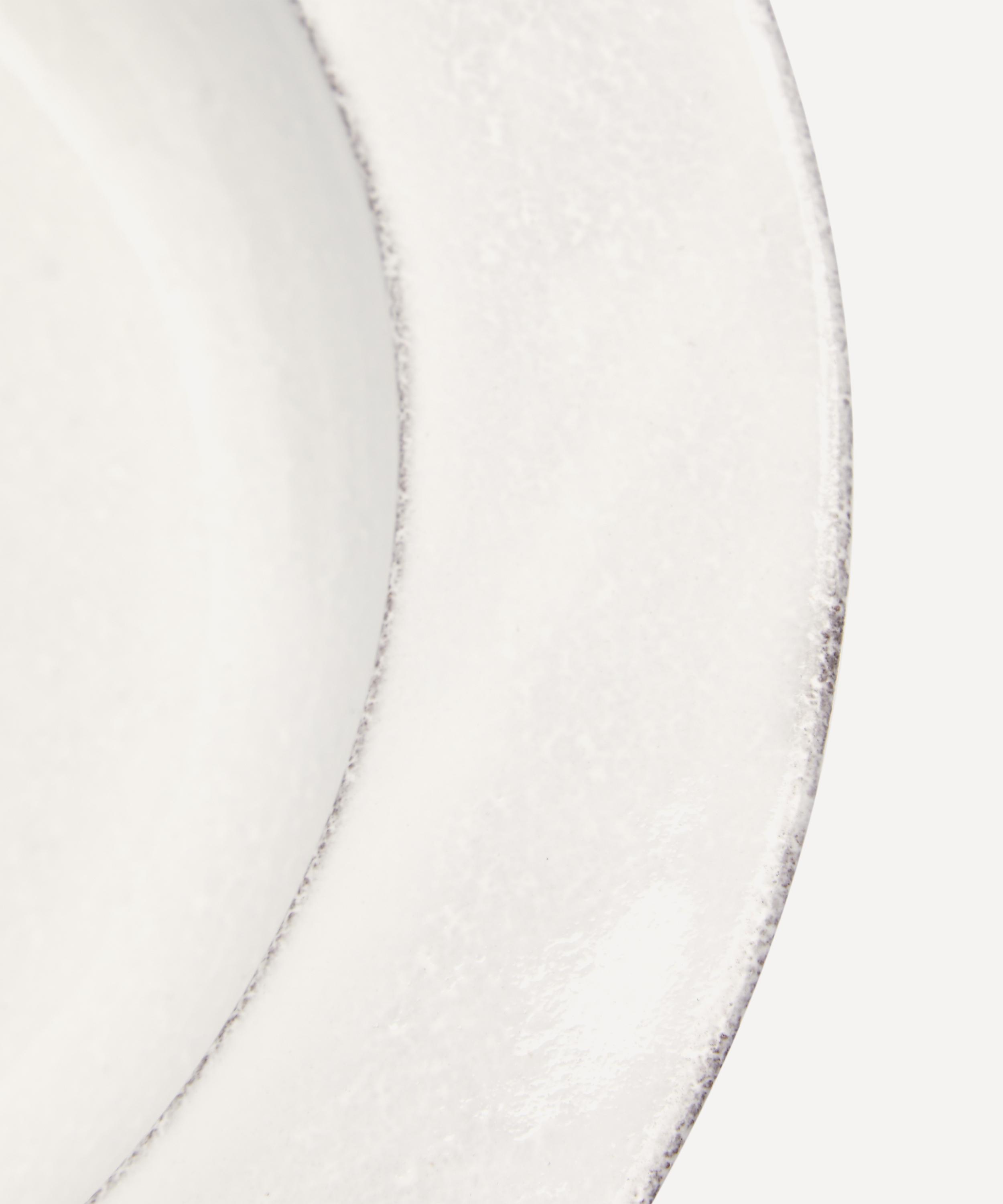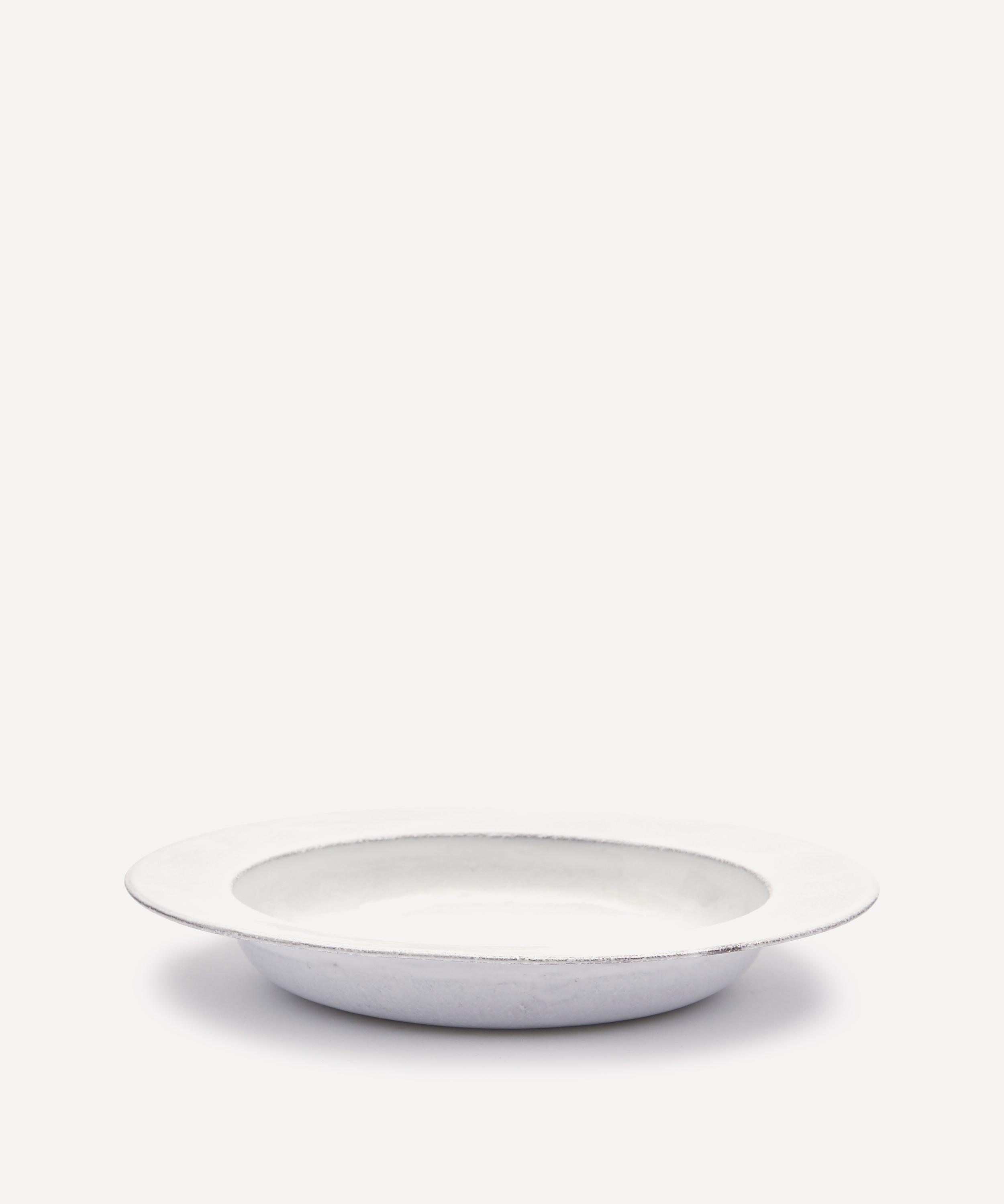 Votary of pre-industrial fabrication, Astier de Villatte is celebrated for being the one and only studio in Paris to hold and harbour the traditions of artisanal ceramic production. Restoring the ancestral systems of moulding and stamping, the Villa Médicis round platter is made using techniques from the Middle Ages which involve moulding a sheet of handmade clay, double firing the ‘biscuit’ piece and glazing the product in white enamel – a lengthy process that requires a drying time of up to one month. Characterised by exposed clay, a deep base and a wide rim, the platter is engraved with the brand’s signature crest – depicting an interlacing A & V – alongside the initials of one of the 40 master artisans who created it. Each handmade piece tells a beautiful story, romancing and imparting a sense of nostalgia into its owner. Display it with additional pieces from the collection to breathe an air of authenticity into your table setting.