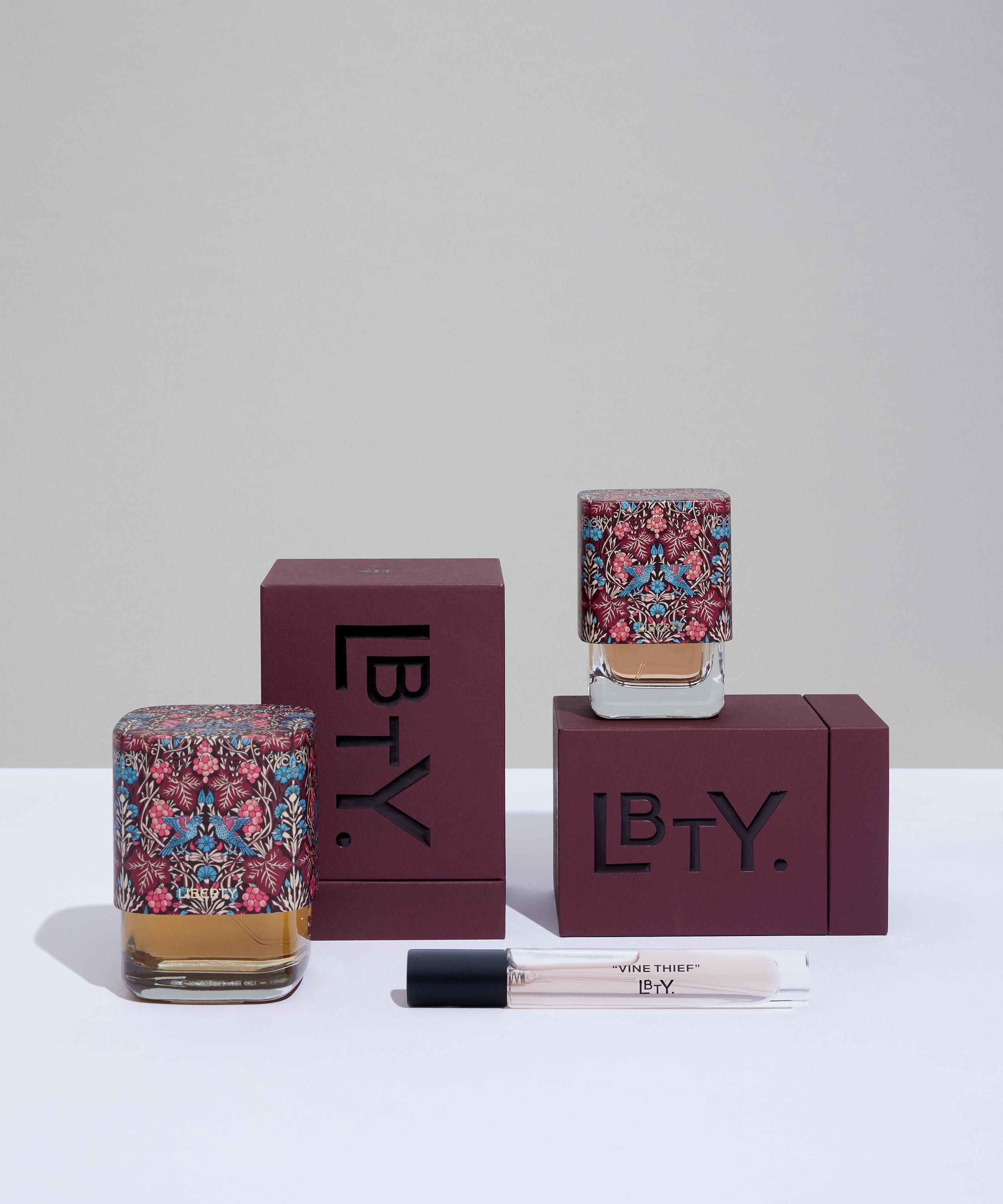 Experience the wondrous world of Liberty in a fresh way with Vine Thief eau de parfum from the Liberty LBTY. Fragrance collection, reimagining an iconic, archival print in olfactory form.