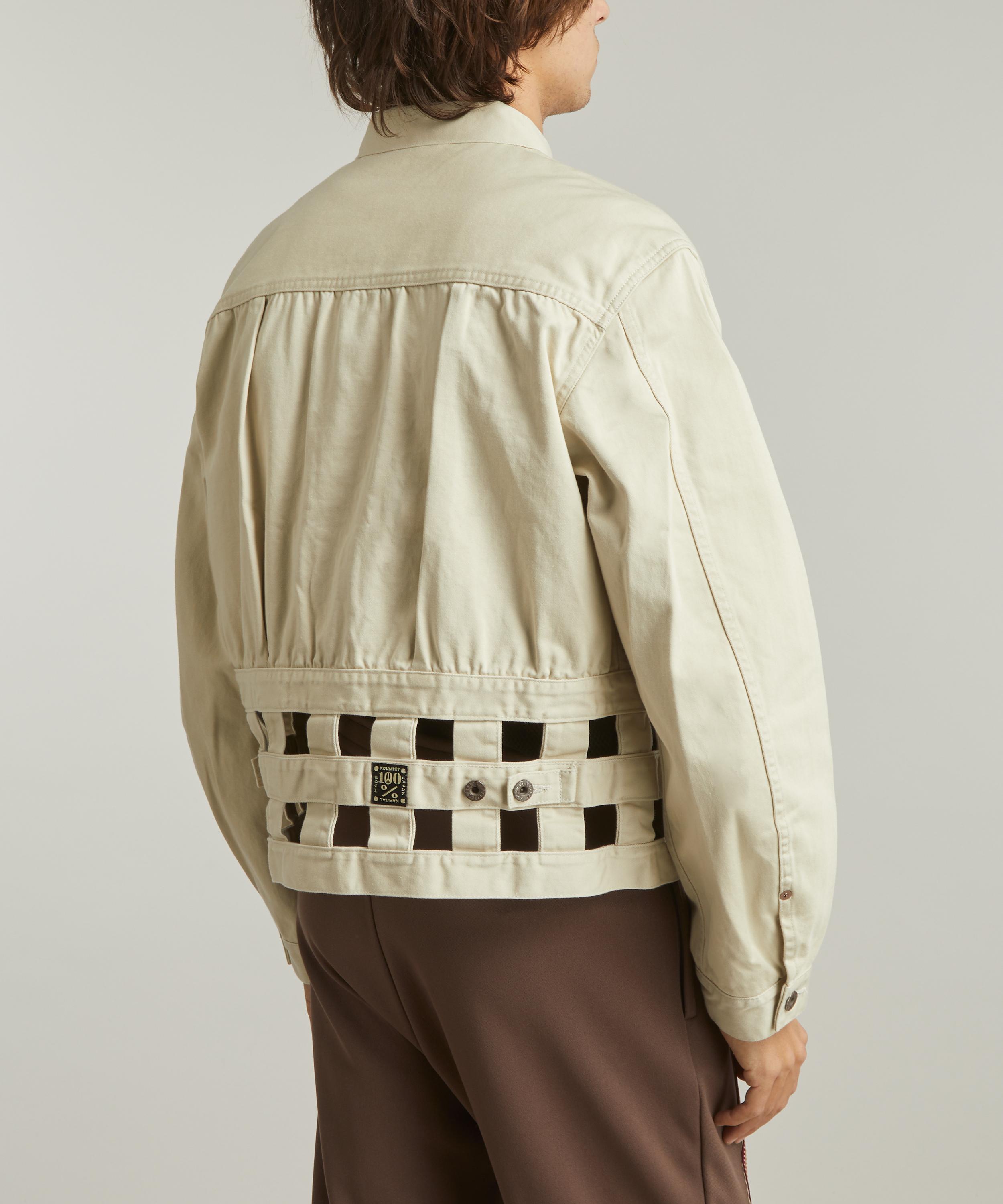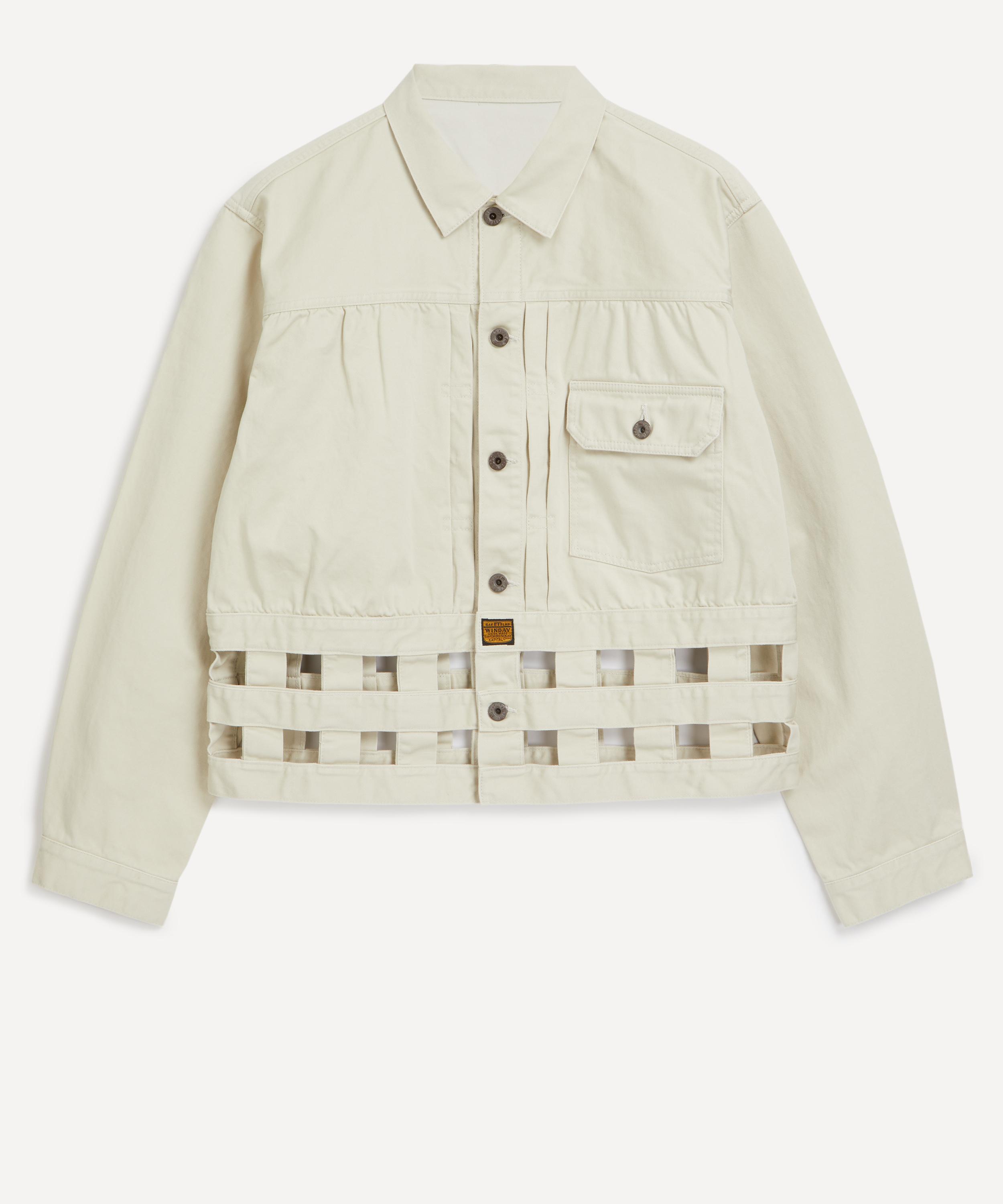Made in Japan, this timeless trucker jacket is elevated with woven lattice detailing at the hem. Crafted from cotton sateen, it’s secured with a button closure, and features a buttoned flap pocket at the chest, and adjustable button tabs at the back.