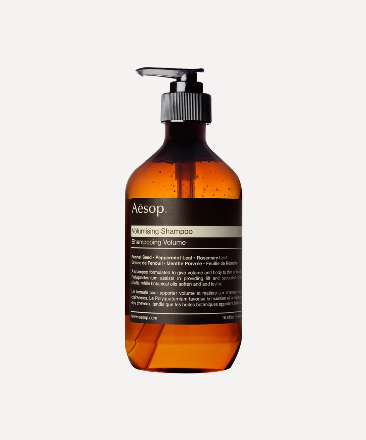 Aesop Volumising Shampoo is a lifting formulation that aids the separation of hair shafts to impart volume and body.
