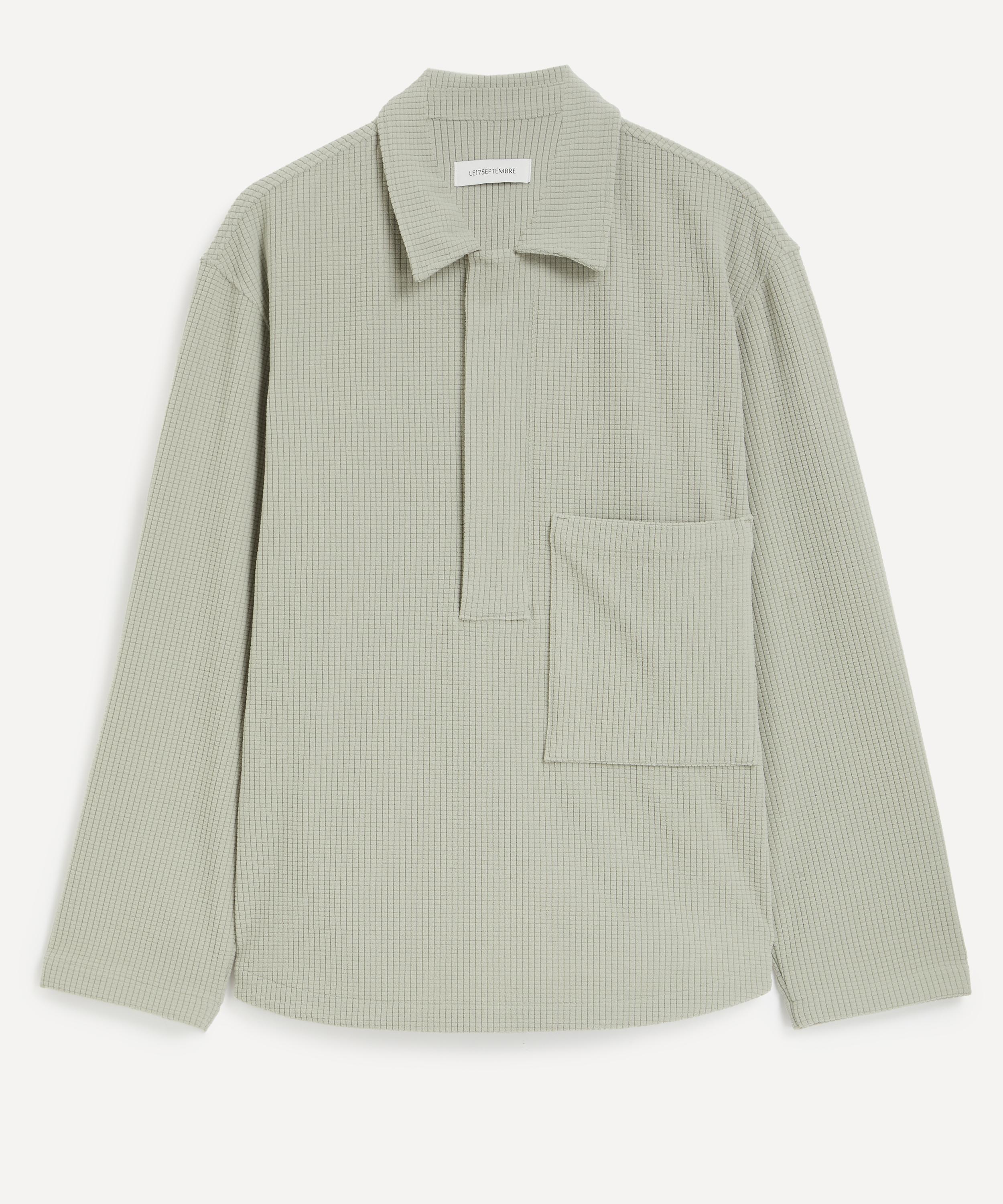Crafted from a plush waffle fabric, this anorak-inspired layer effortlessly merges comfort with refined . Designed for a relaxed fit, it features a spread collar, a concealed partial placket, and a single patch pocket, offering a timeless utilitarian appeal.