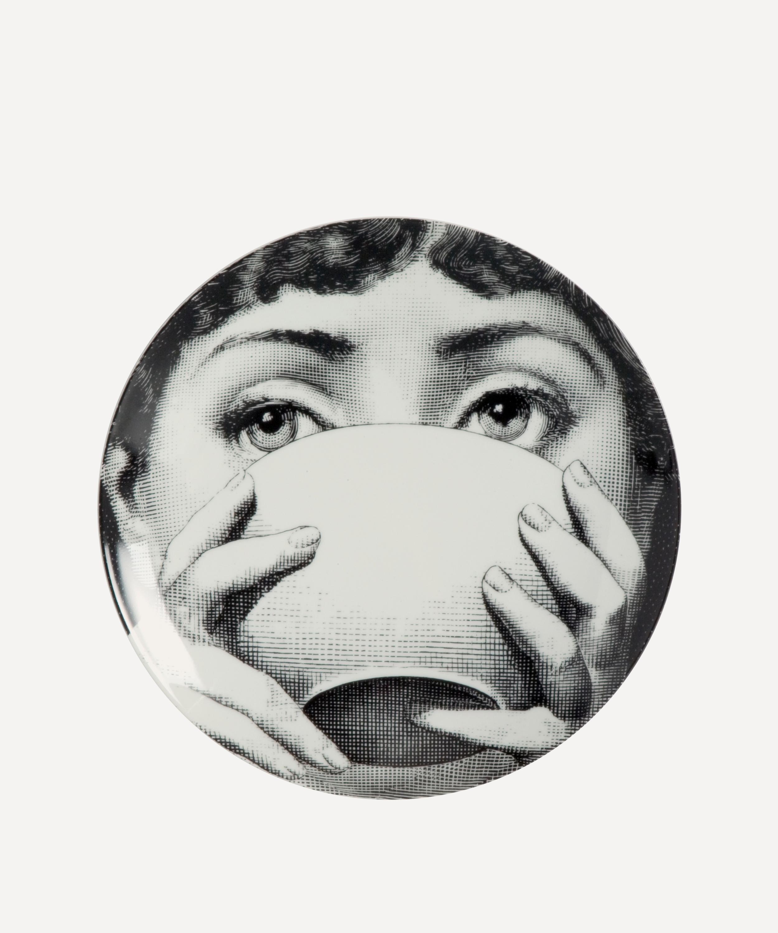 Adorn empty walls, bookshelves or countertops missing that finishing touch with Fornasetti’s decorative wall plate. Originally designed by Piero Fornasetti, this superior ceramic is a true collector’s piece for any art and design enthusiast, featuring a kaleidoscopic variation of the face of his muse, opera soprano Lina Cavalieri. Display this ornamental porcelain plate in pride of place in your living room, dining space or hallway, for a powerful and beguiling approach to your home décor.