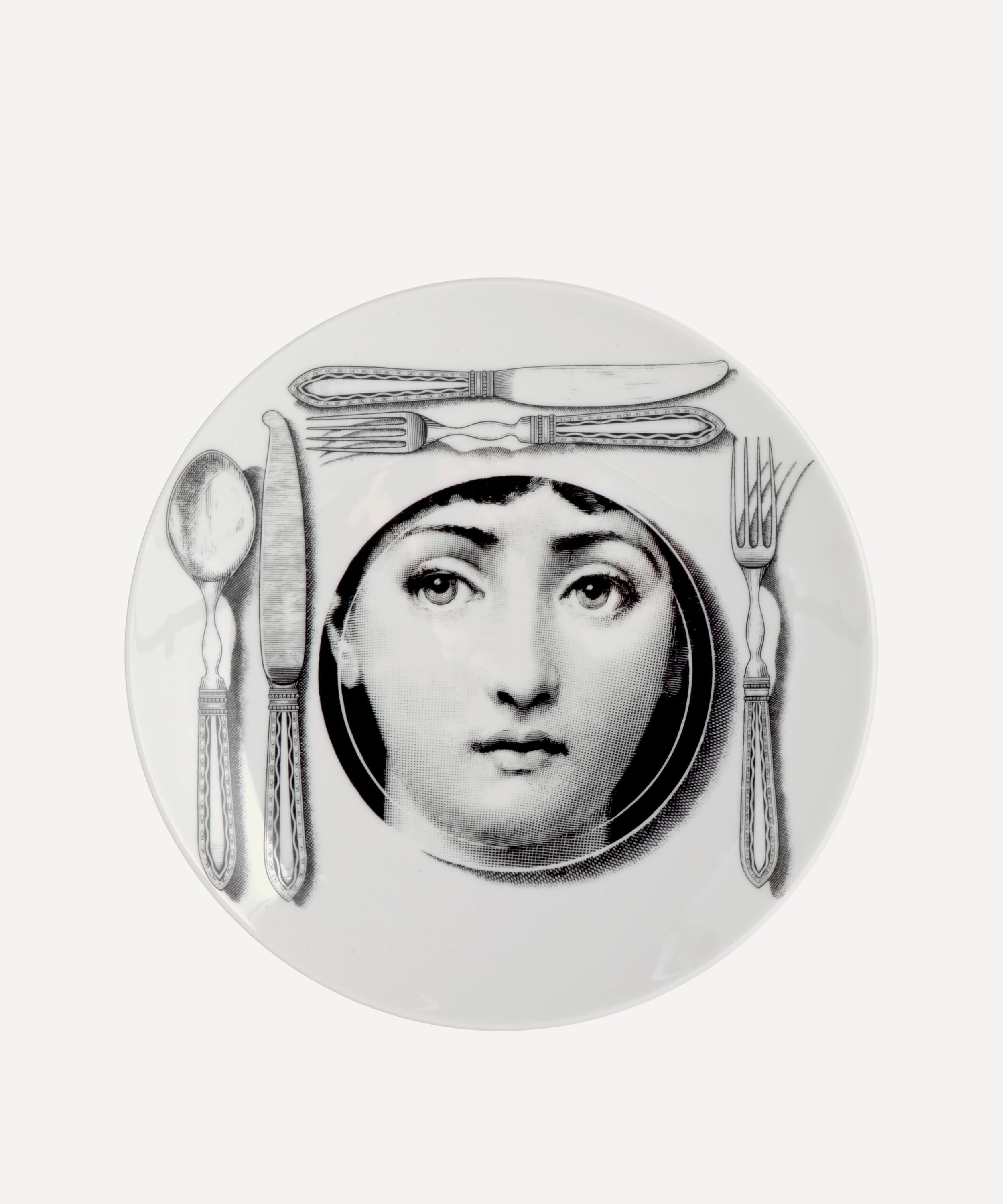 Adorn empty walls, bookshelves or countertops missing that finishing touch with Fornasetti’s decorative wall plate. Originally designed by Piero Fornasetti, this superior ceramic is a true collector’s piece for any art and design enthusiast, featuring a kaleidoscopic variation of the face of his muse, opera soprano Lina Cavalieri. Display this ornamental porcelain plate in pride of place in your living room, dining space or hallway, for a powerful and beguiling approach to your home décor.