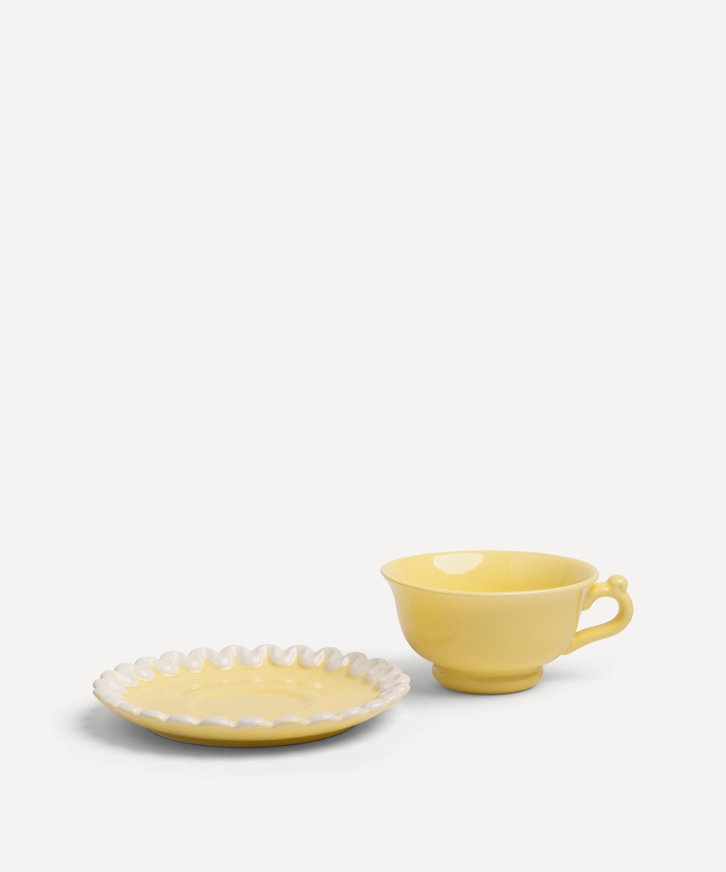 Enhance eclectic interiors with the Whip Yellow Cup & Saucer Set of Two from &Klevering.