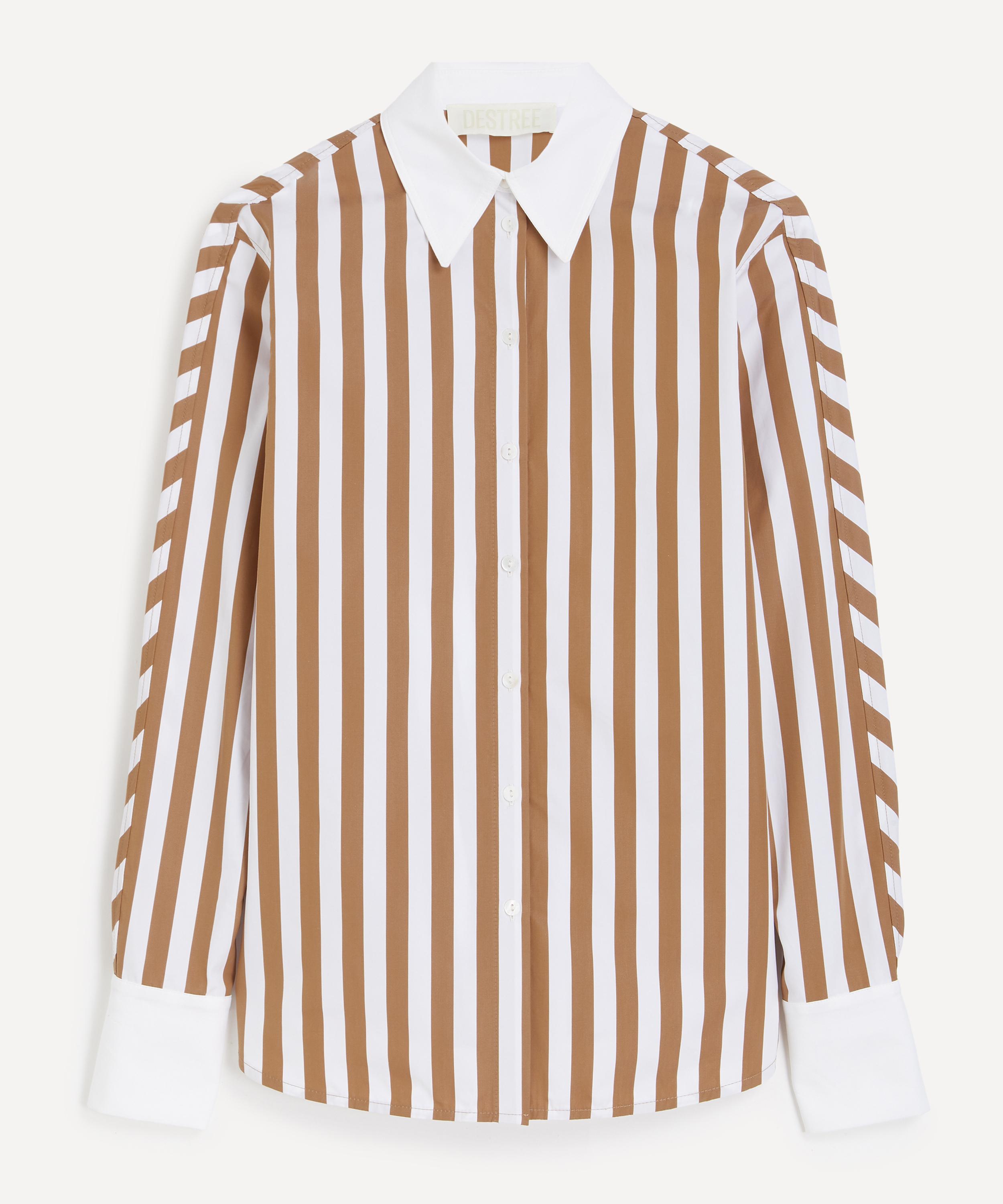 The White and Camel Striped Shirt from DESTREE offers a contemporary twist on classic Parisian style.