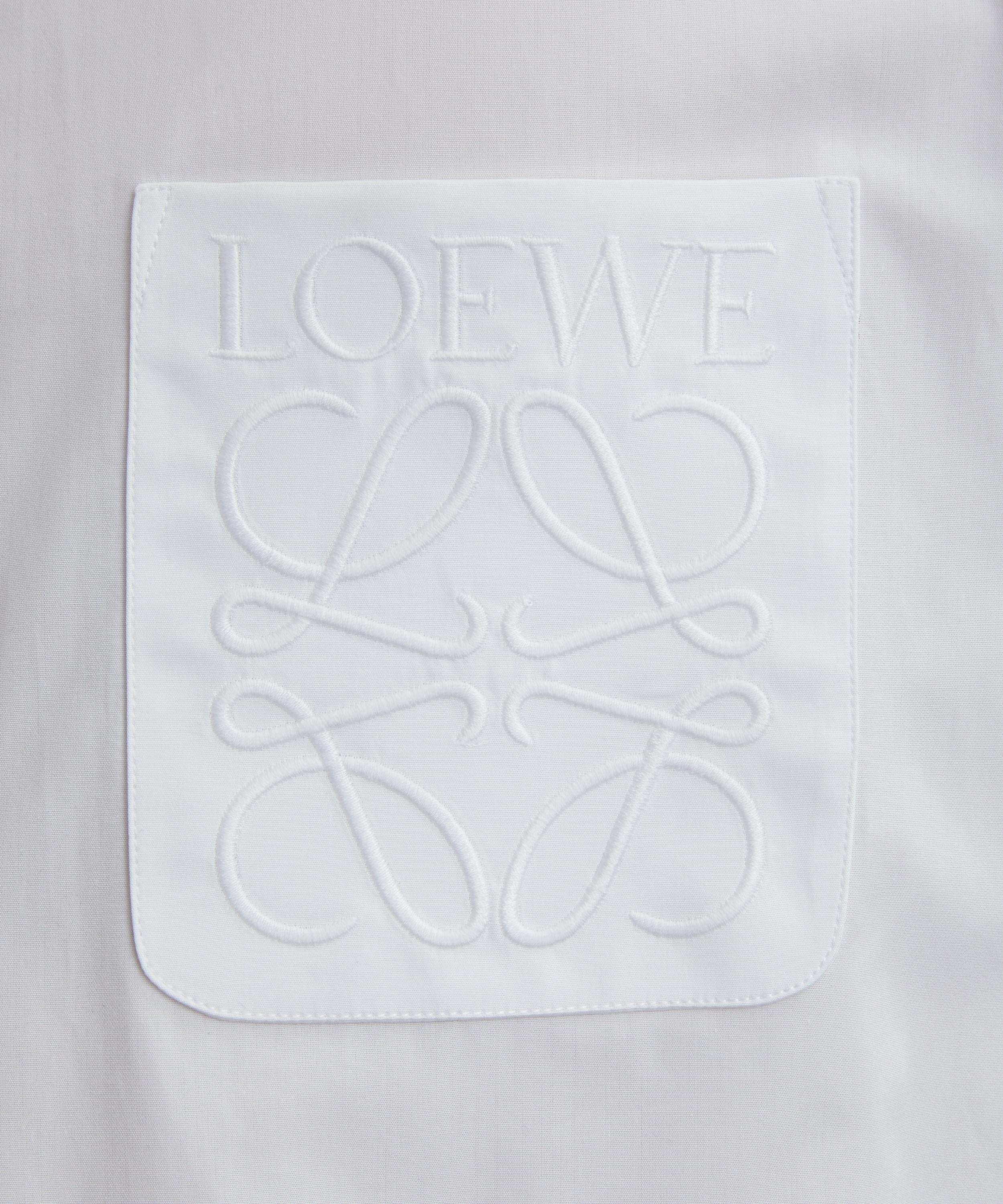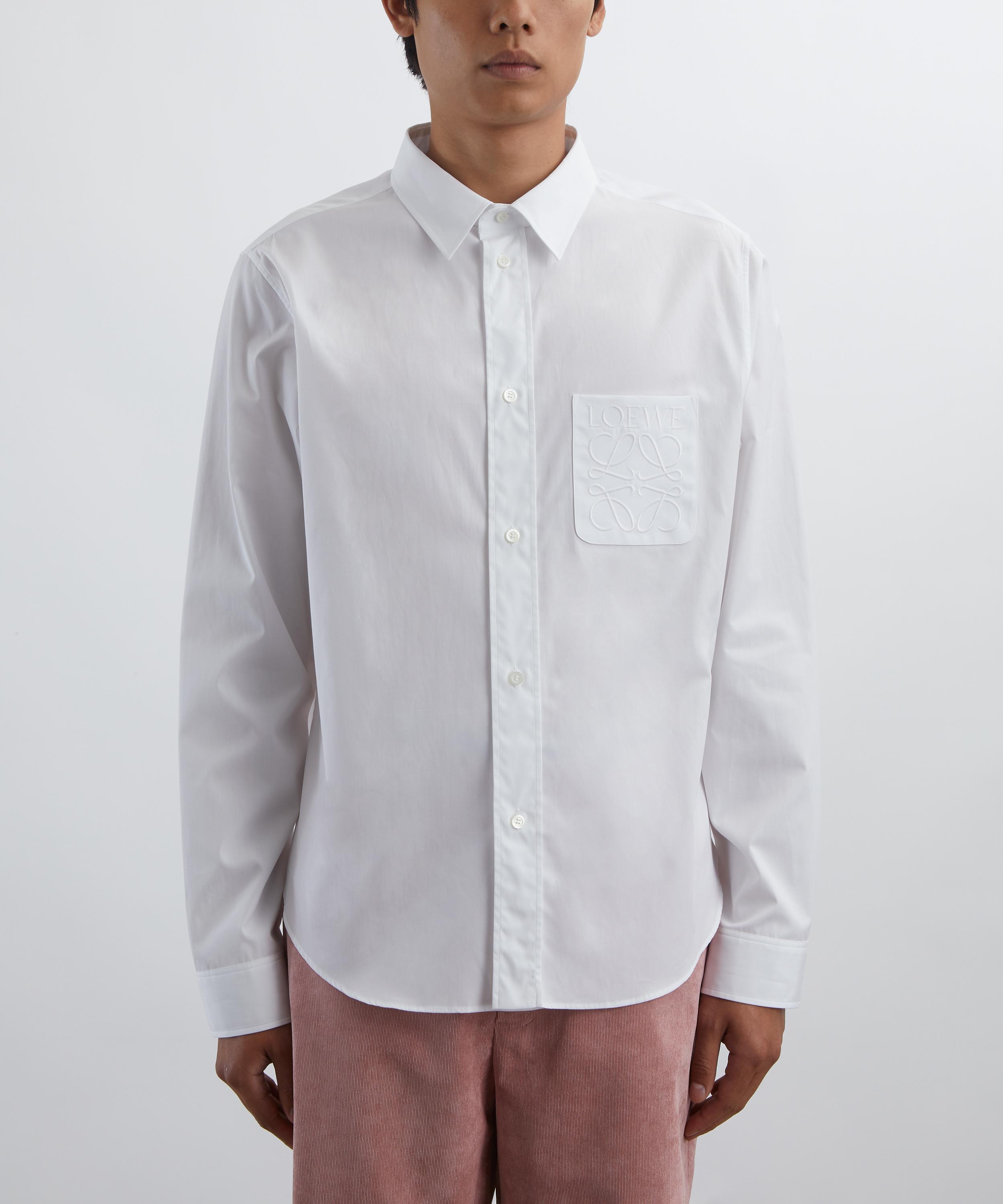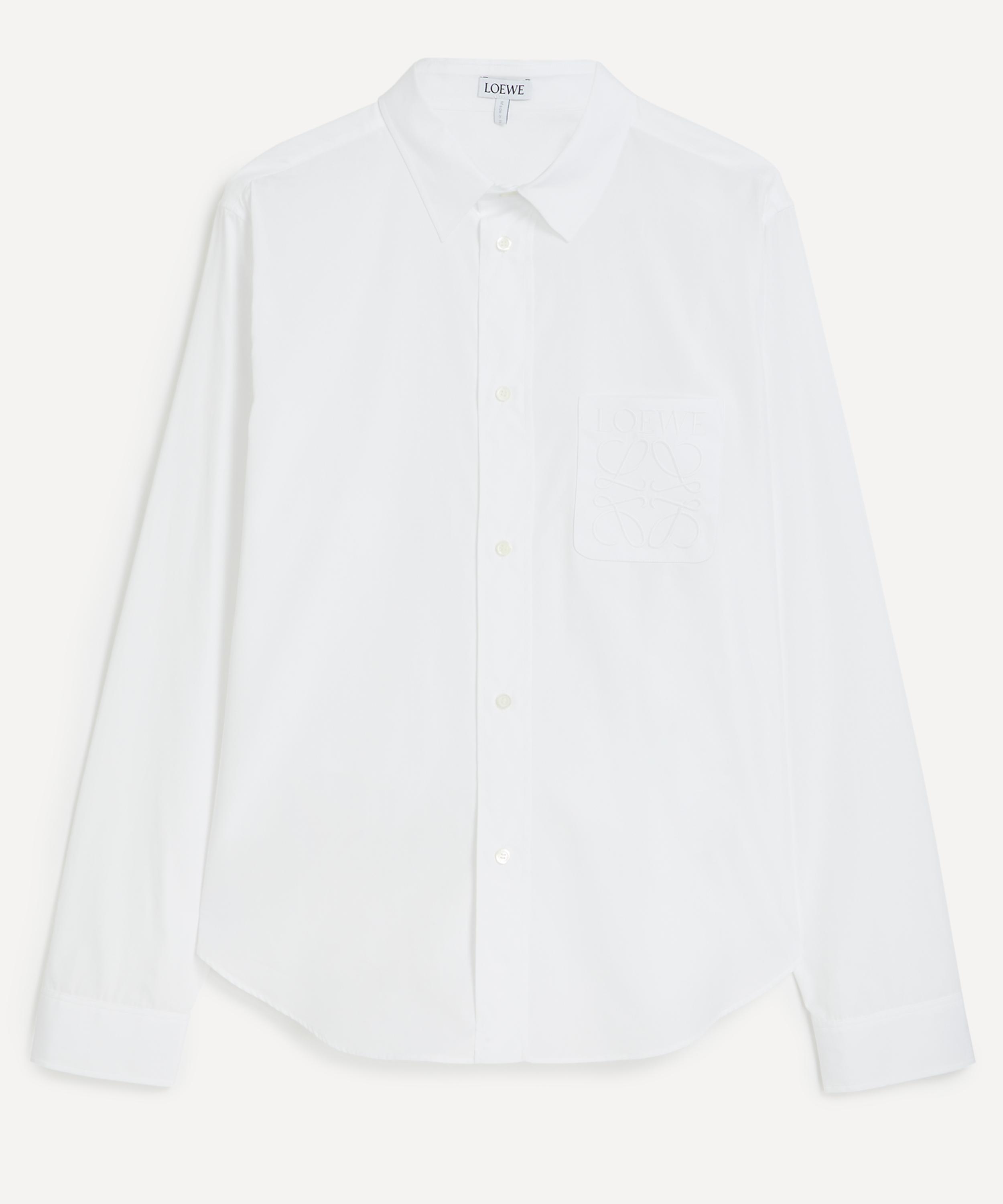 This White Cotton Long-Sleeve Shirt by LOEWE seamlessly combines timeless Spanish craftsmanship with a hint of English wit.