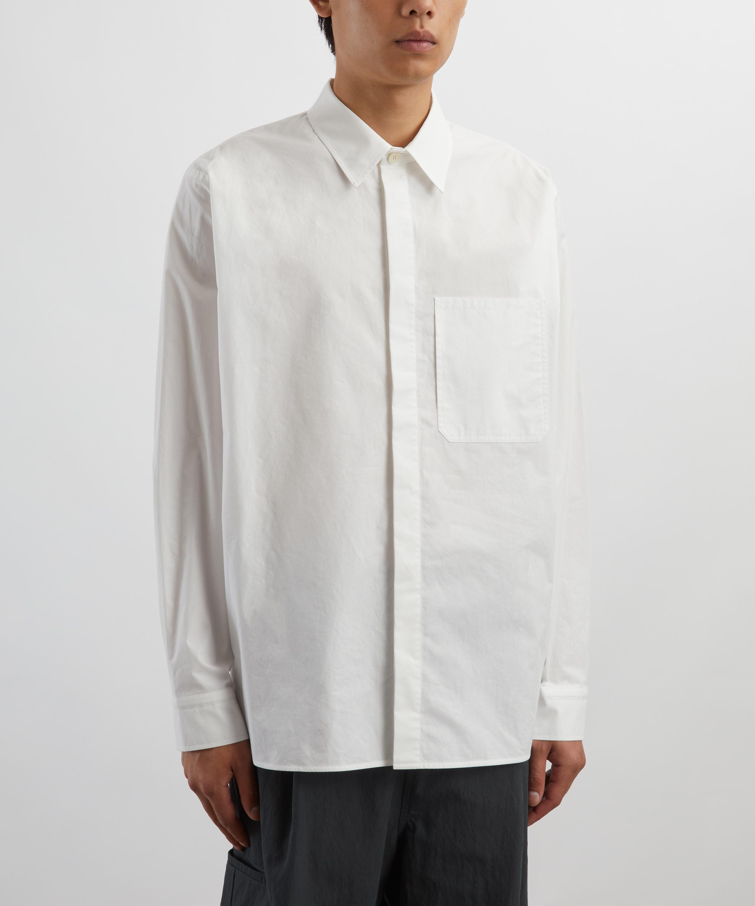 Crafted from crisp white cotton, this button-down shirt effortlessly merges comfort with refined tailoring. Designed for a relaxed fit, it features raglan sleeves, a concealed button fastening, and a neatly finished chest pocket, offering a polished yet easygoing aesthetic.