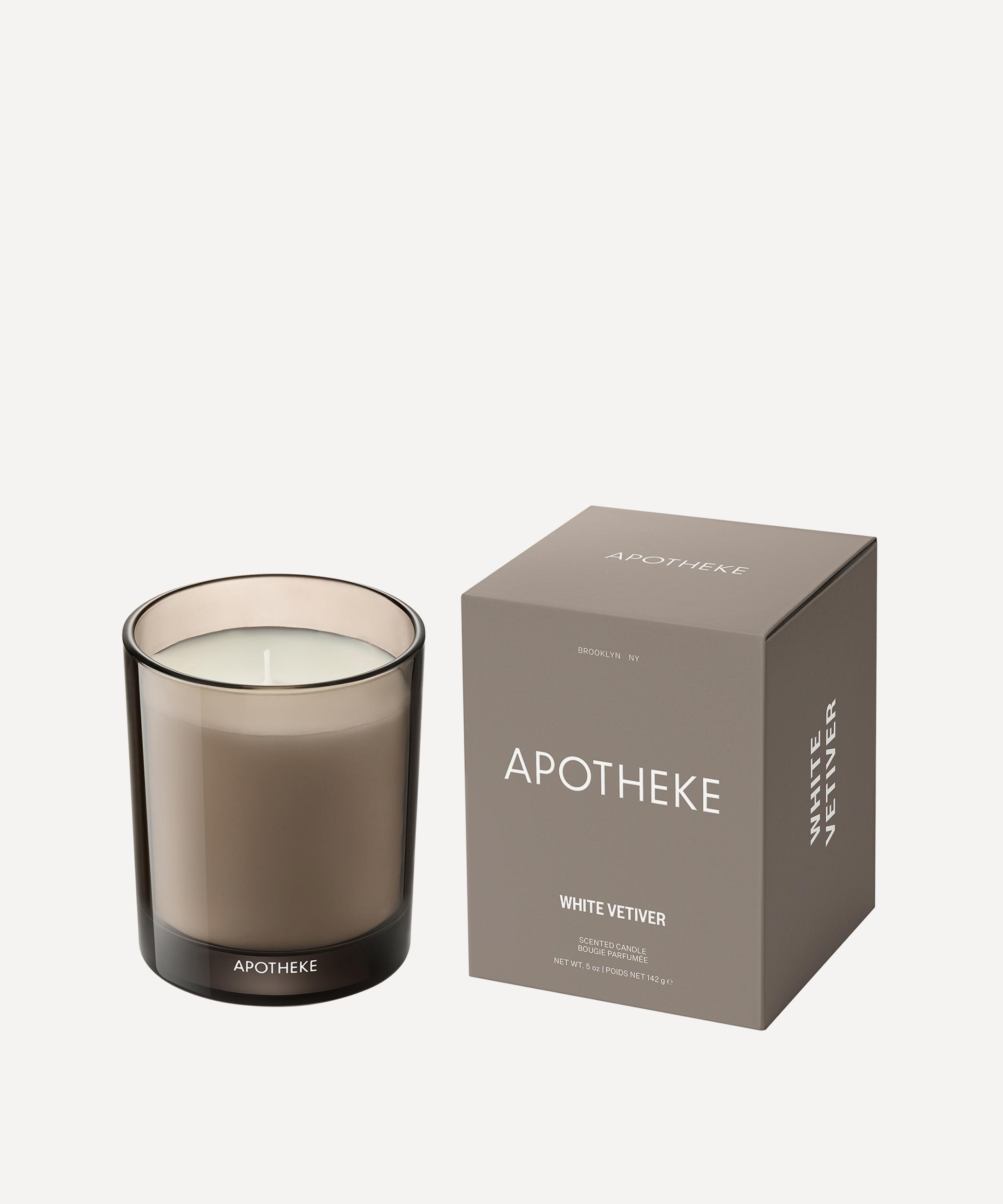 Infuse your home with the clean, woody fragrance of Apotheke's White Vetiver Petite Scented Candle – housed in an elegant soft grey glass vessel that gently diffuses the candle's glow.