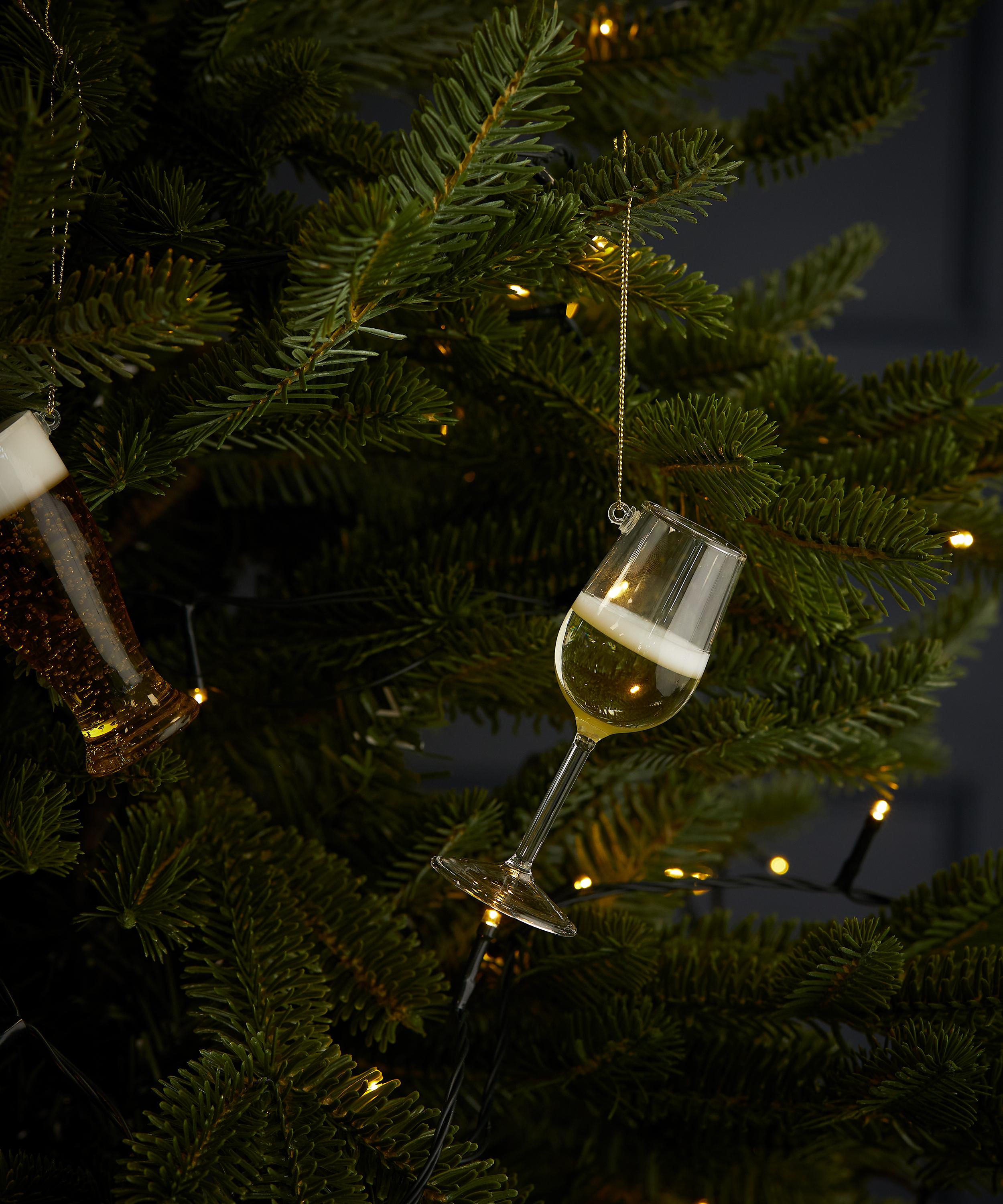 An alternative to traditional decorations, it’s exquisitely crafted from glass, featuring a white wine glass design – a playful option for those seeking to give their festive collection an eclectic refresh, pair it with a mix of rioting colours and other novelty ornaments radiating with maximalism.