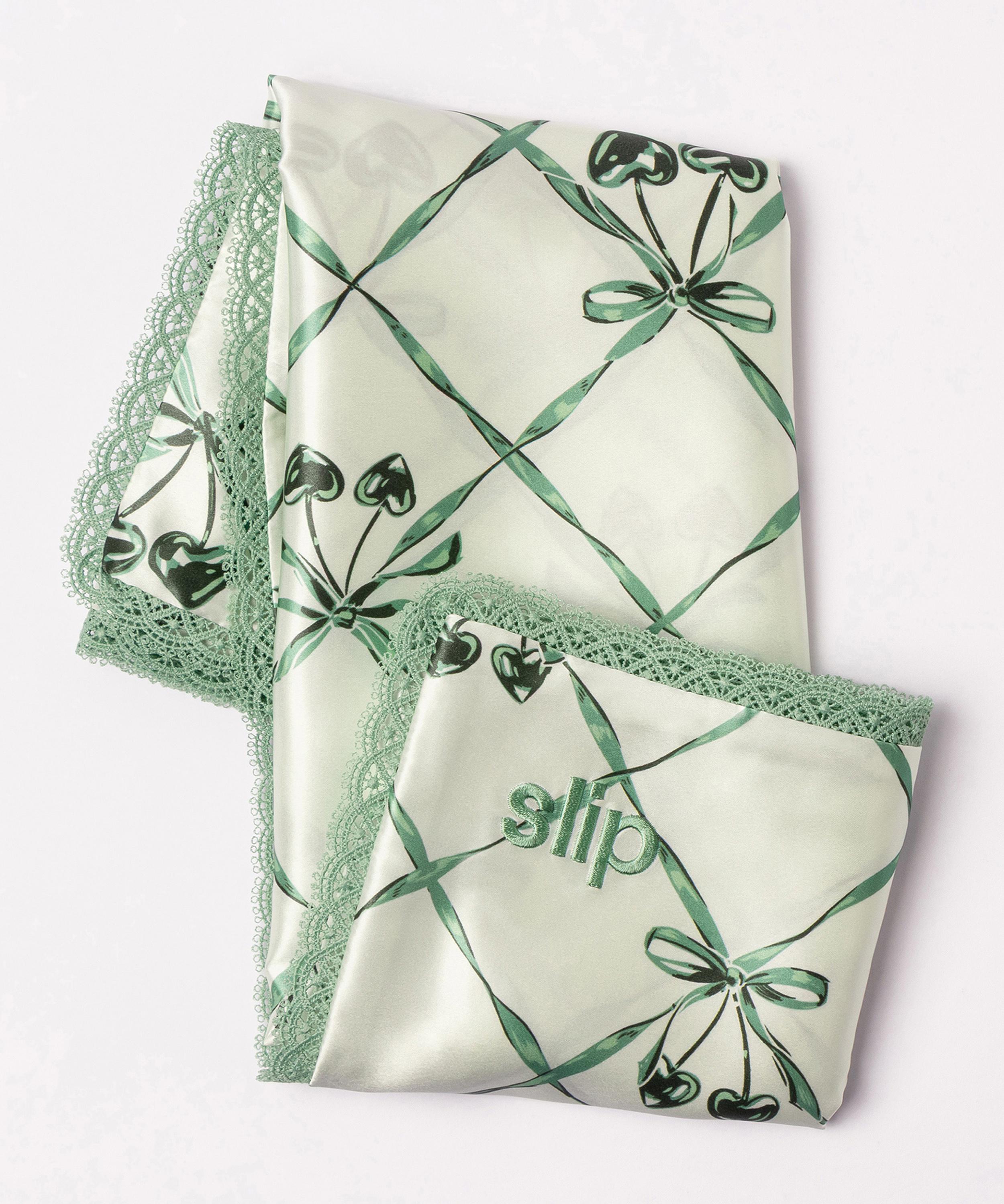 Crafted with care from the highest grade 22 momme long fibre mulberry silk, the beloved slipsilk pillowcase set helps to preserve the condition of skin and hair whilst retaining beauty products and moisture added from one’s night routine, embellished with two-toned green bow patterns and a lace trim to optimise romantic sophistication for your bedroom décor. The sumptuously soft silk helps visibly improve the appearance of fine lines, retains skin hydration and moisture, and leaves an effortlessly supple and brighter finish when you wake from your regenerative slumber.