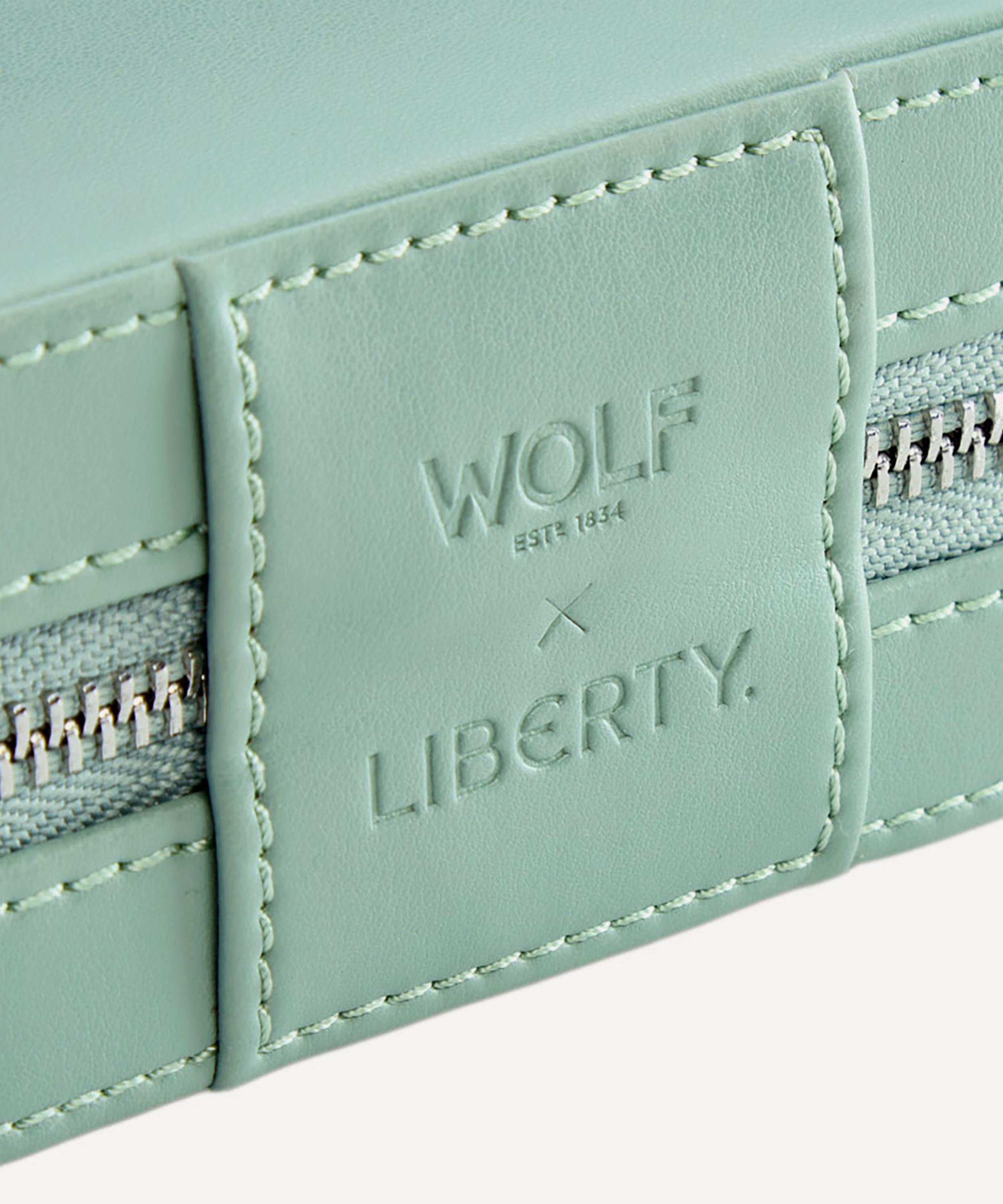 Boasting a celebration of tradition, made modern, it’s thoughtfully engineered by two icons of British design, featuring a durable exterior in sage-green. Inside, it’s lined with Liberty’s Julia print and WOLF’s patented LusterLoc™ fabric, crafted to protect your jewellery from tarnishing and discoloration. It's equipped with four compartments including three snap-on necklace holders, ring rolls, a removable zip pouch and an interior mirror. Compact enough to slip into your carry-on, yet spacious enough to hold your favourite pieces, it’s perfect for weekends away, holidays, or everyday use – a travel essential for jewellery lovers who never leave their sparkle behind.