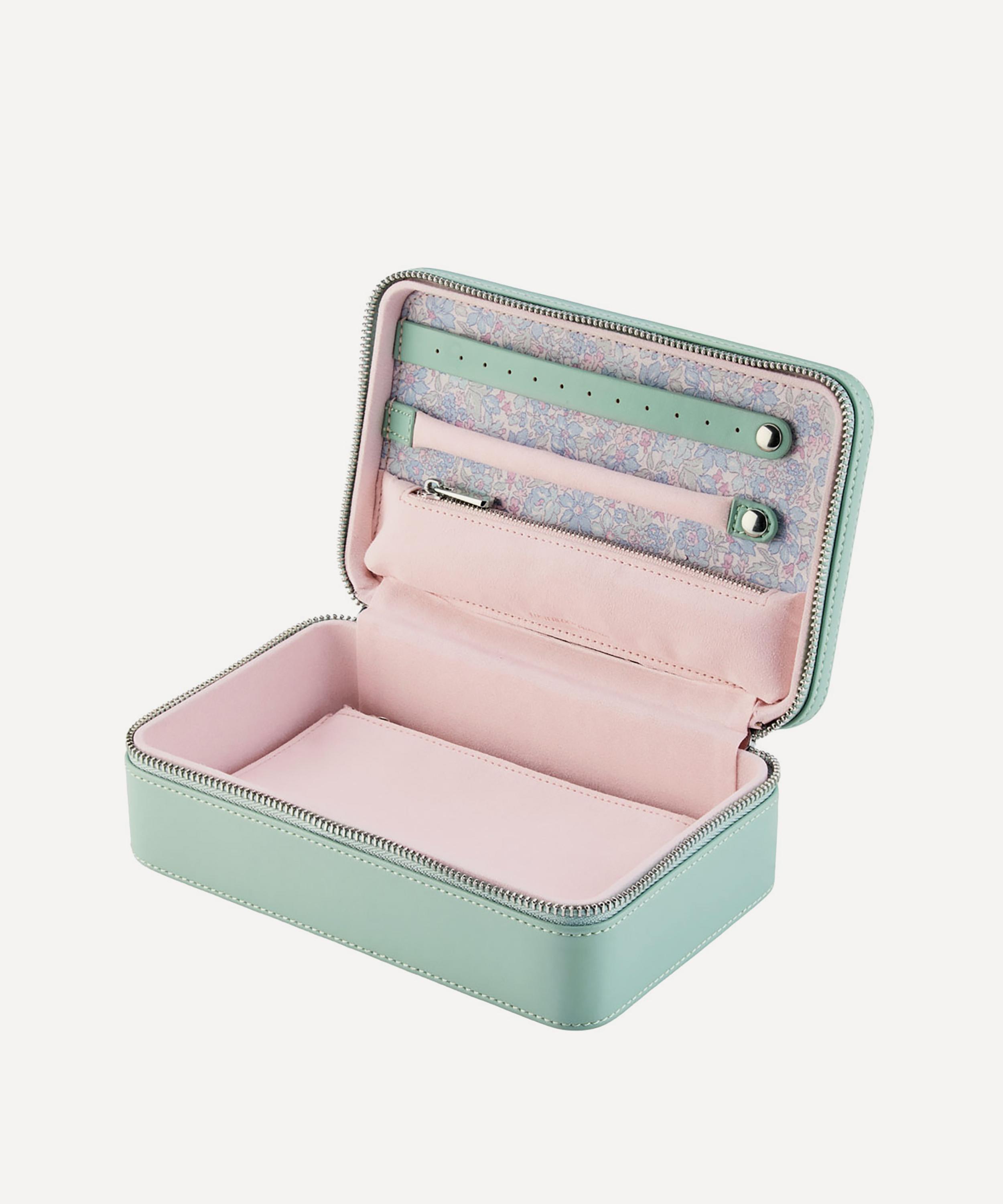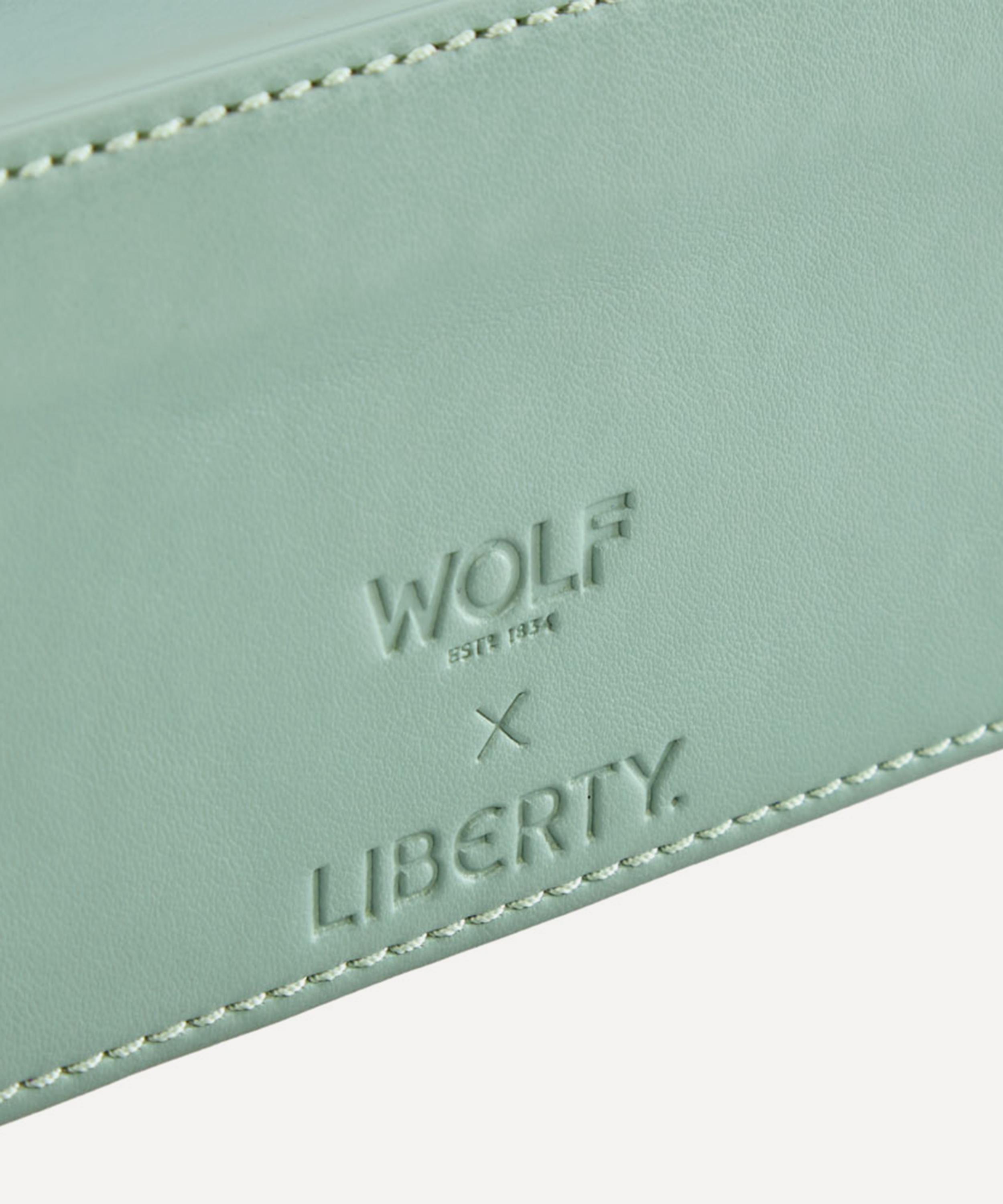 Boasting a celebration of tradition, made modern, it’s thoughtfully engineered by two icons of British design, featuring a durable exterior in sage-green. Inside, it’s lined with Liberty's Julia print and WOLF’s patented LusterLoc™ fabric, crafted to protect your jewellery from tarnishing and discoloration. It's equipped with four compartments including three necklace hooks, seven ring rolls and an interior mirror. Compact enough to slip into your carry-on, yet spacious enough to hold your favourite pieces, it’s perfect for weekends away, holidays, or everyday use – a travel essential for jewellery lovers who never leave their sparkle behind.